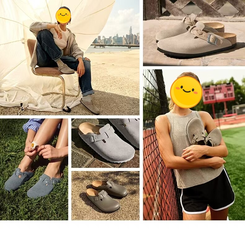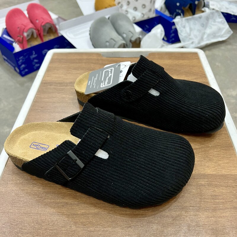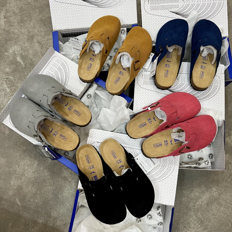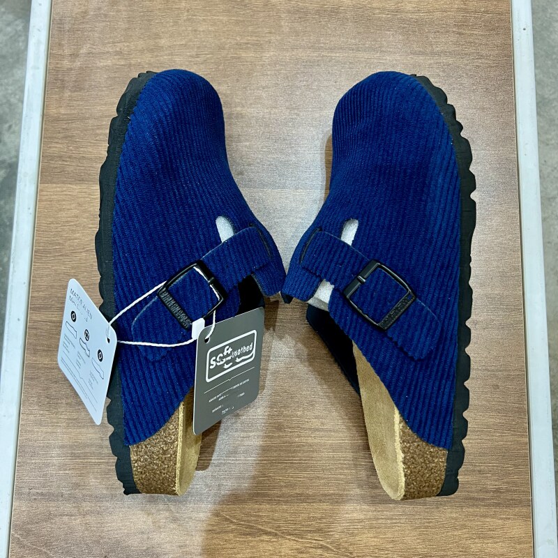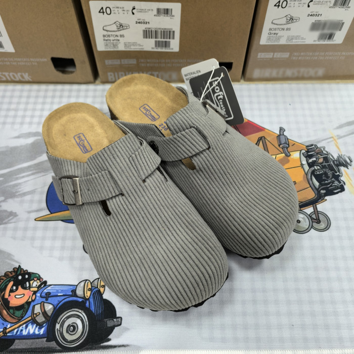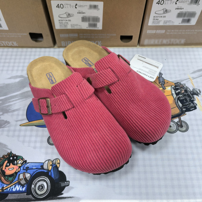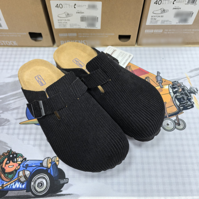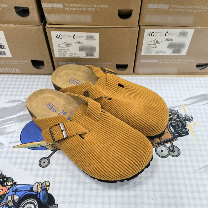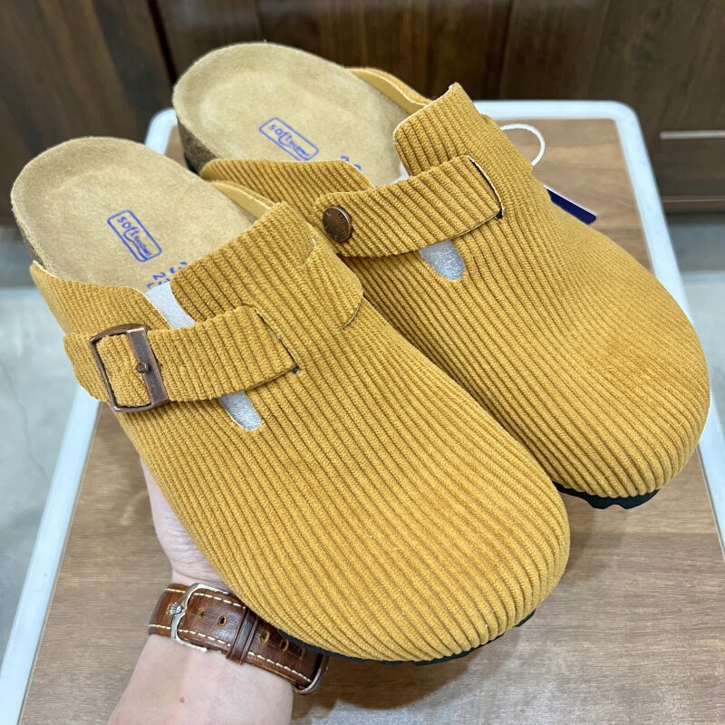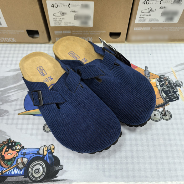 Blingbird牛皮版燈芯絨勃肯鞋男女同款復古包頭拖鞋懶人鞋博肯鞋