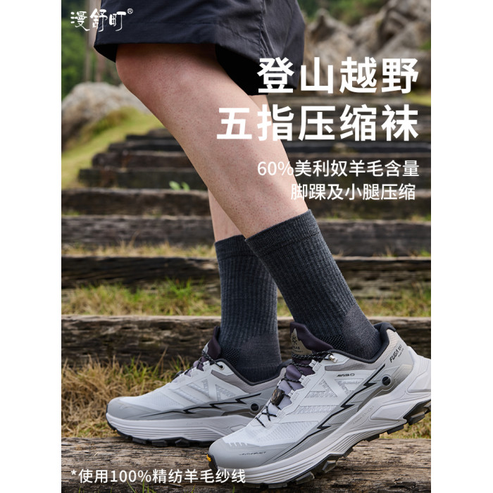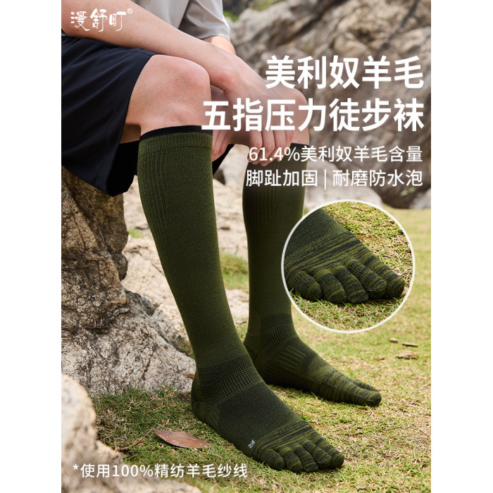 羊毛五指徒步運動壓縮襪健身小腿壓力襪男士長筒襪戶外登山壓力襪