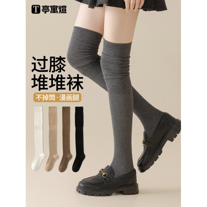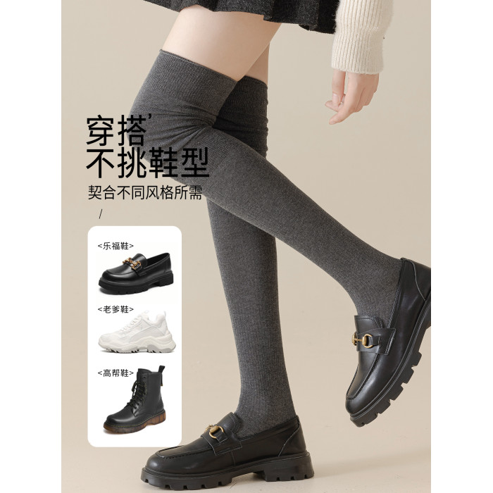 灰色過膝襪長筒襪春秋款防下滑高筒大腿襪長腿壓力襪女秋冬長襪子
