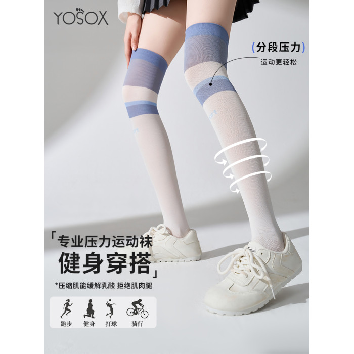 秋冬運動壓力襪健身跳繩登山騎行專業網球襪專用跑步襪過膝長筒襪