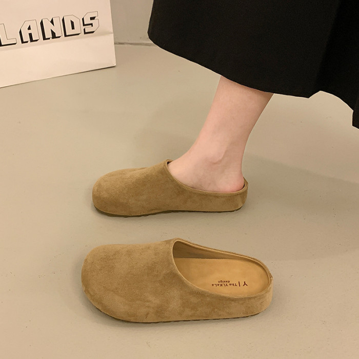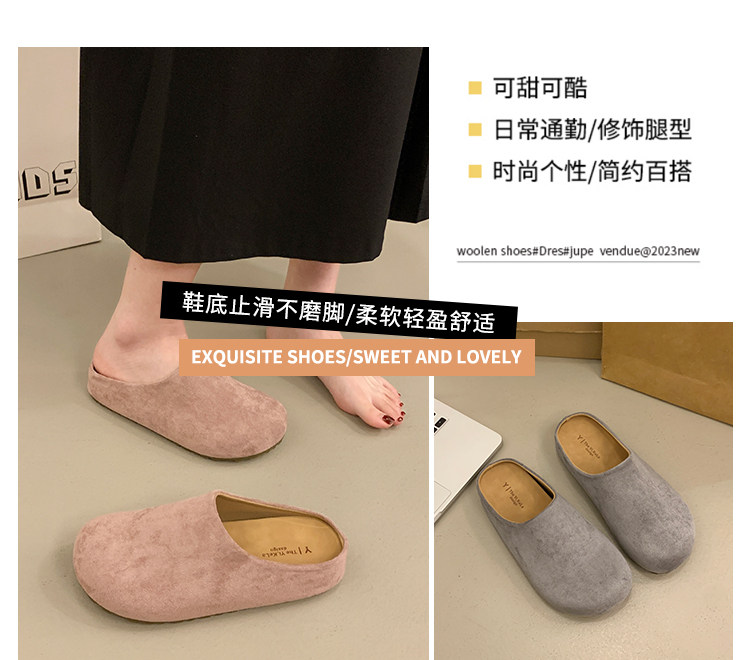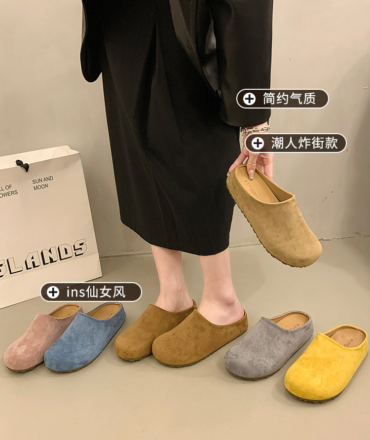 厚底勃肯鞋女2025春季博肯一腳蹬嬾人鞋包頭半拖鞋森系內增高單鞋