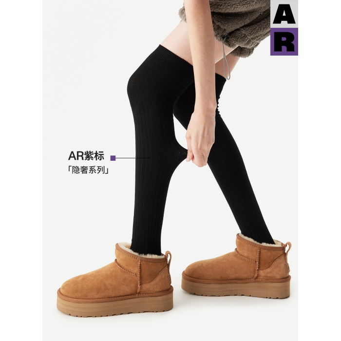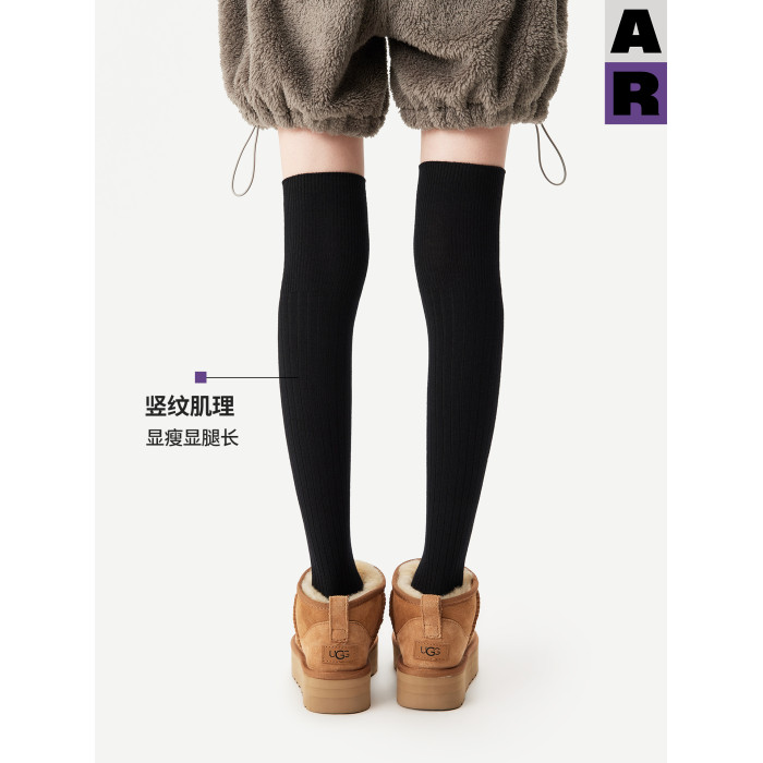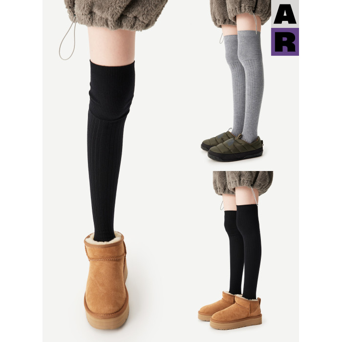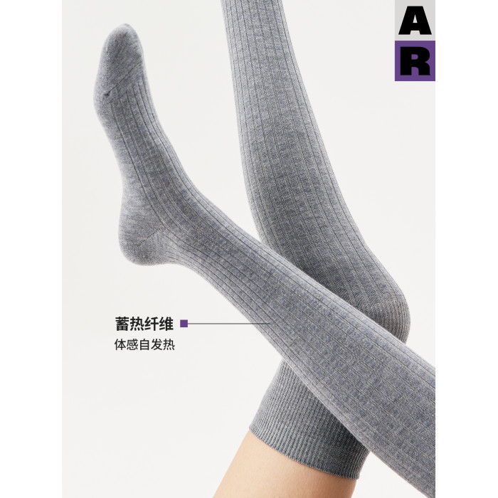 AR美利奴羊毛過膝襪子女秋冬款保暖護膝顯瘦灰色長筒小腿襪miu系