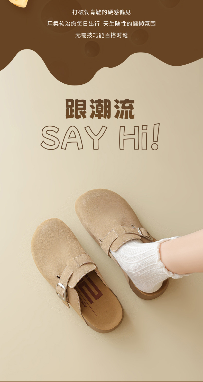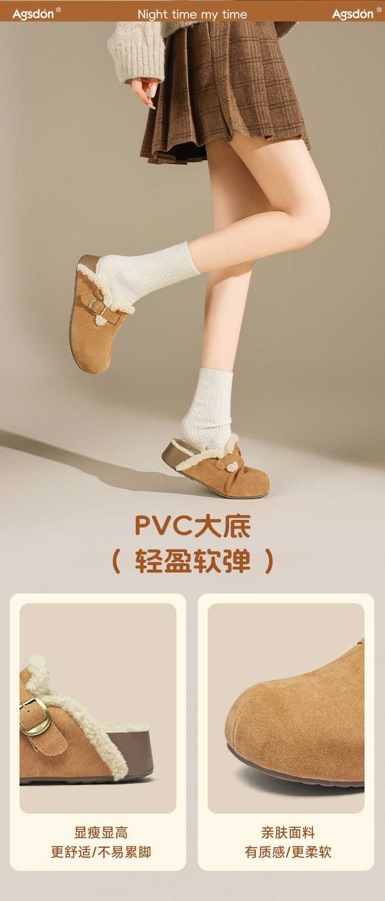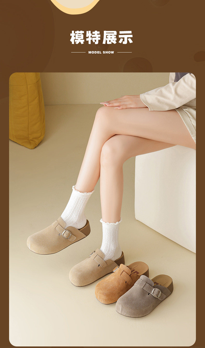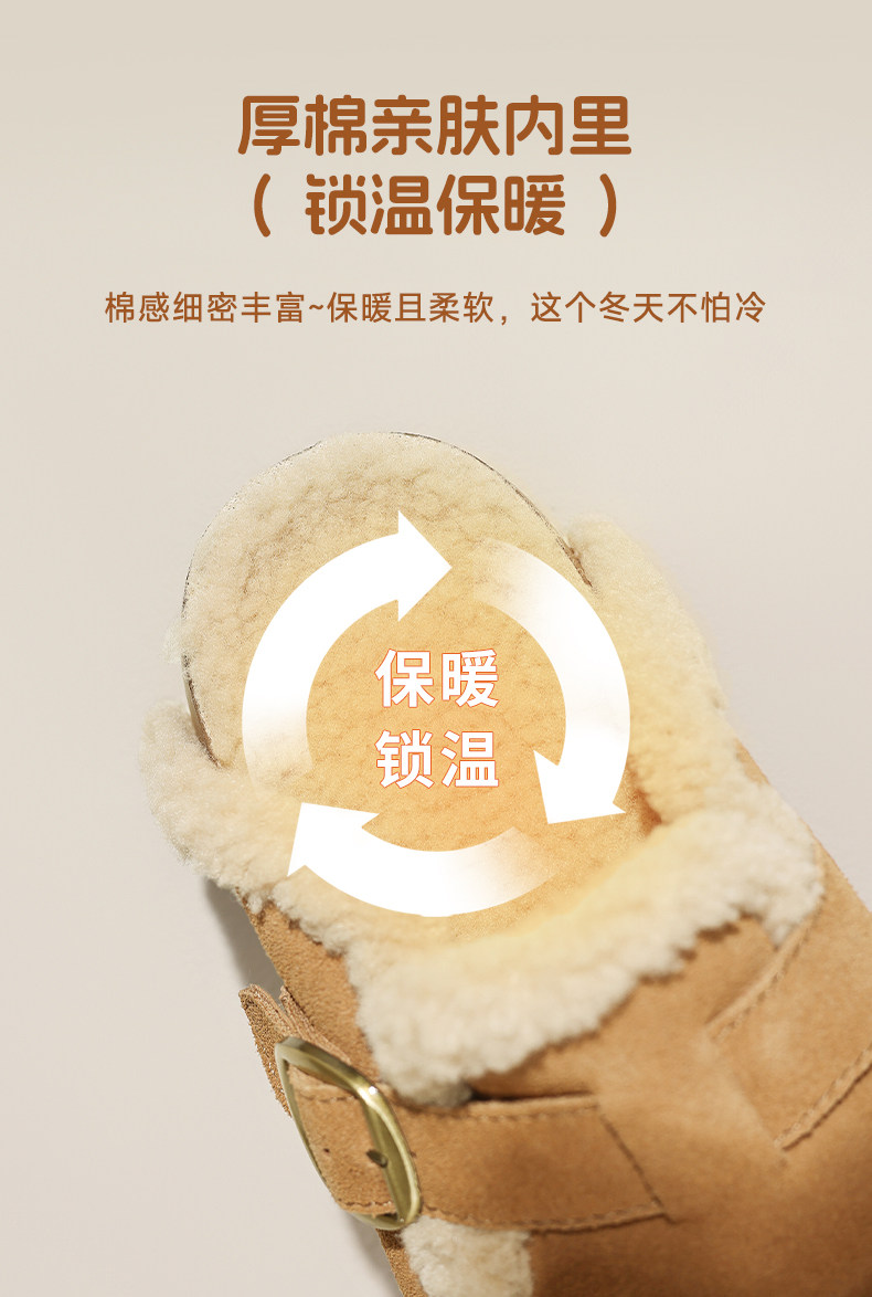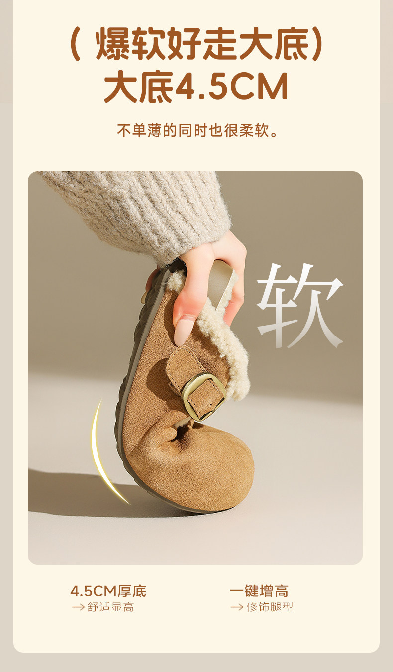 厚底勃肯鞋女2025新款秋冬外穿一腳蹬增高包頭半拖鞋子爆加絨棉鞋