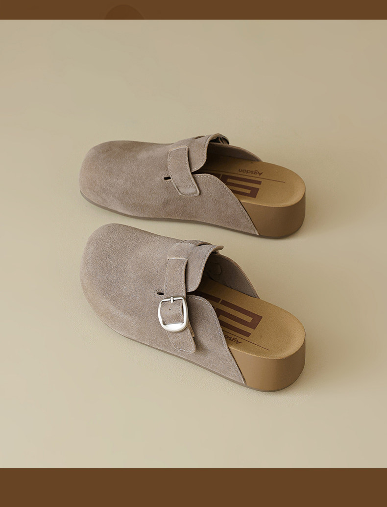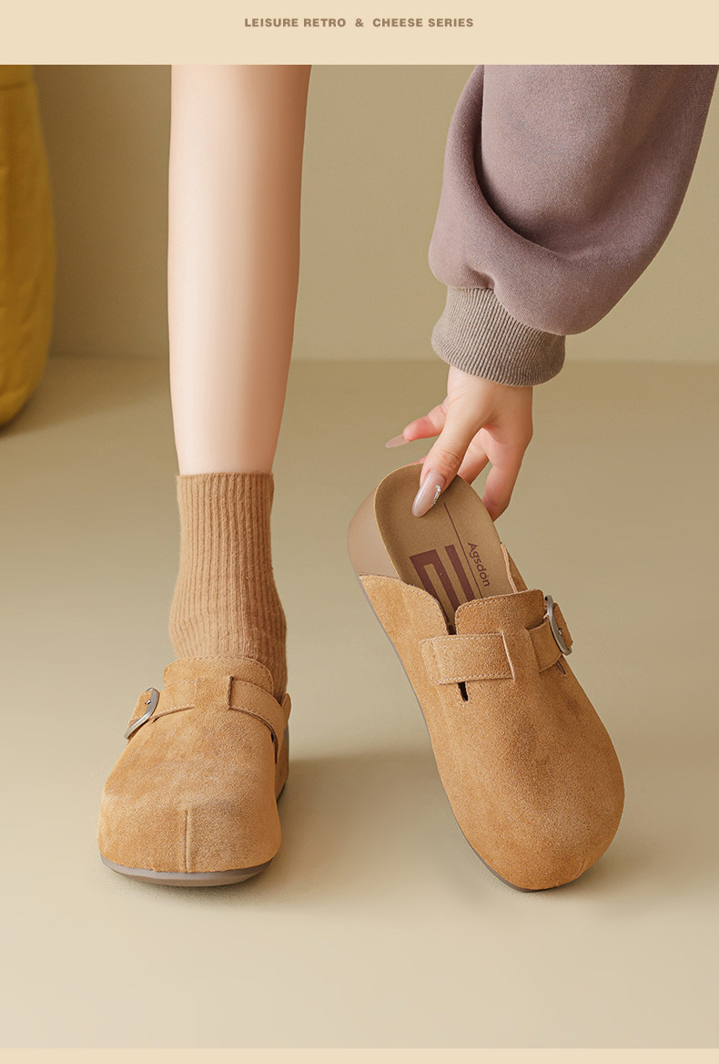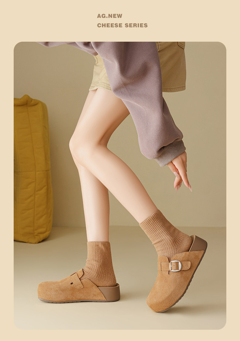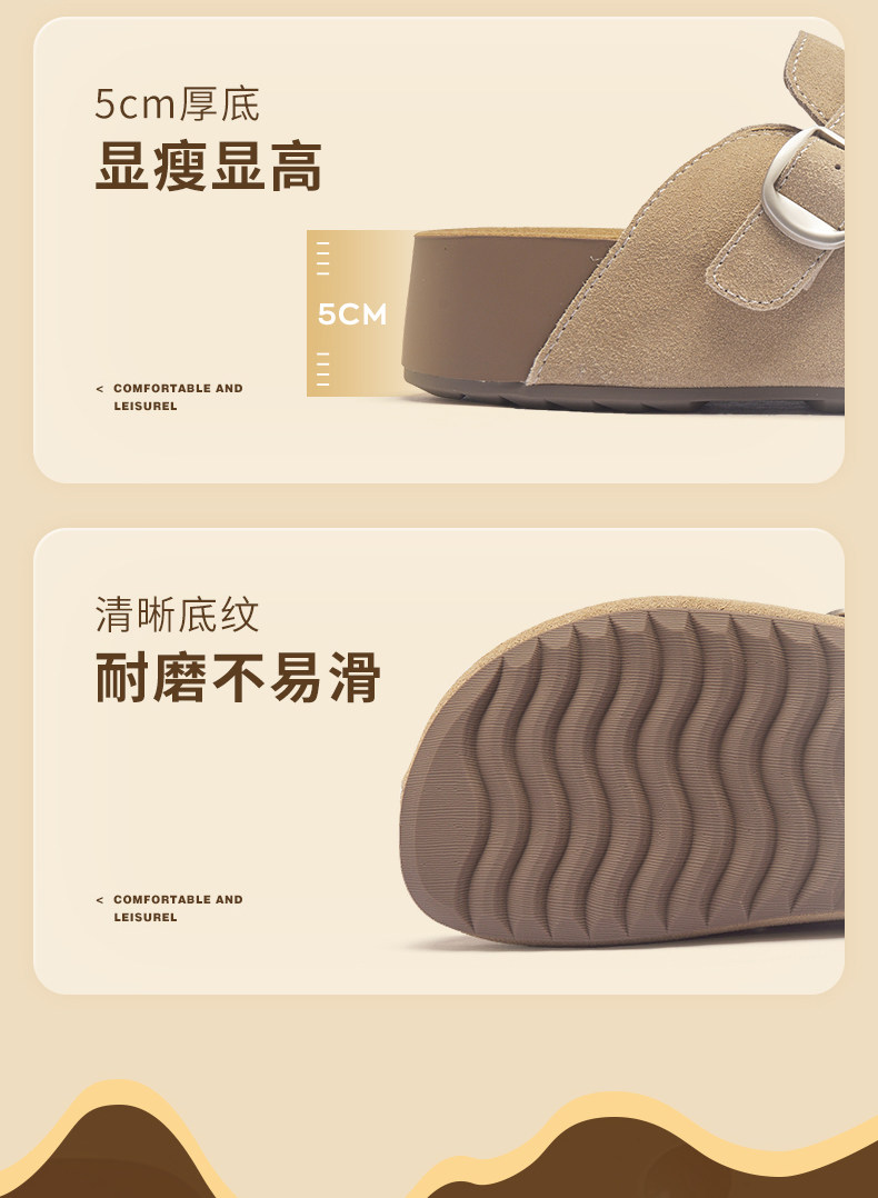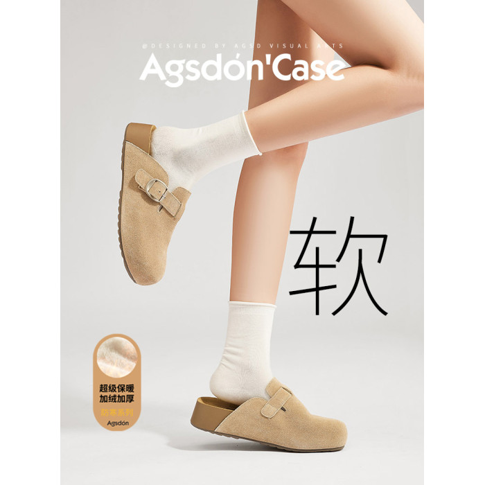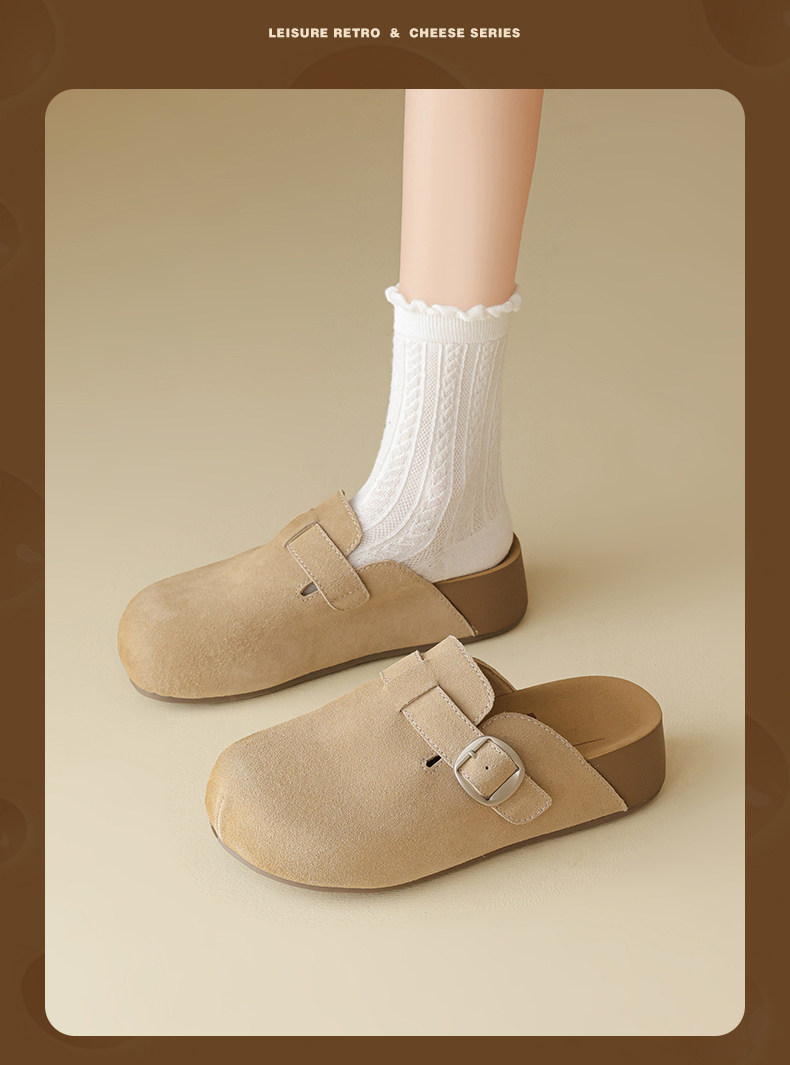 厚底勃肯鞋女2025新款秋冬外穿一腳蹬增高包頭半拖鞋子爆加絨棉鞋