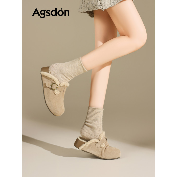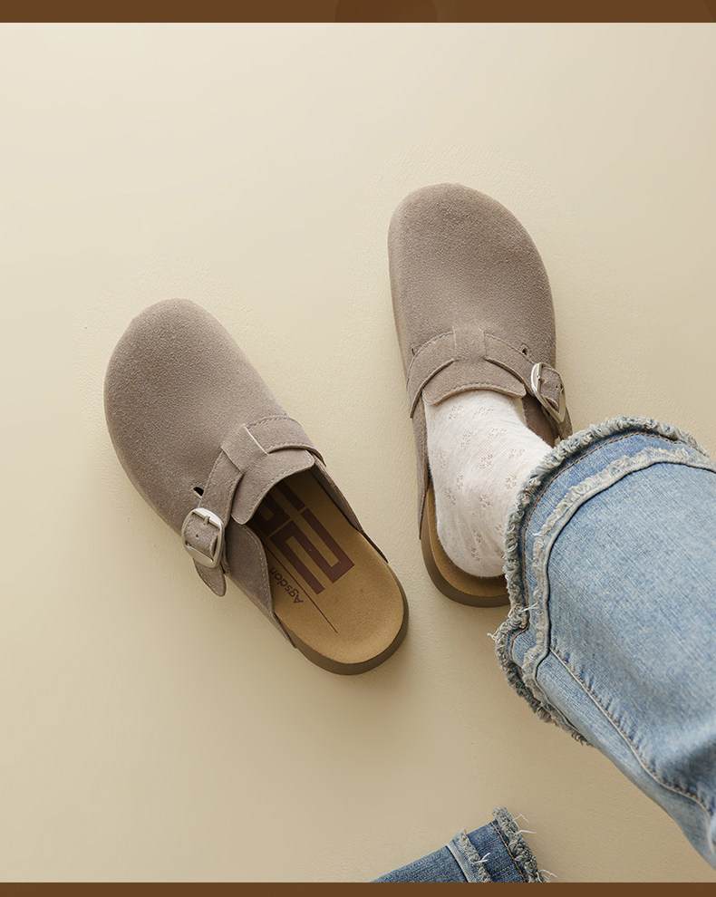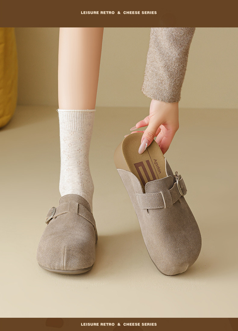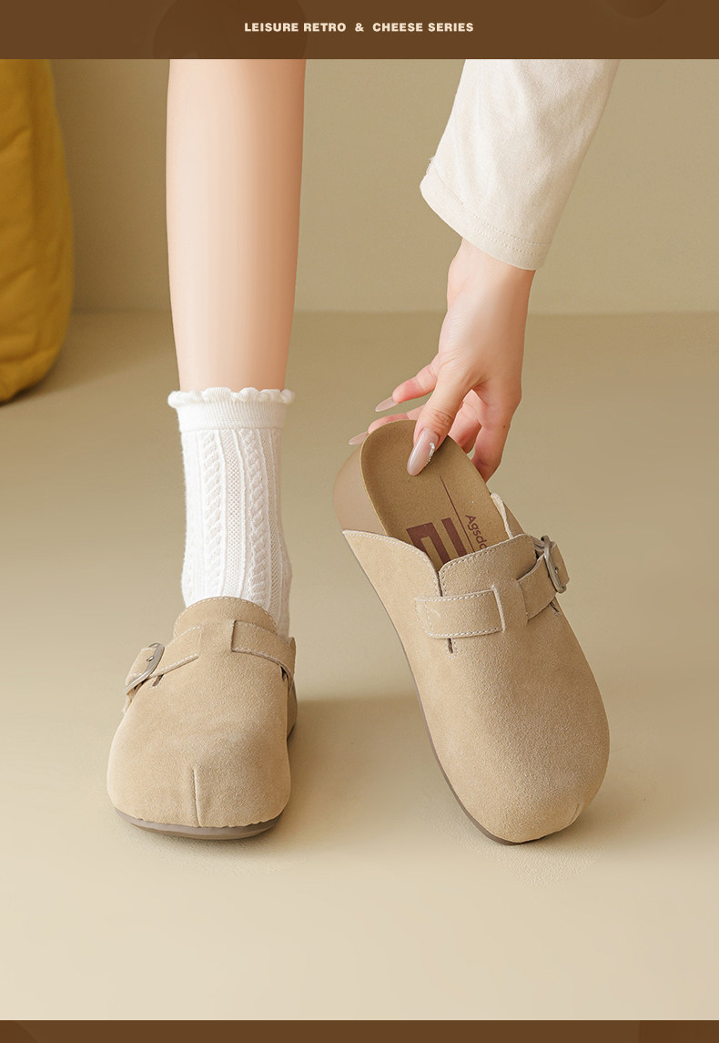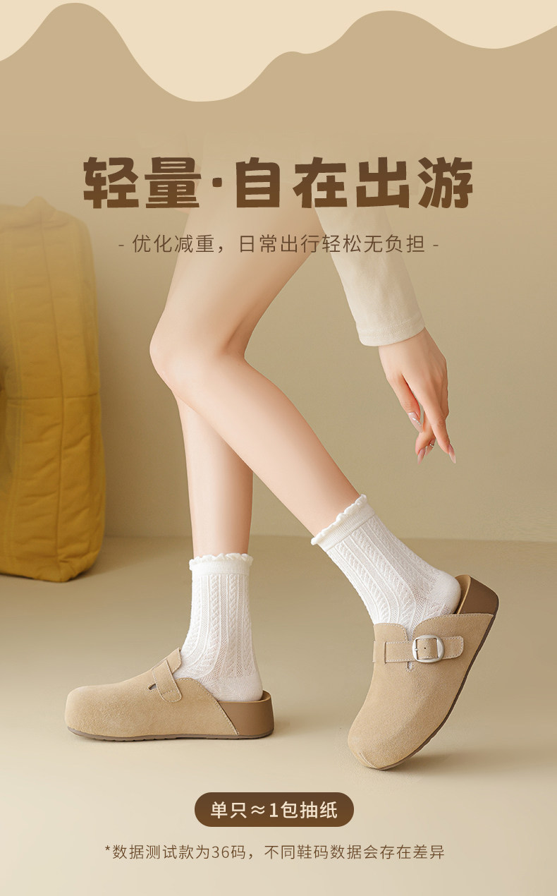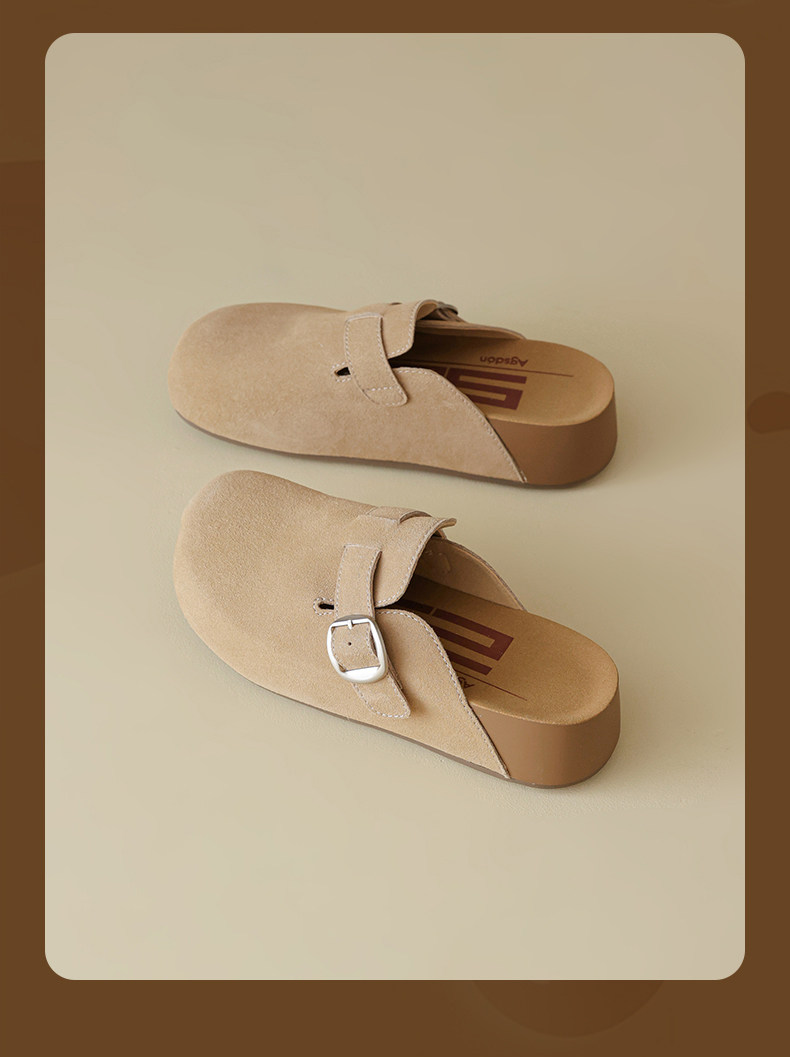 厚底勃肯鞋女2025新款秋冬外穿一腳蹬增高包頭半拖鞋子爆加絨棉鞋
