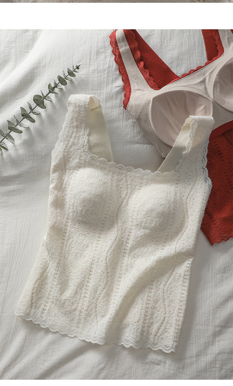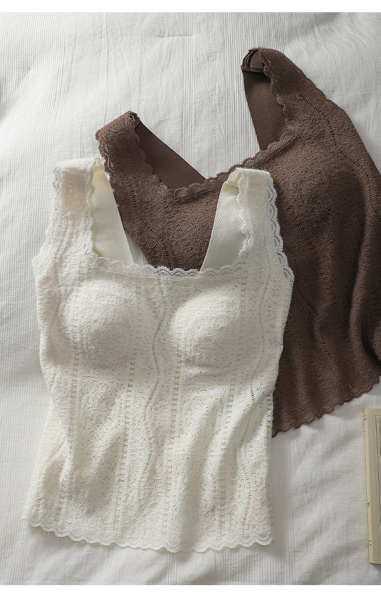 Kbra法式蕾絲保暖吊帶背心女士2025新款冬季帶胸墊內搭可外穿上衣
