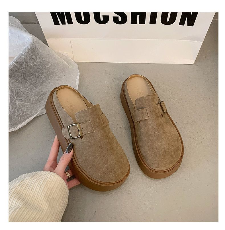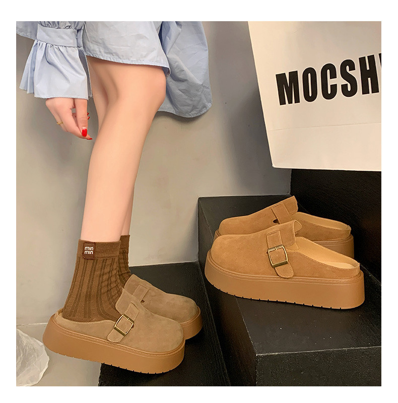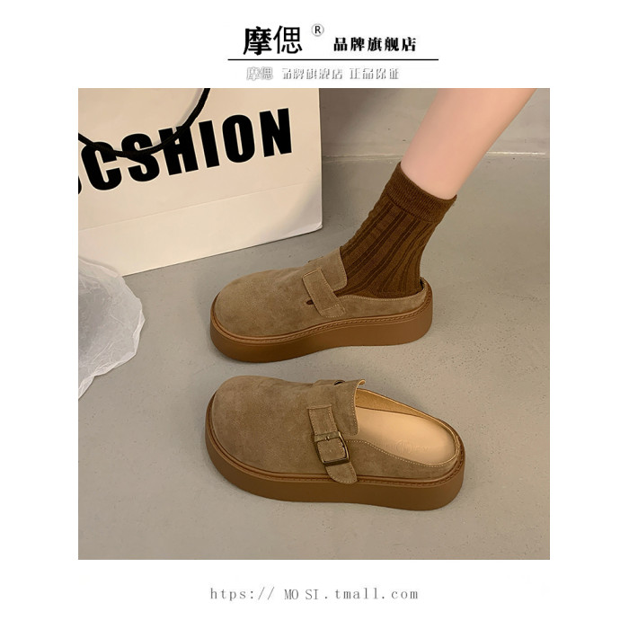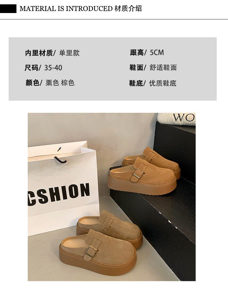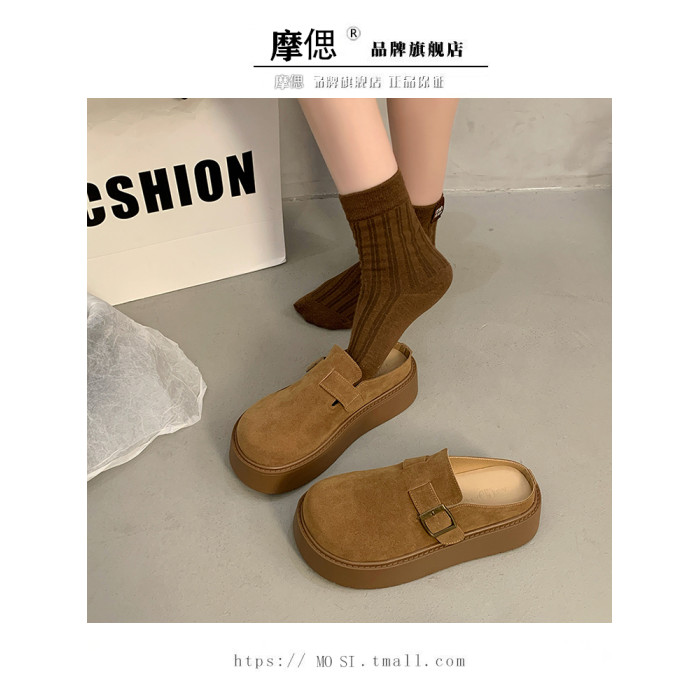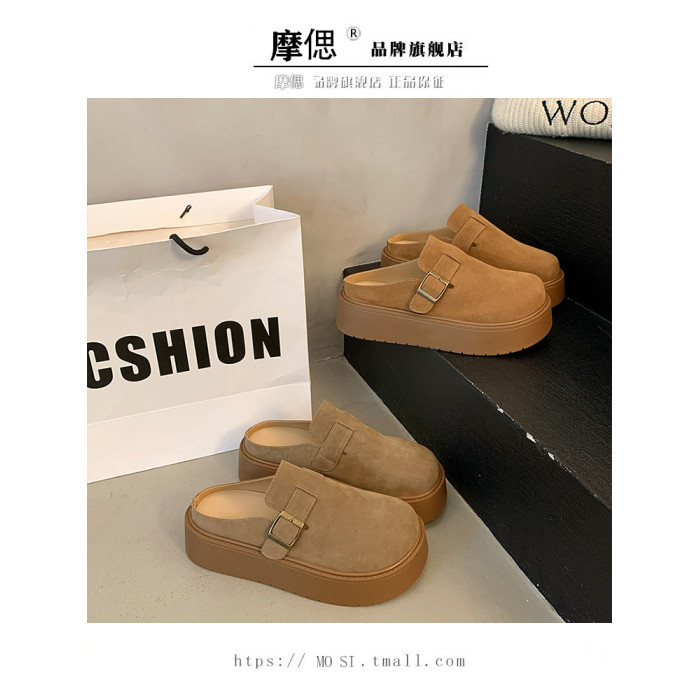 厚底增高包頭半拖鞋女外穿2025新款春季勃肯鞋一腳蹬博肯鞋涼拖鞋