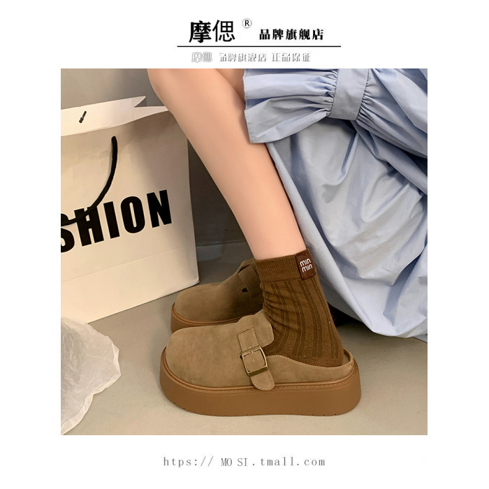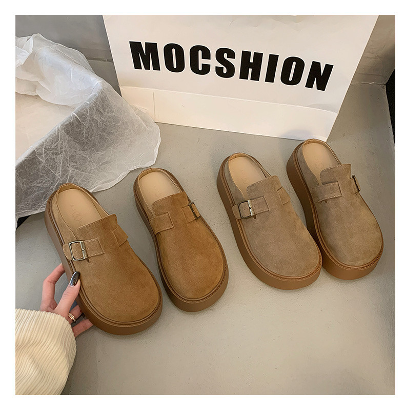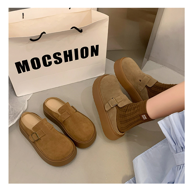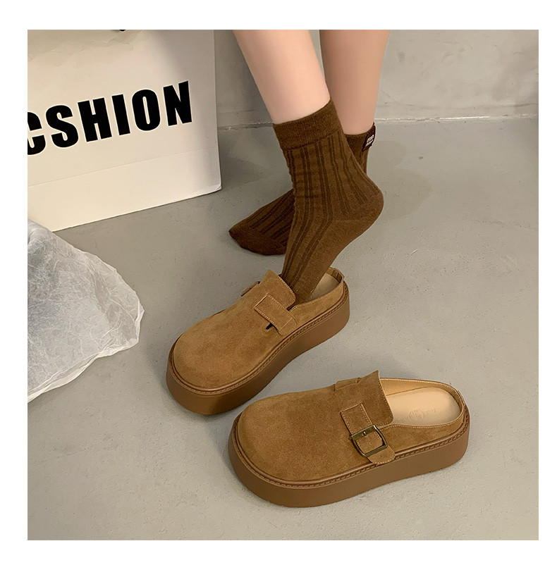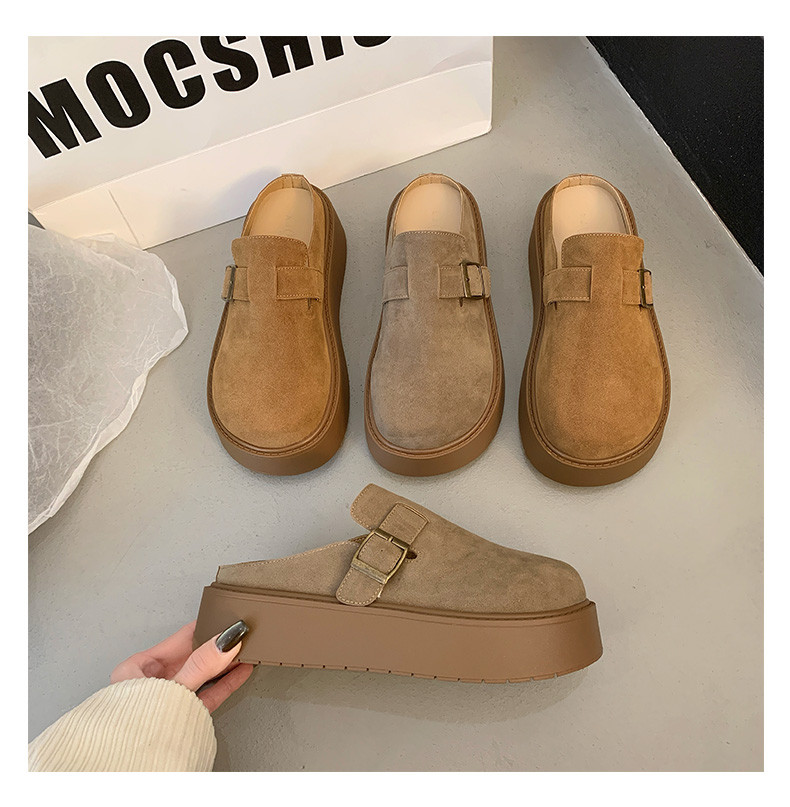 厚底增高包頭半拖鞋女外穿2025新款春季勃肯鞋一腳蹬博肯鞋涼拖鞋