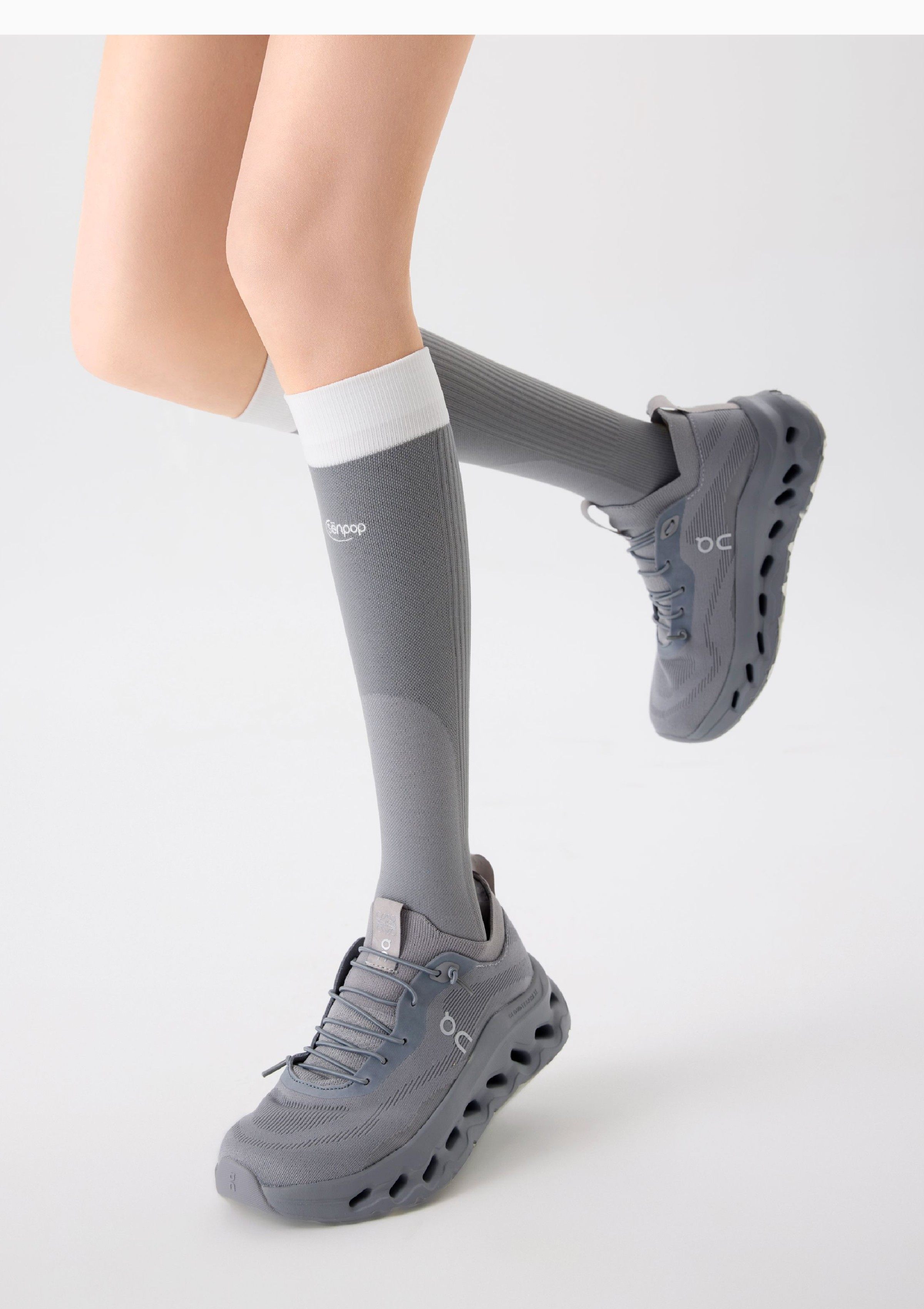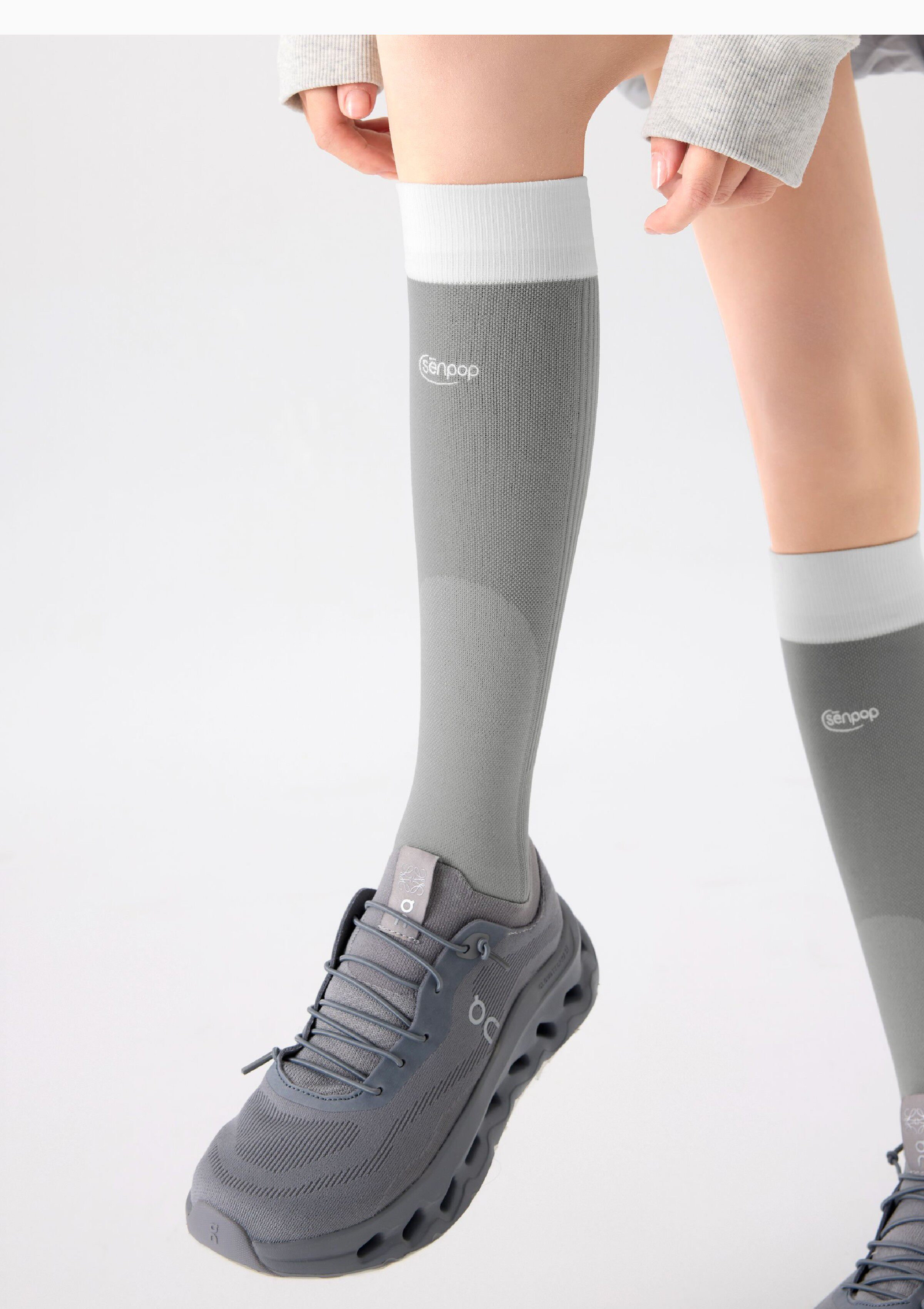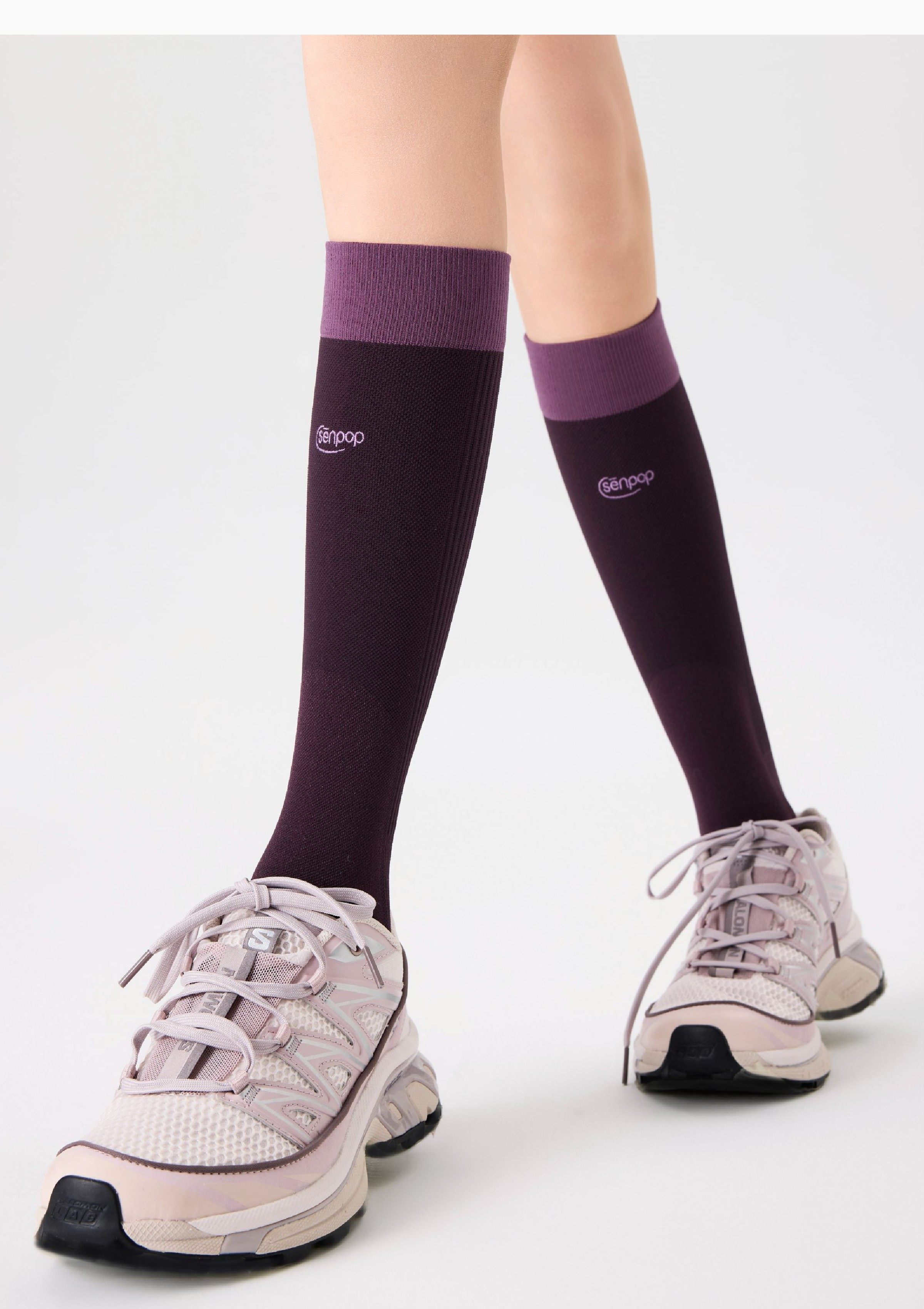 上森運動壓力襪健身騎行小腿襪登山網球彈力襪徒步紫色長筒襪夏女