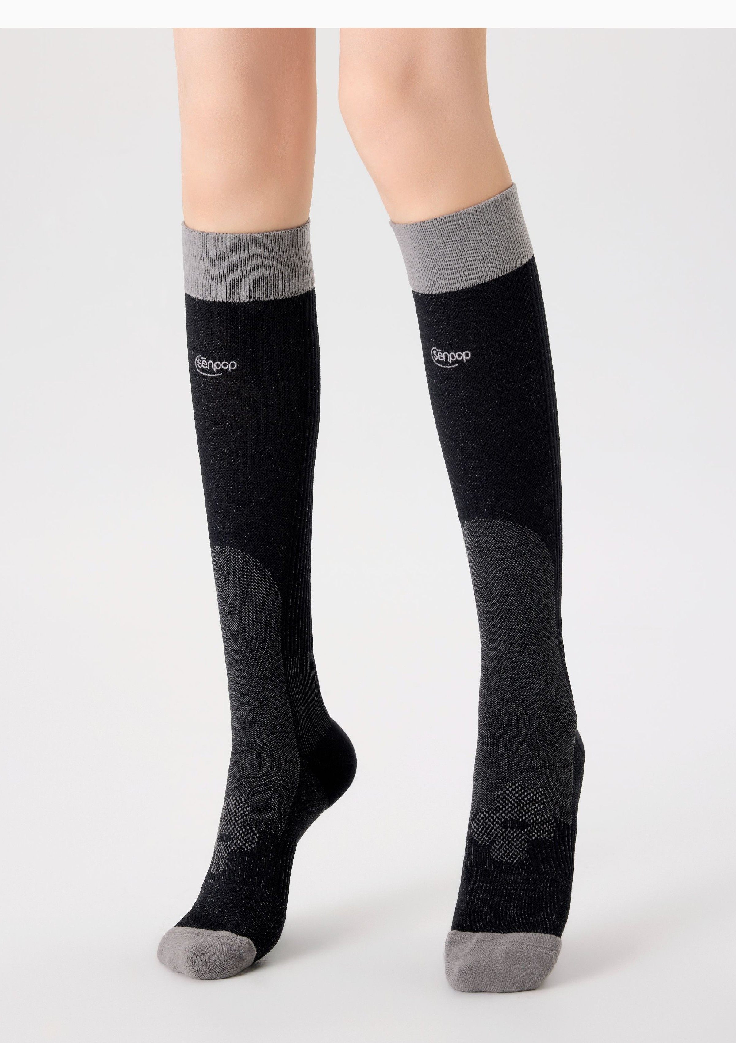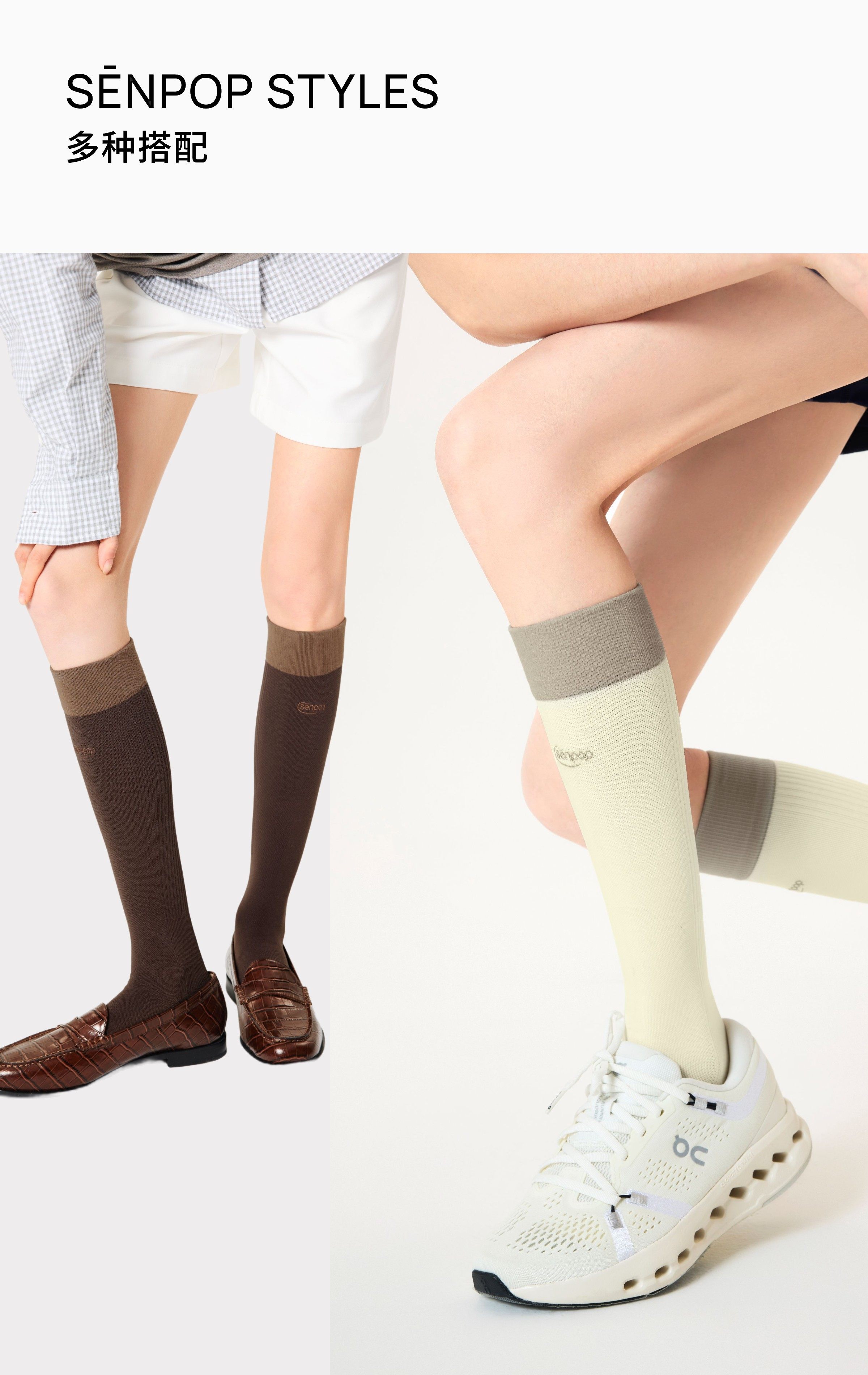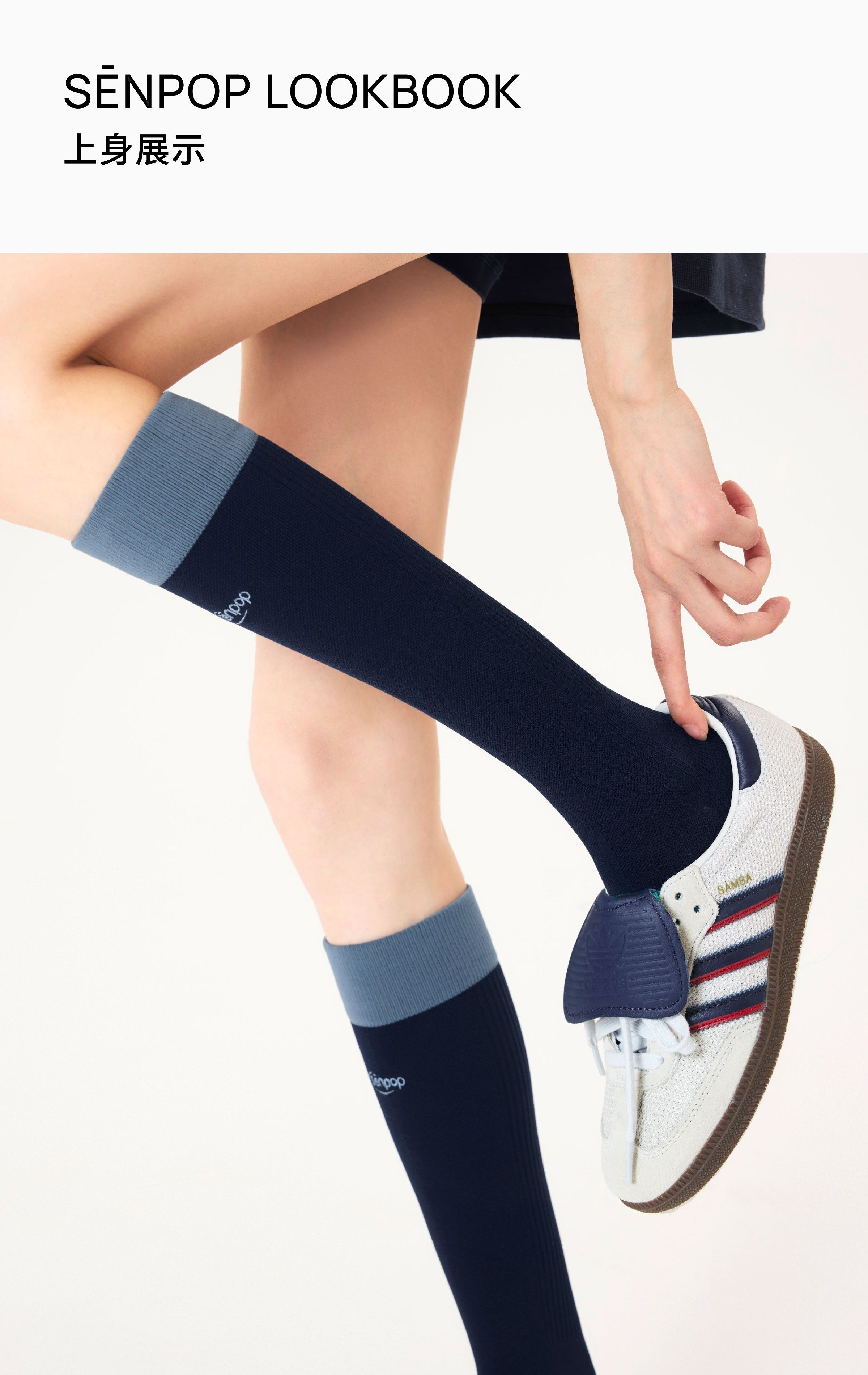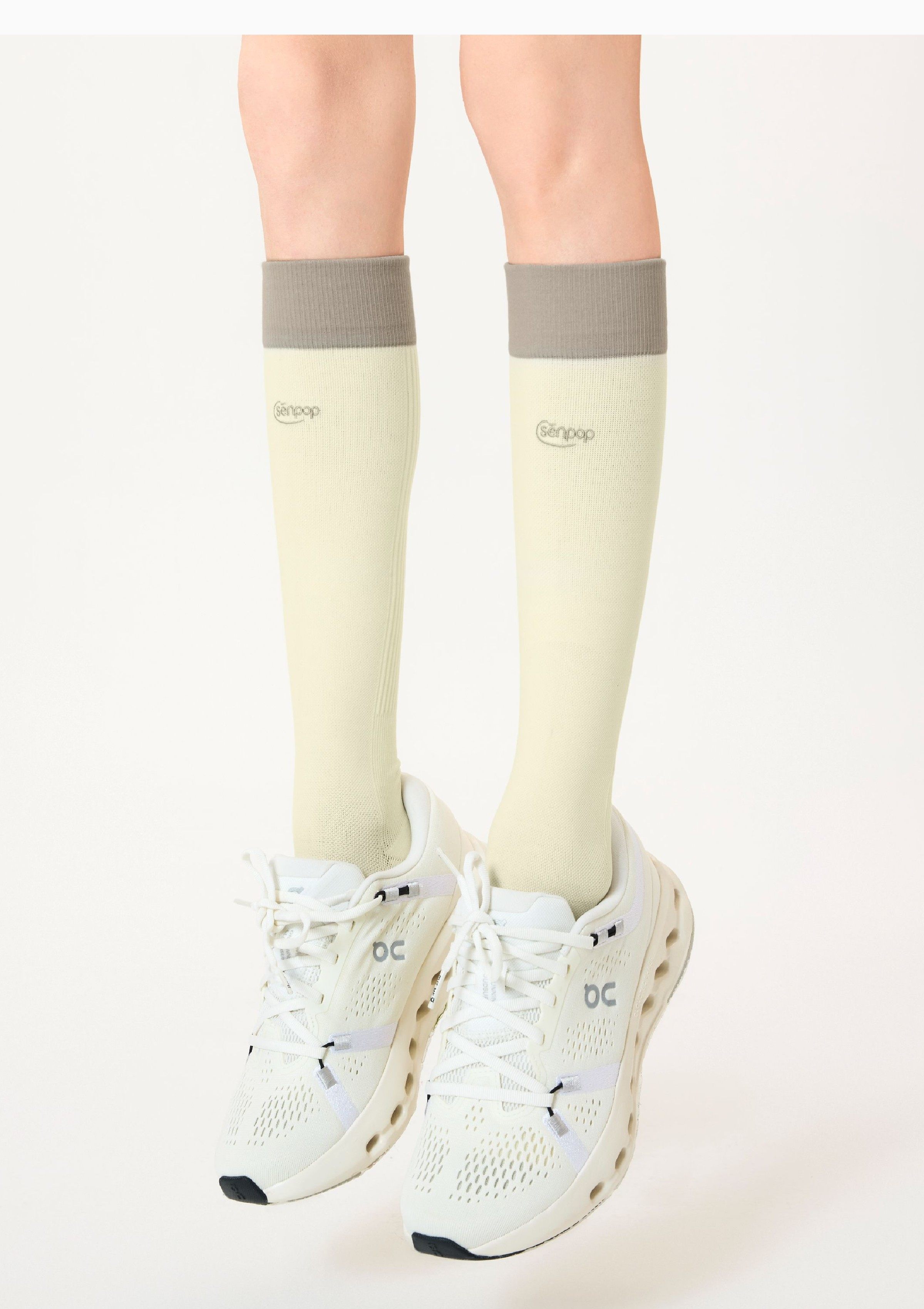 上森運動壓力襪健身騎行小腿襪登山網球彈力襪徒步紫色長筒襪夏女