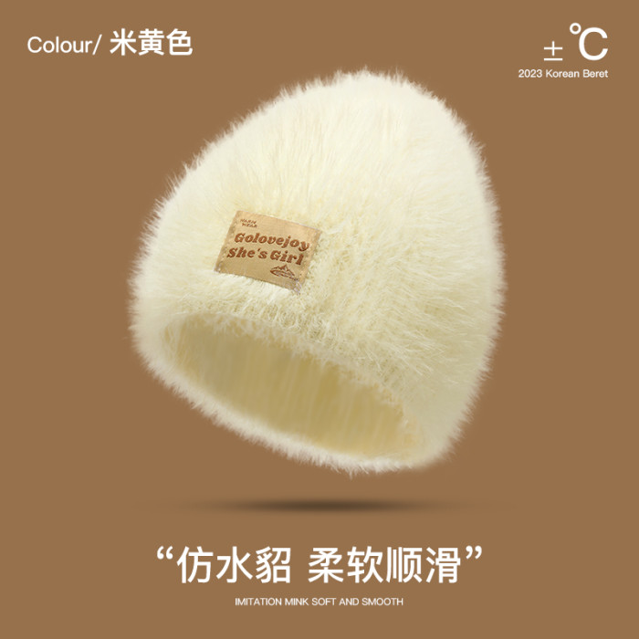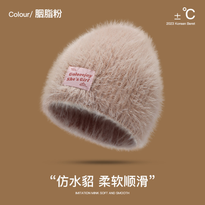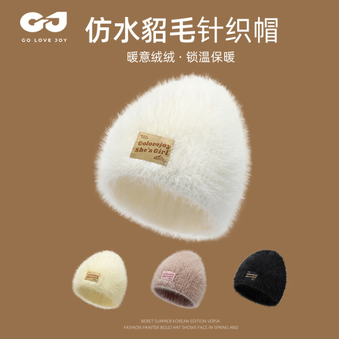 秋冬新款針織帽女生毛絨保暖仿貂毛帽子冷帽時尚百搭包頭帽顯臉小