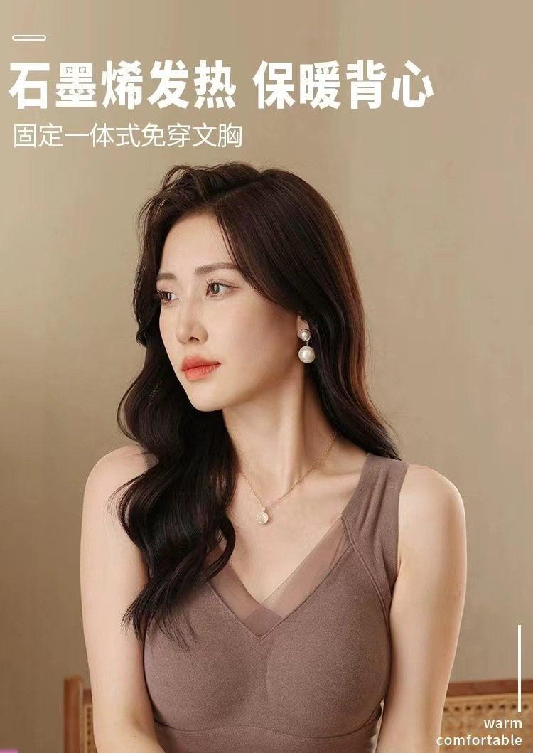 石墨烯保暖背心女免穿文胸一體發熱加厚無痕內衣塑形