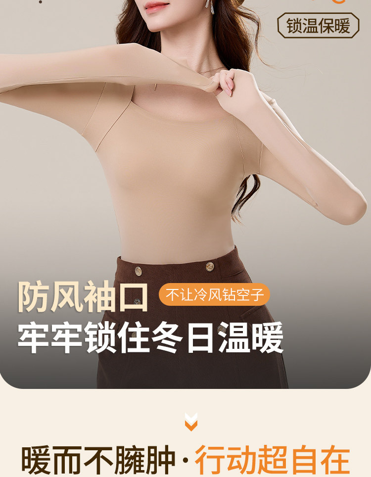 保暖內衣女帶胸墊免穿文胸超薄無痕打底衫內搭發熱美膚肌底衣秋衣