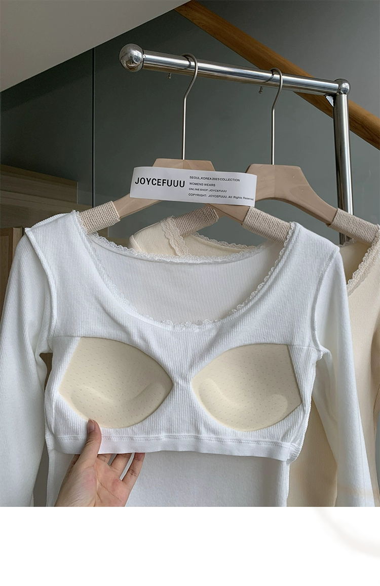 JoyceBra帶胸墊打底衫保暖內衣女秋冬加厚螺紋棉內搭外穿顯瘦秋衣