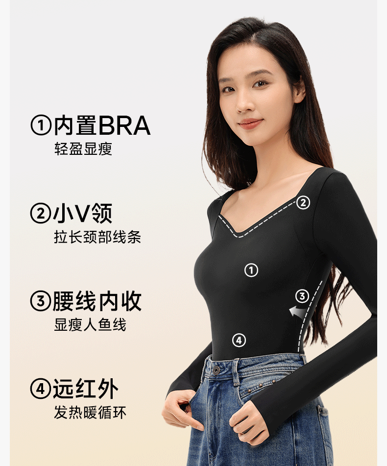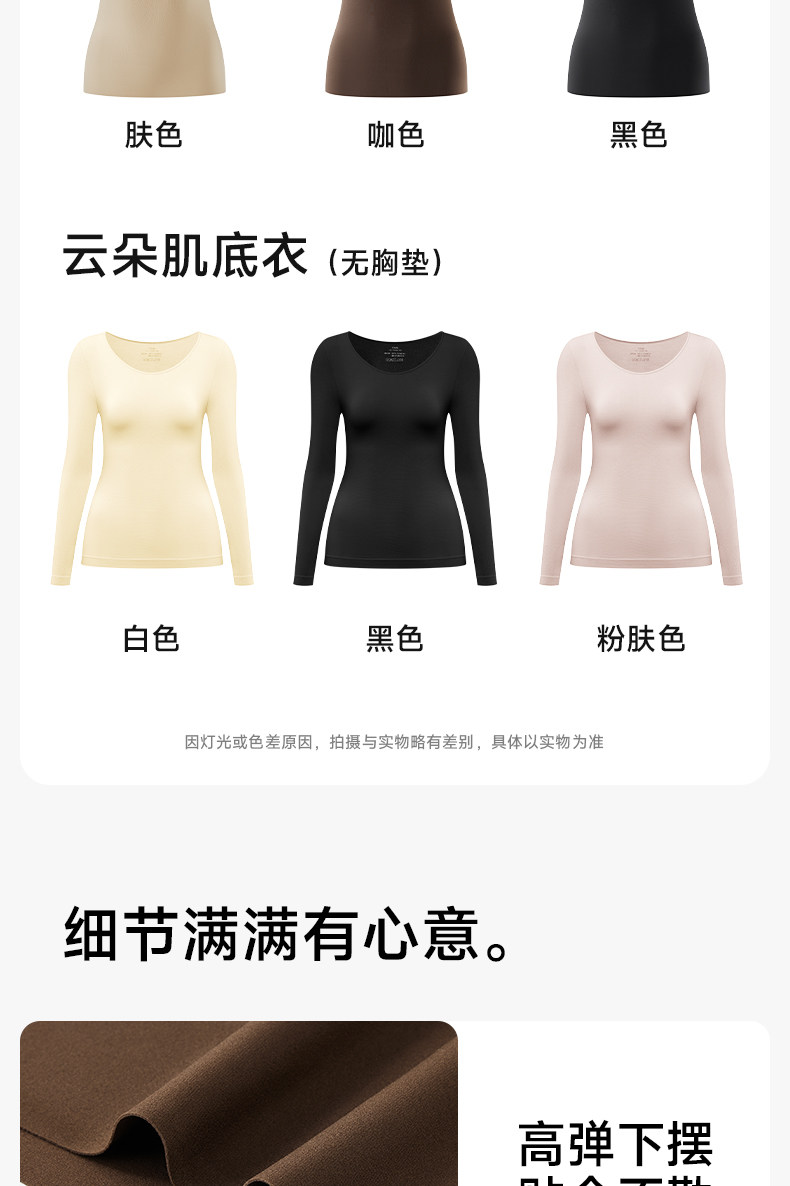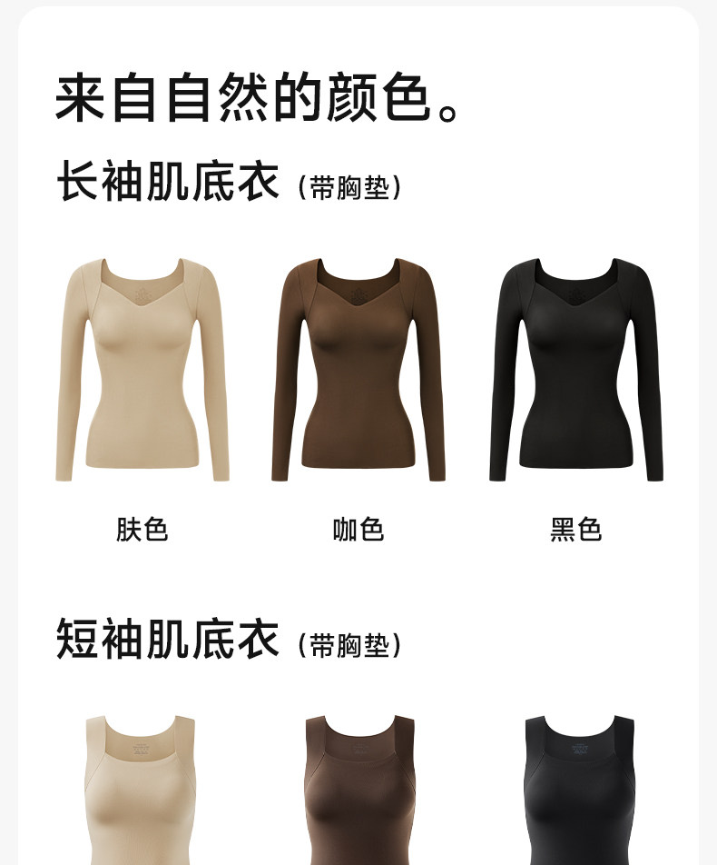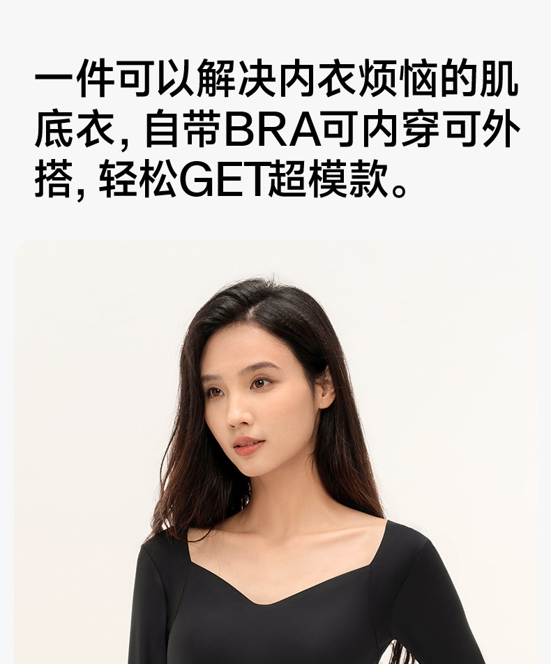 草本初色保暖上衣內搭打底女士秋冬長袖帶胸墊可外穿肌底衣打底衫