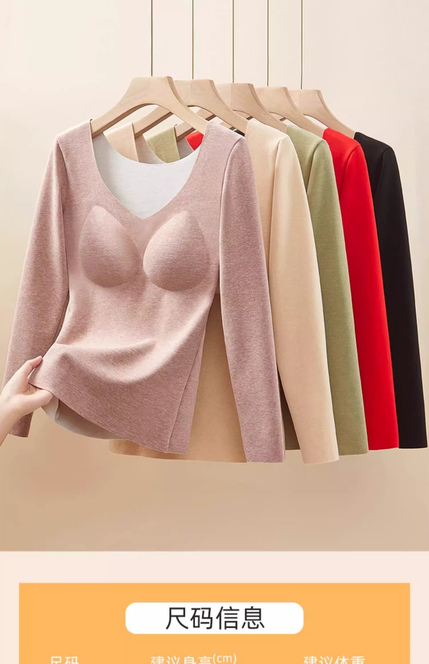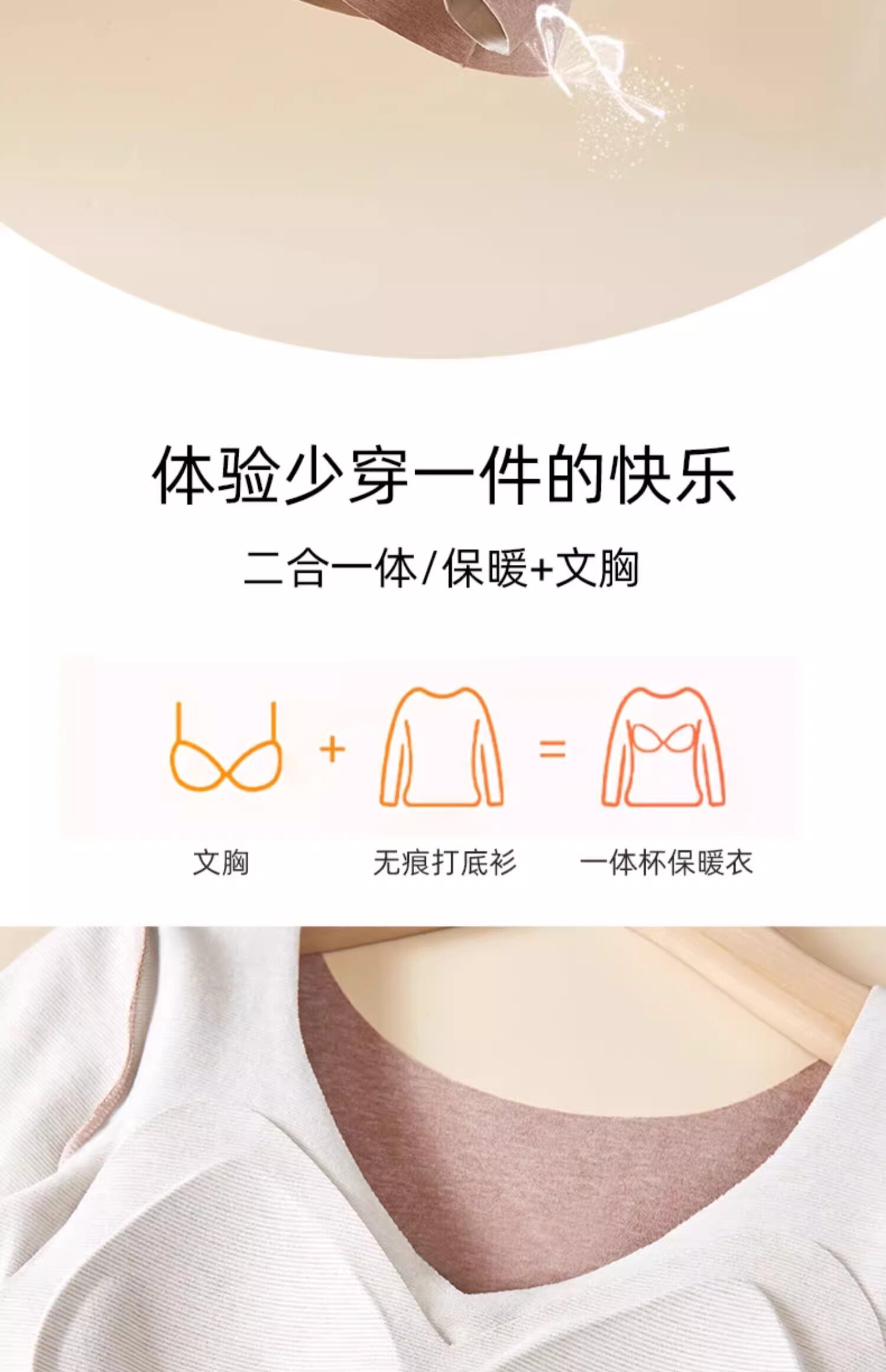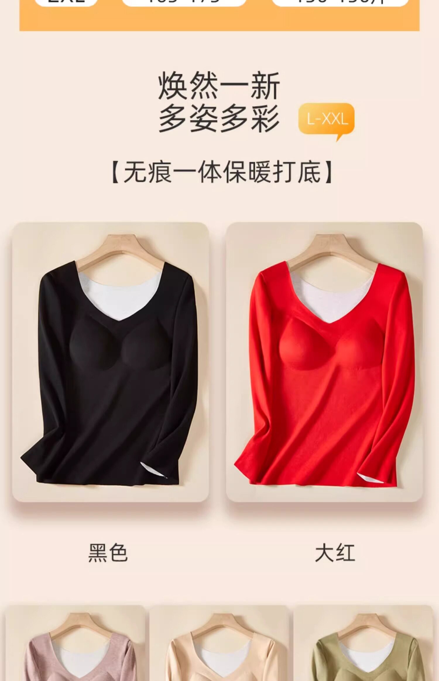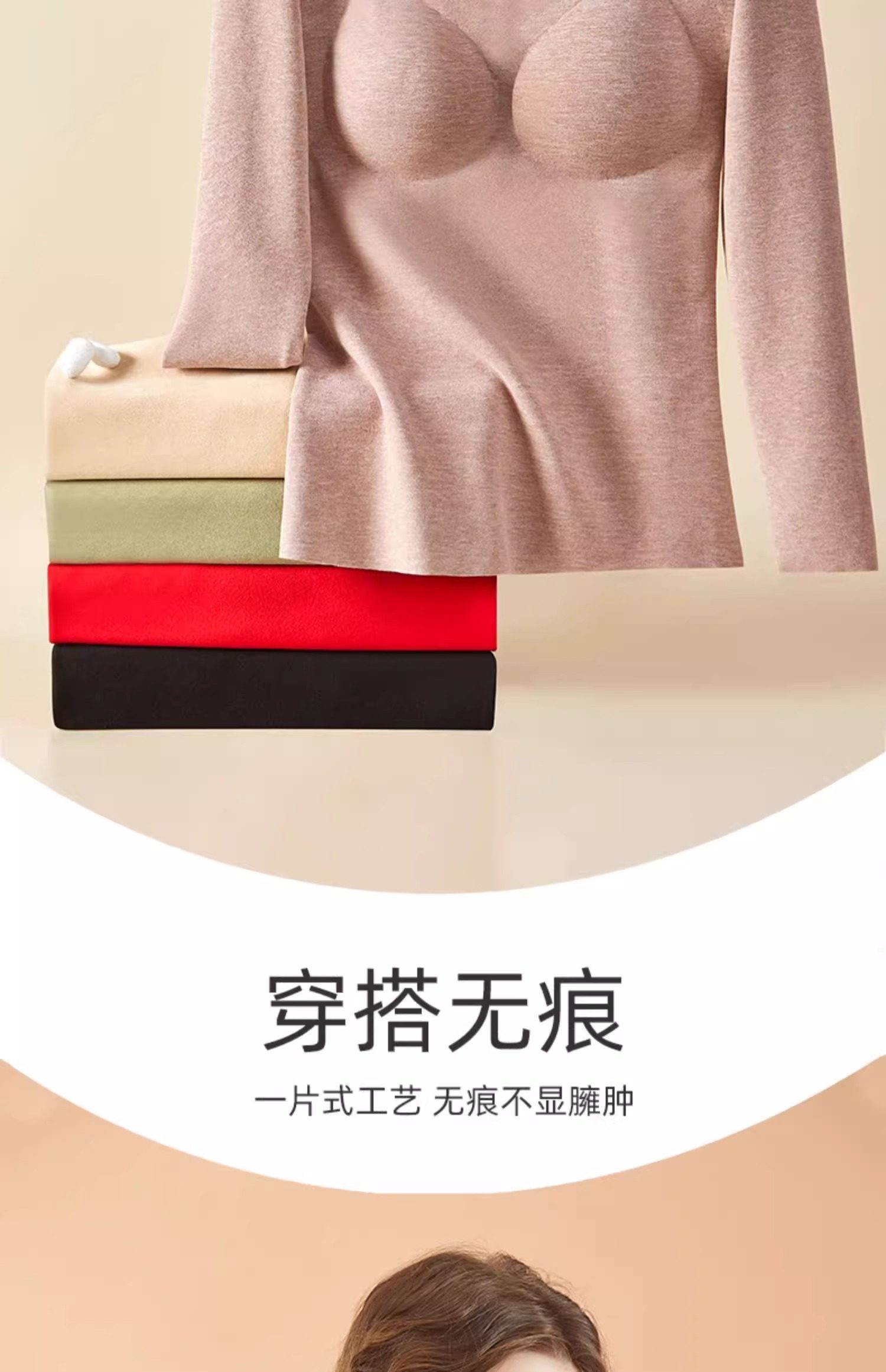 無痕保暖內衣女士帶胸墊加絨髮熱內搭上衣打底衫2025新款秋衣冬季