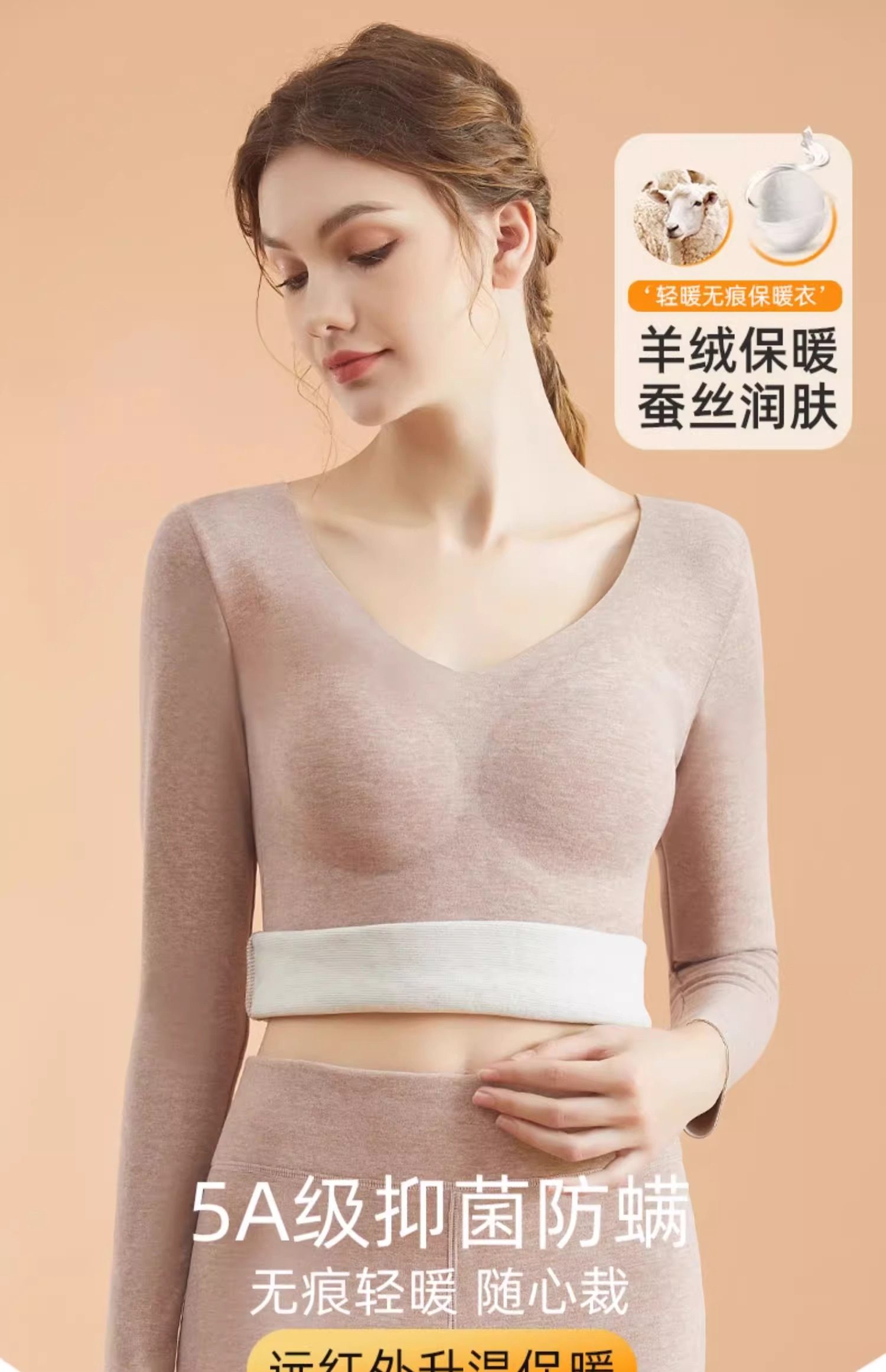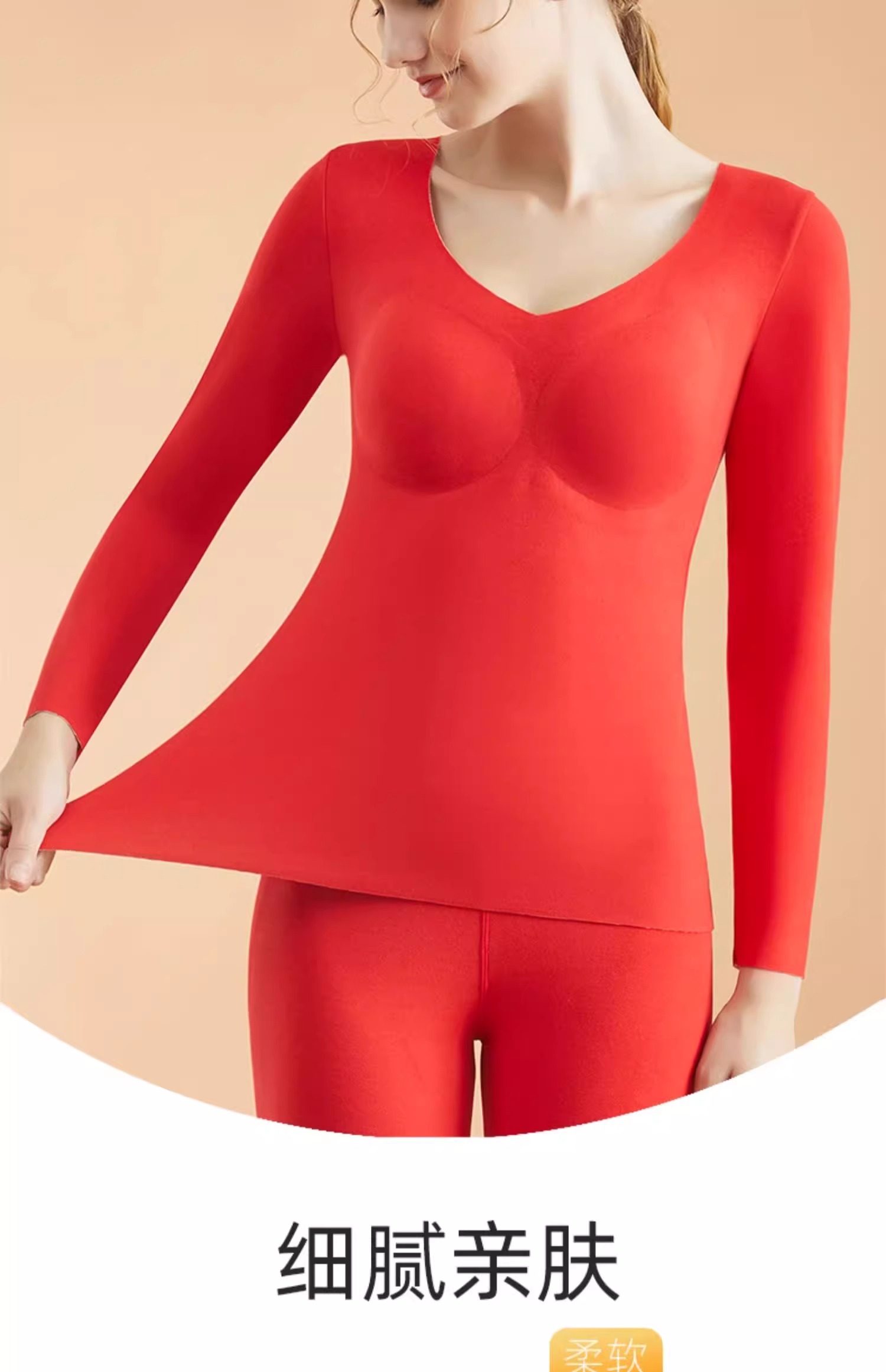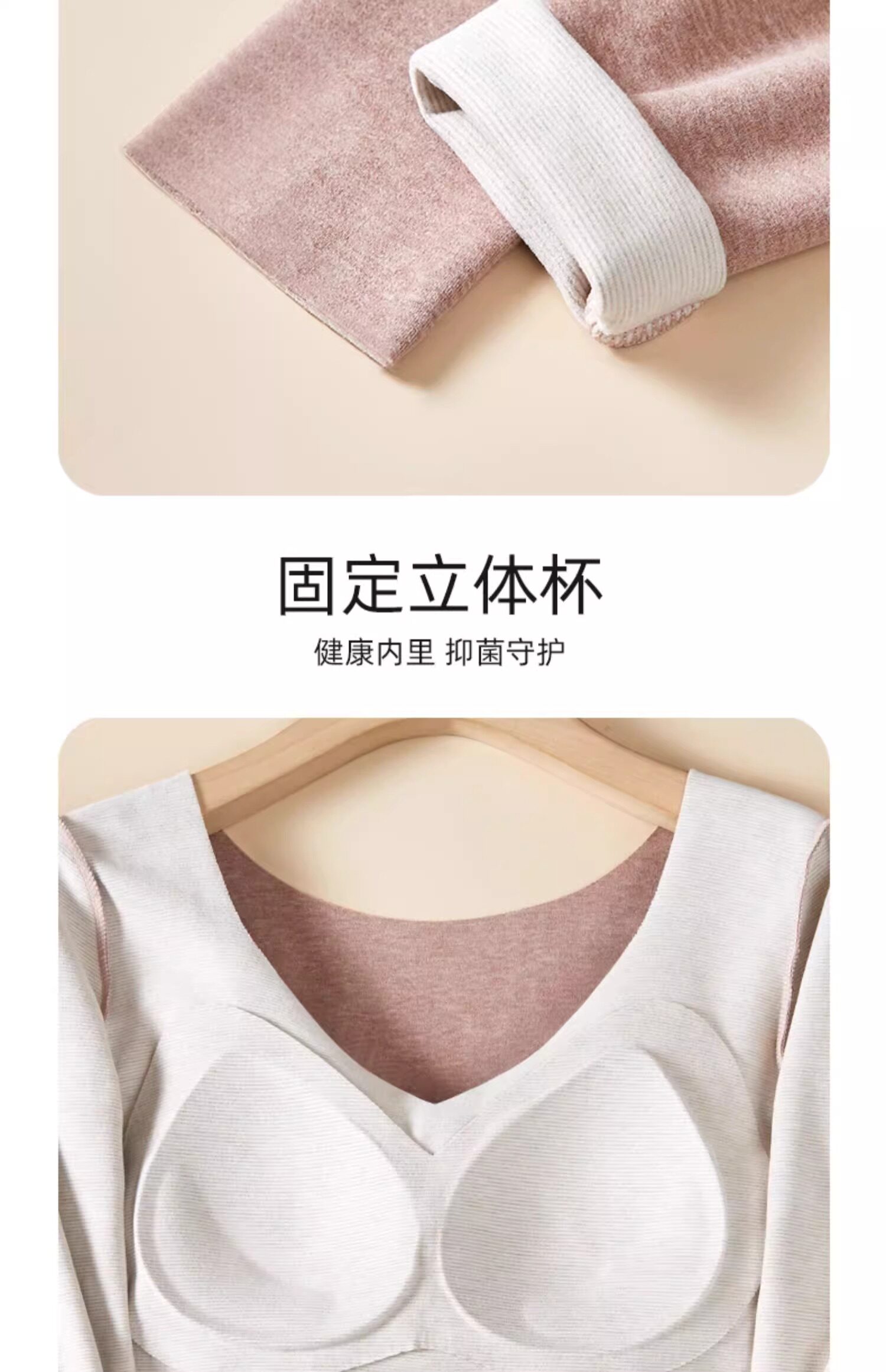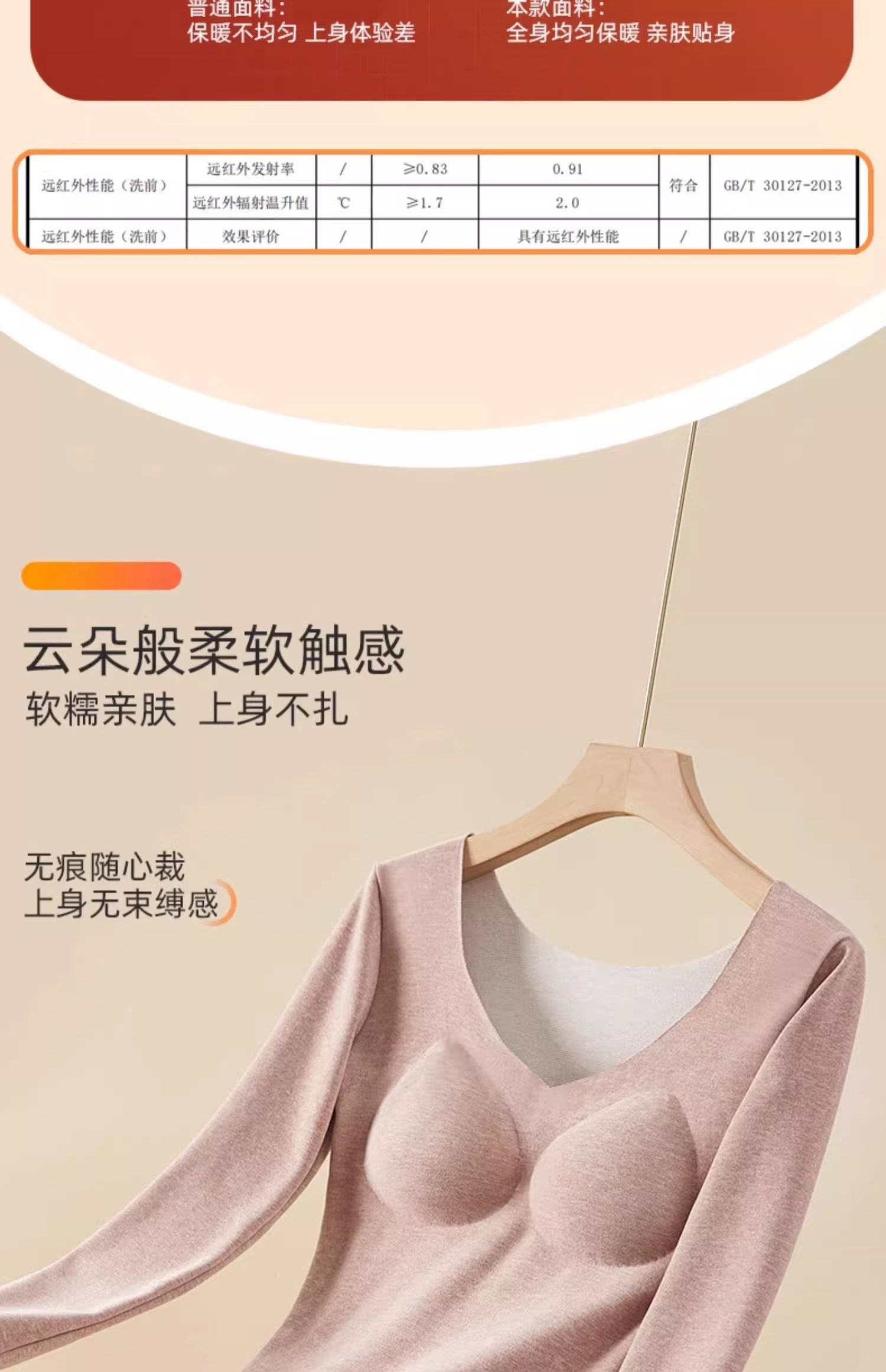 無痕保暖內衣女士帶胸墊加絨髮熱內搭上衣打底衫2025新款秋衣冬季