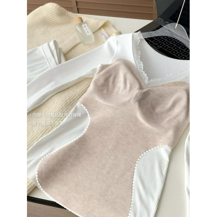7A羊絨保暖內衣女加絨加厚秋衣秋褲套裝2024秋冬季新款帶胸墊上衣