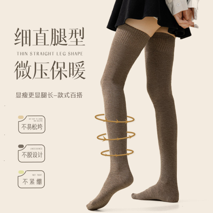 襪子女秋冬季加厚保暖過膝襪抗起球顯瘦大腿襪日系簡約純色壓力襪