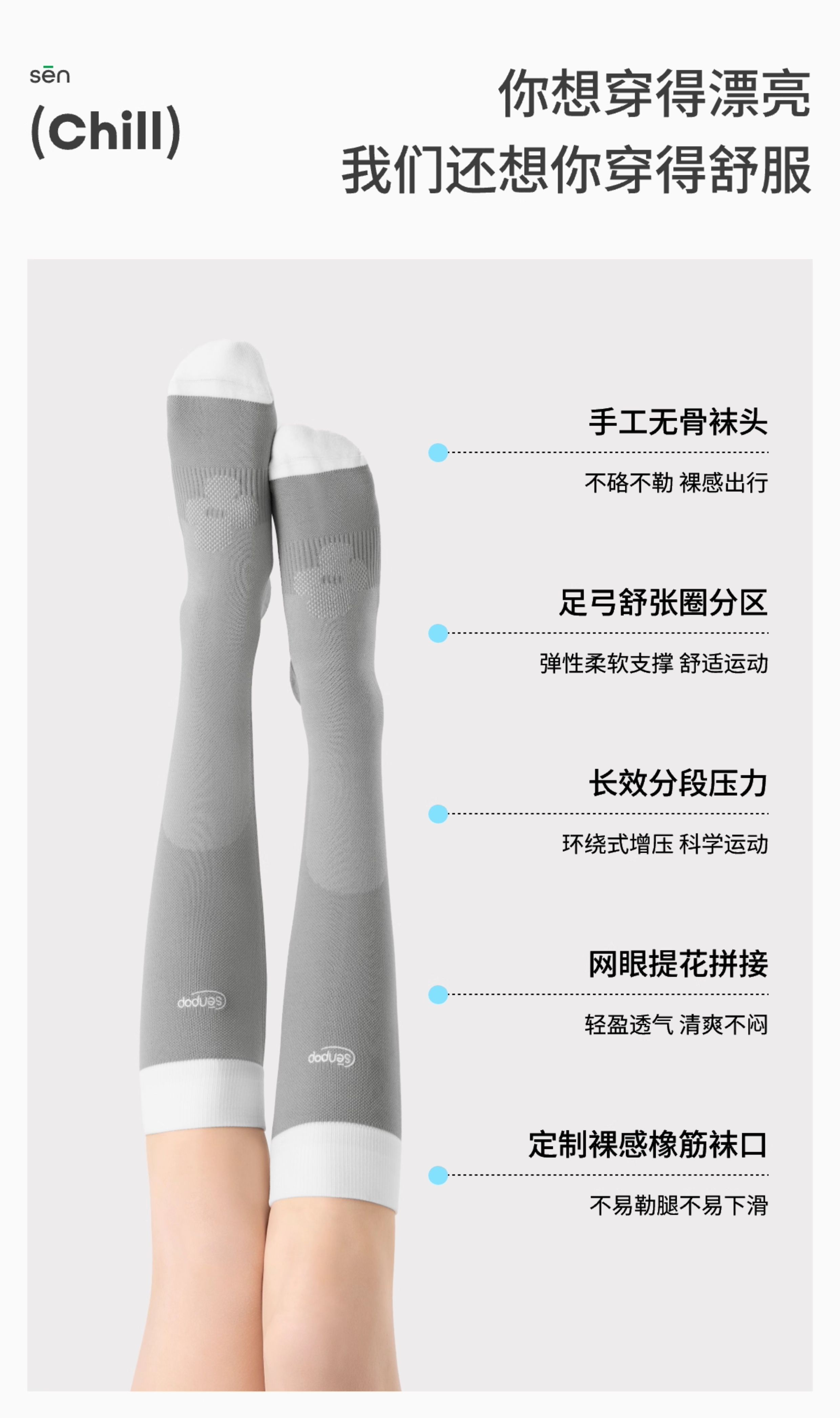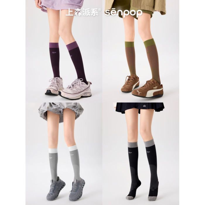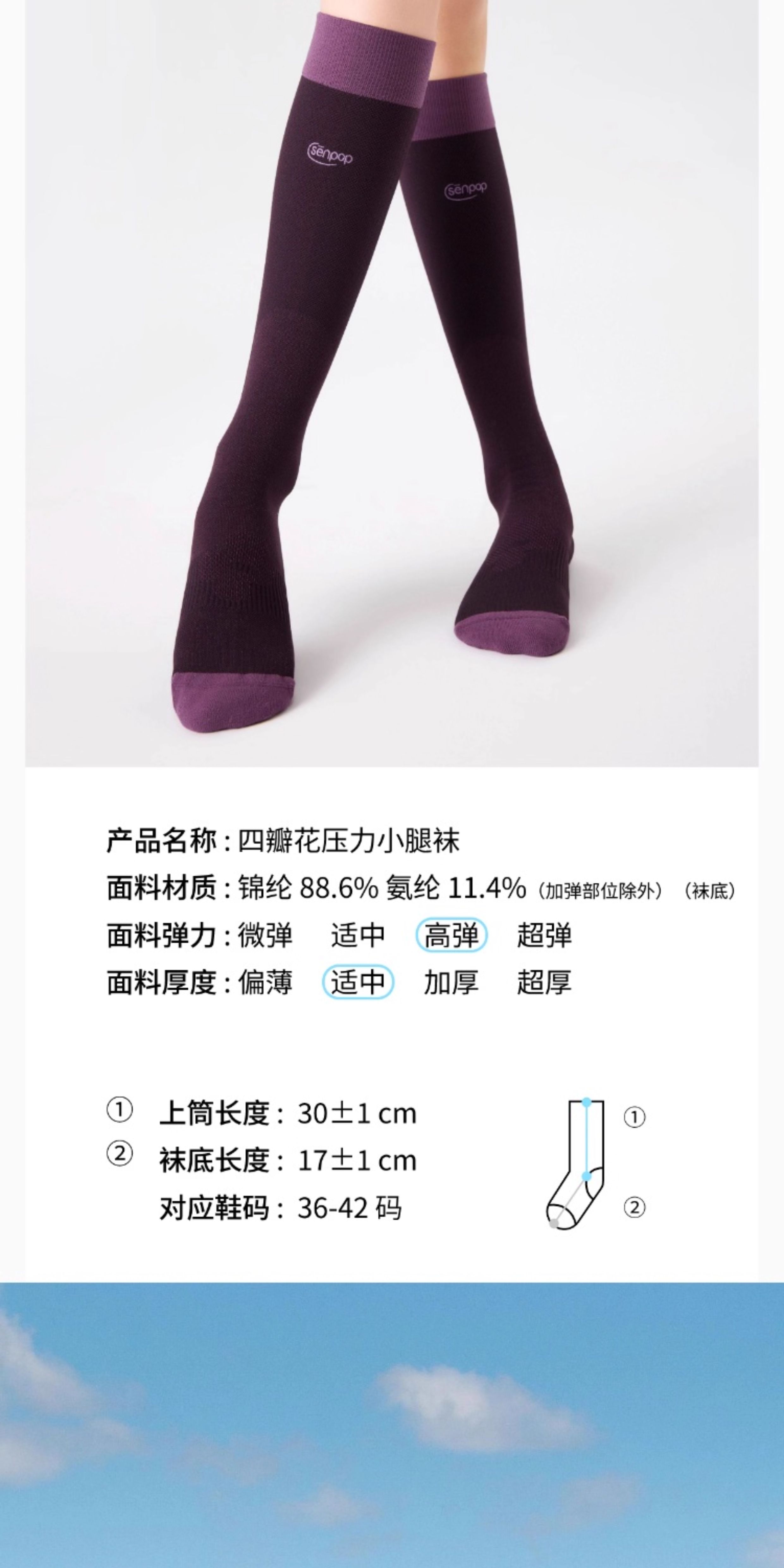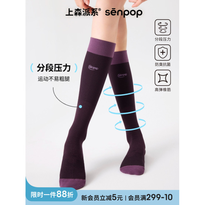上森紫色長筒壓力襪運動小腿襪戶外長襪跑步跳繩徒步登山網球騎行