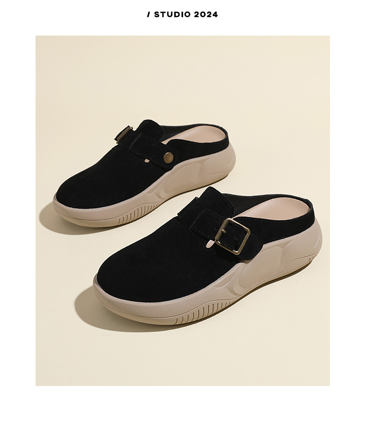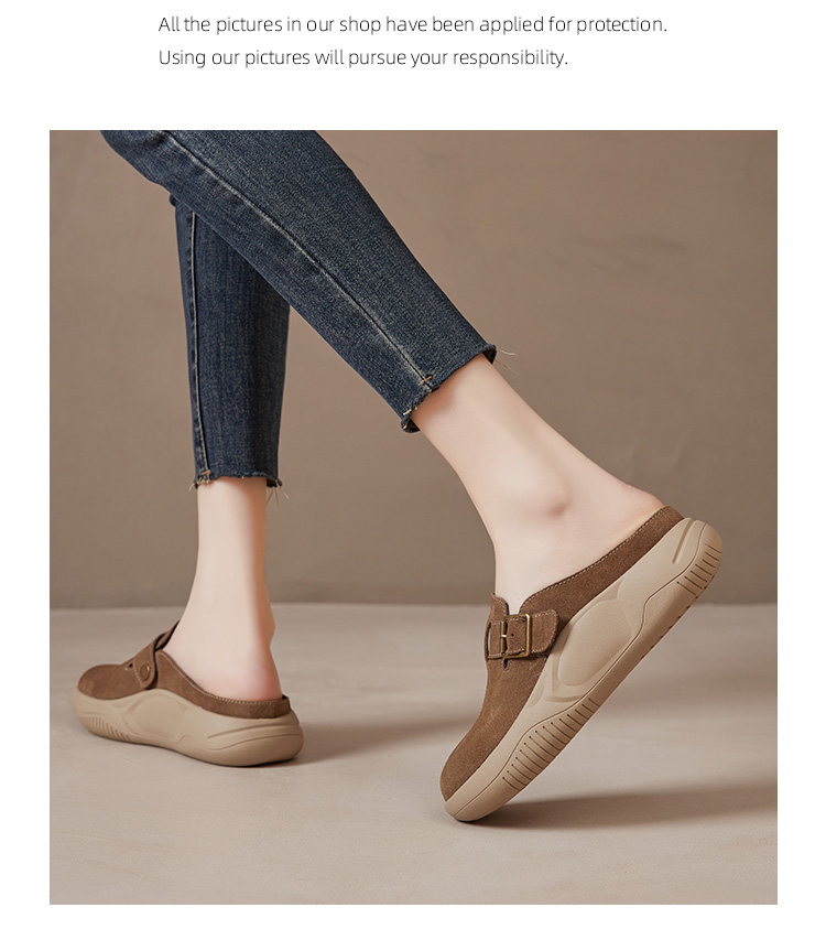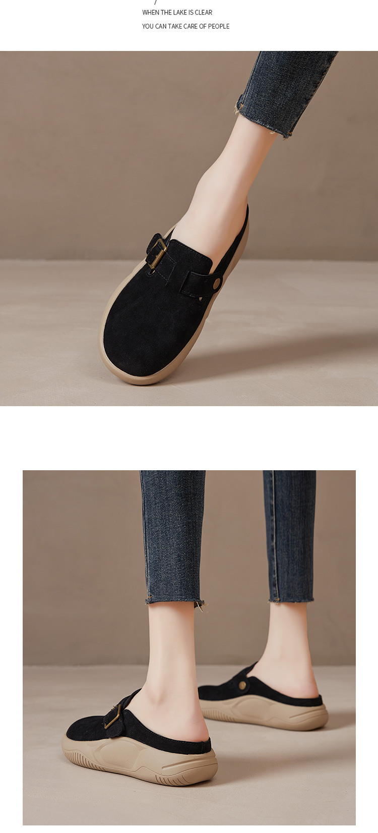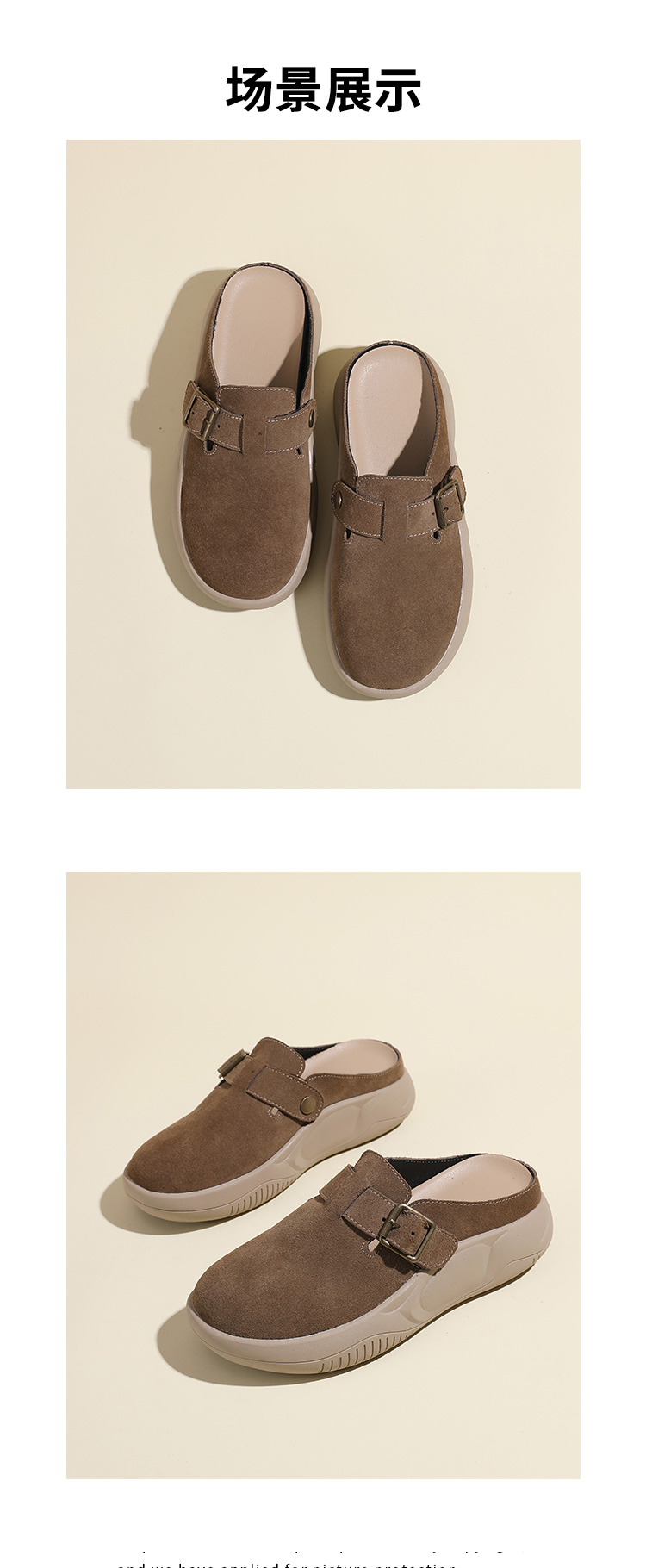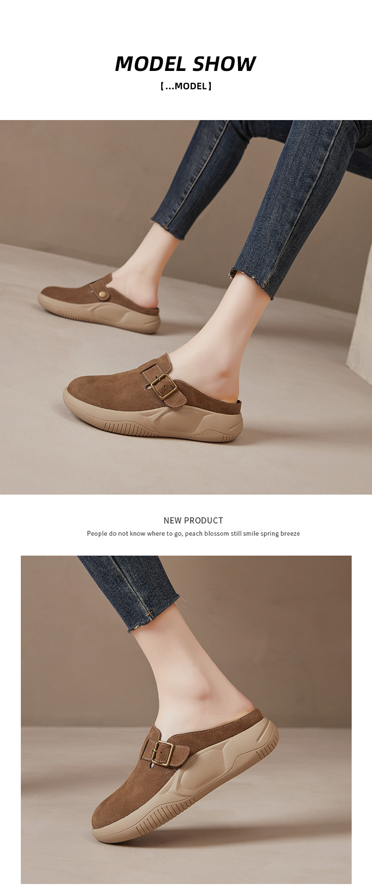 真皮復古厚底包頭半拖鞋女2025春秋新款一腳蹬穆勒鞋軟底博肯鞋子