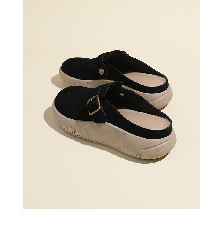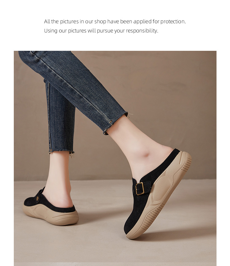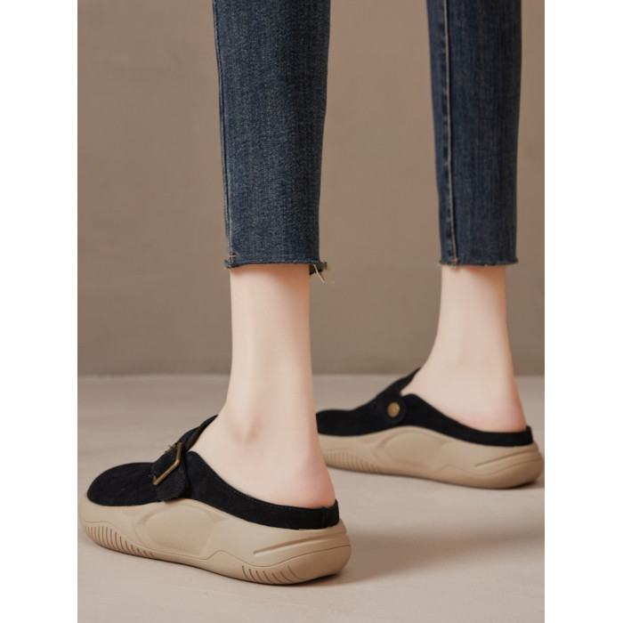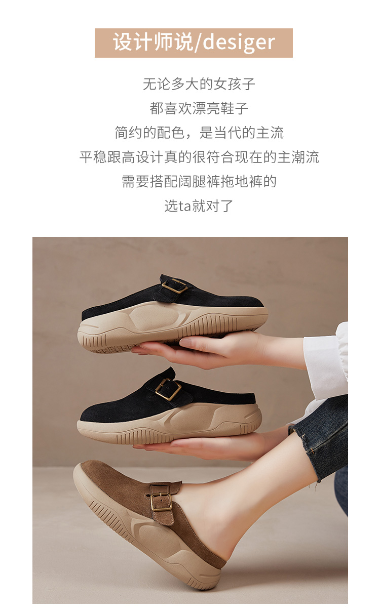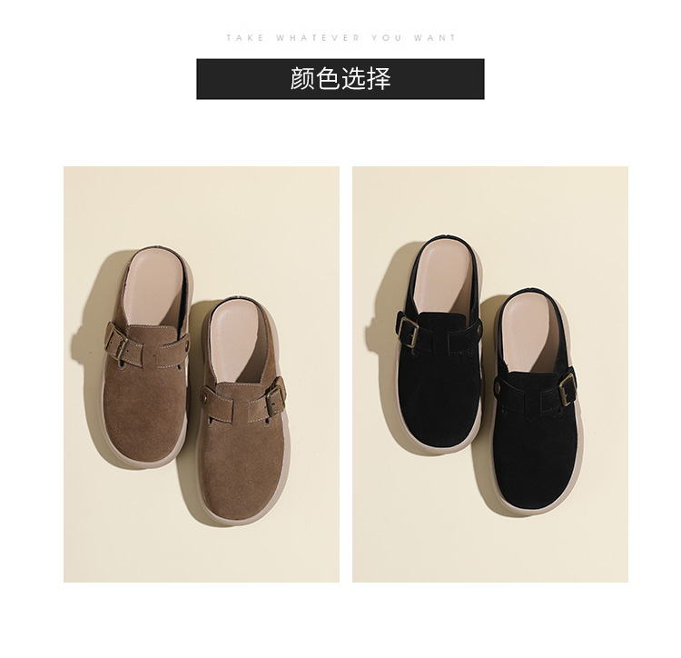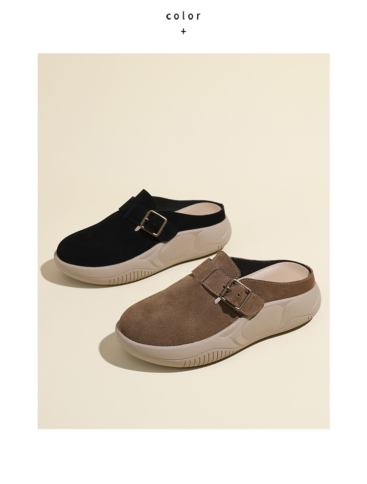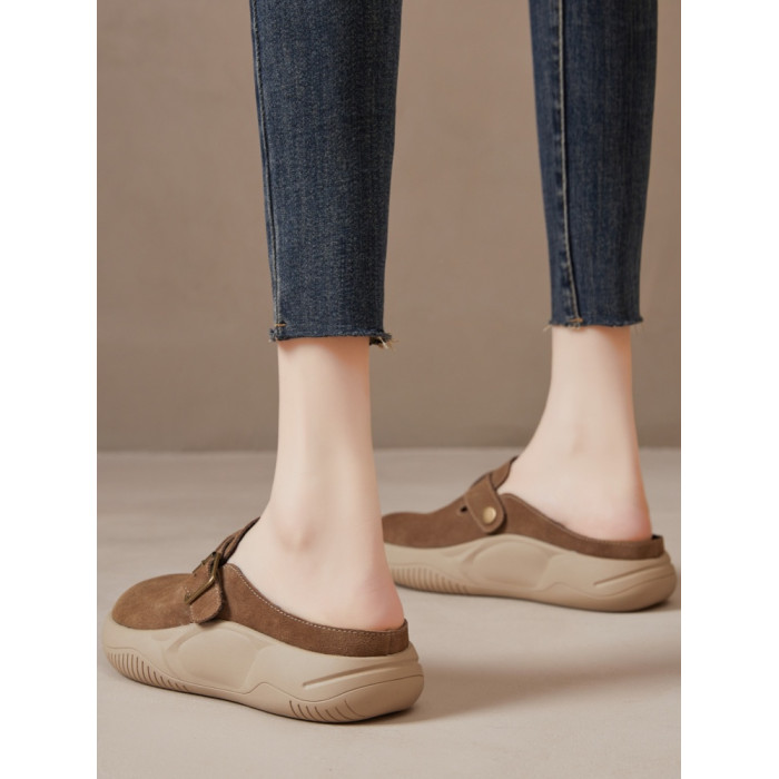 真皮復古厚底包頭半拖鞋女2025春秋新款一腳蹬穆勒鞋軟底博肯鞋子