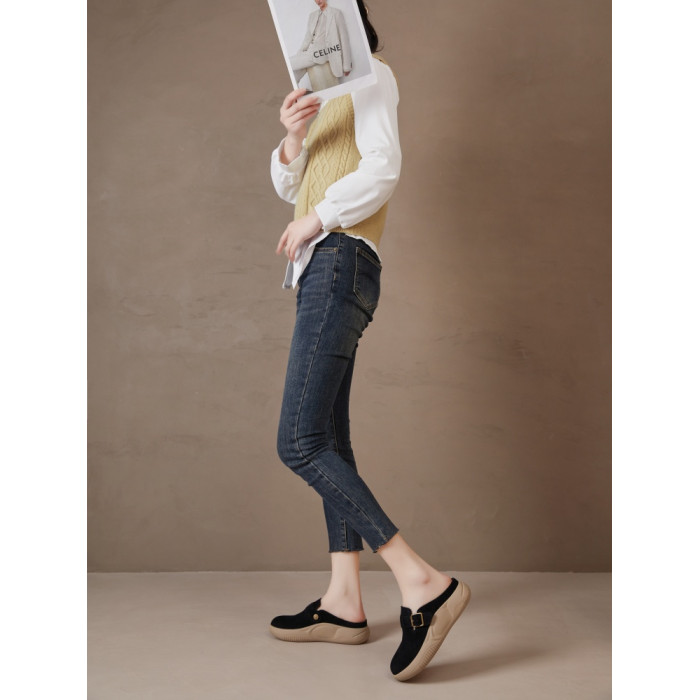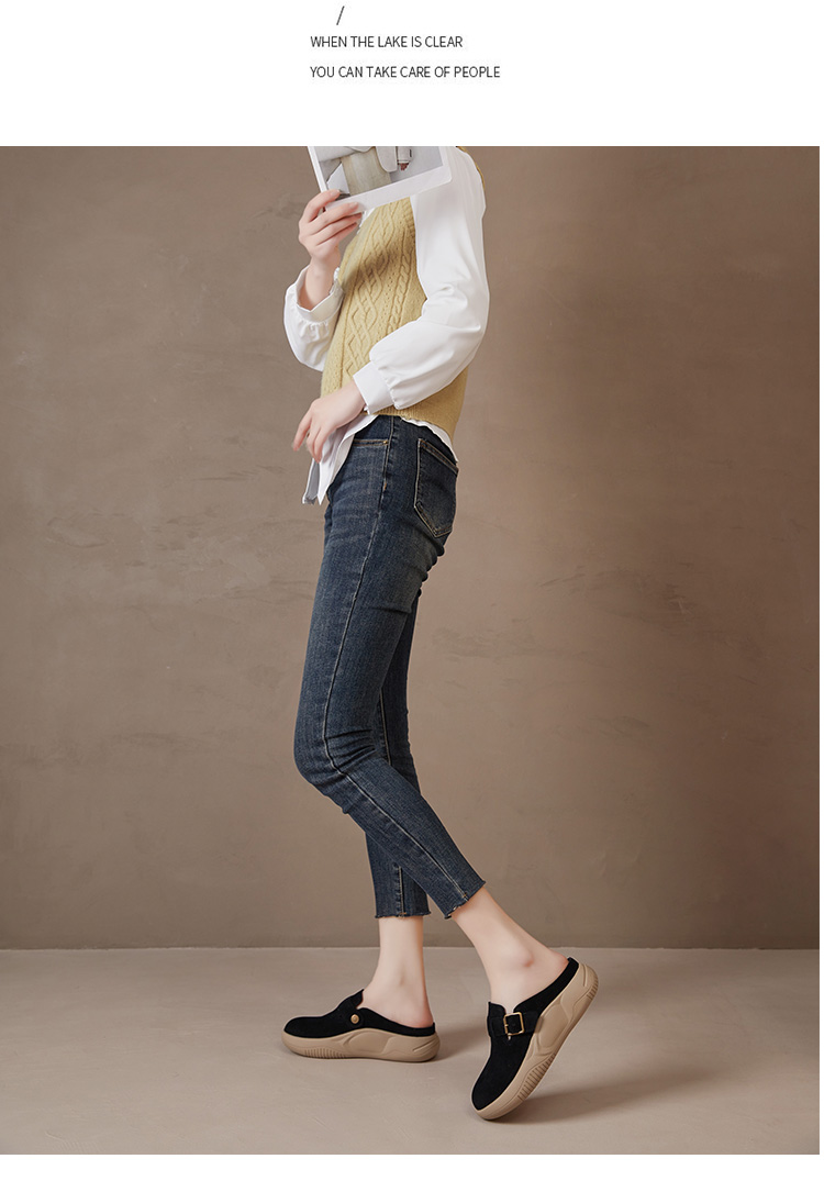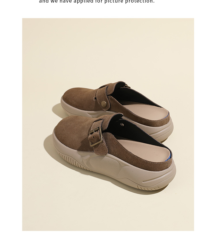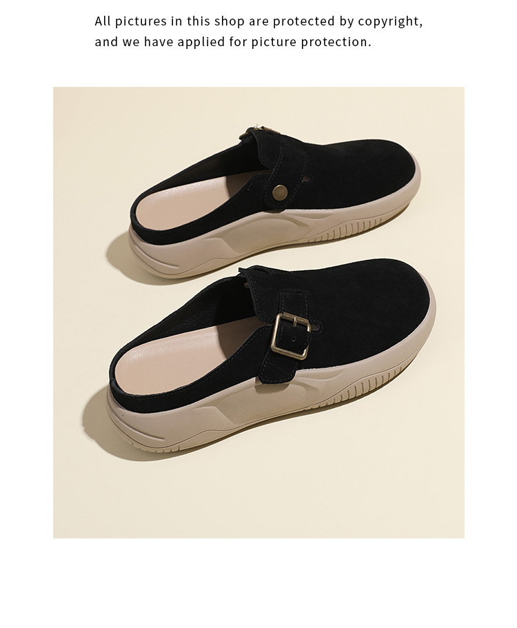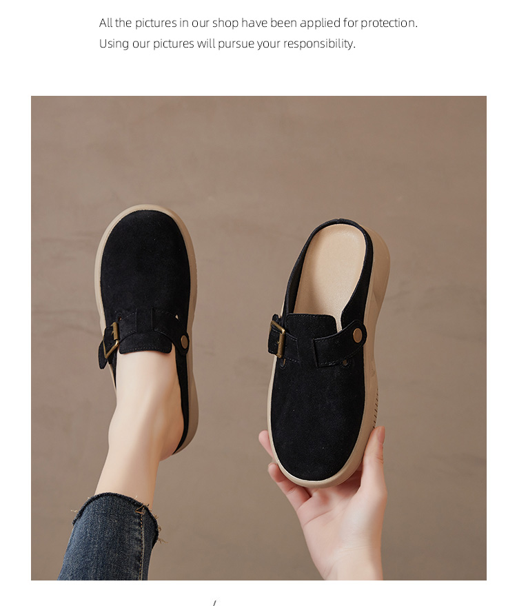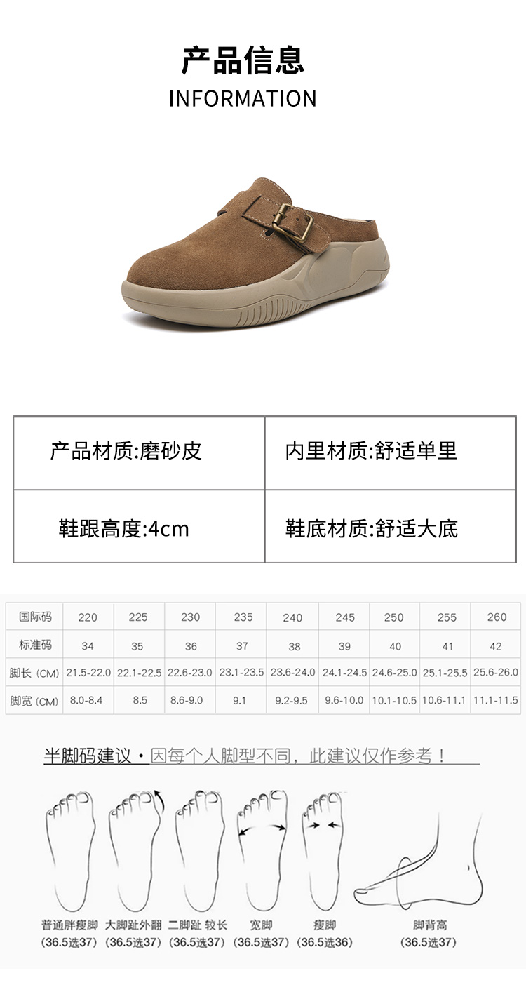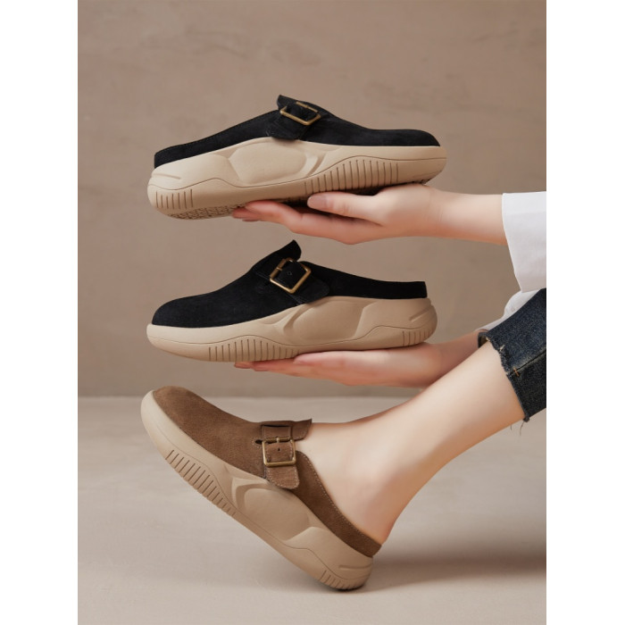 真皮復古厚底包頭半拖鞋女2025春秋新款一腳蹬穆勒鞋軟底博肯鞋子