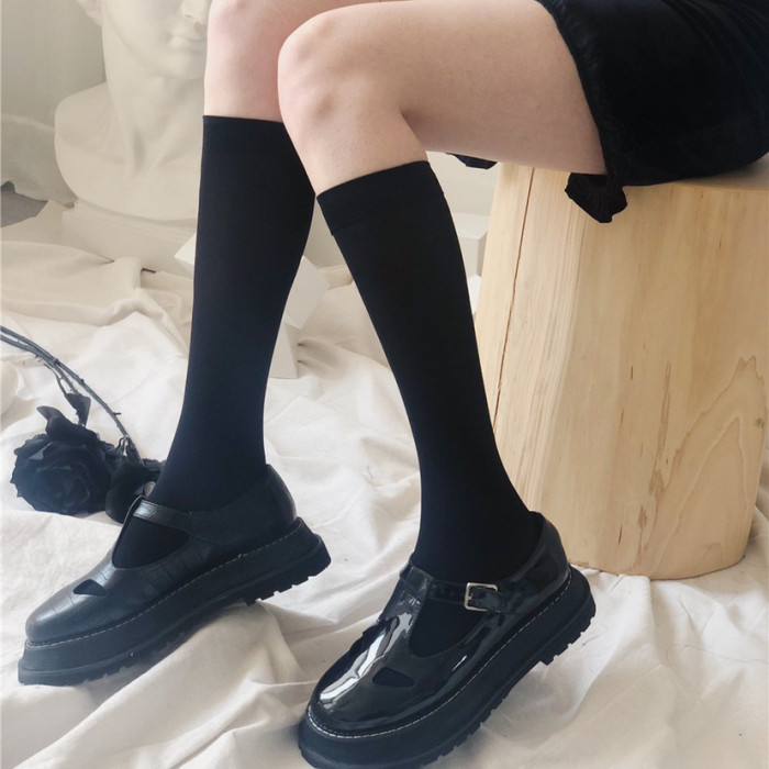 jk小腿過膝中筒薄款半截夏季襪子女黑色夏天長襪天鵞絨瘦腿壓力襪