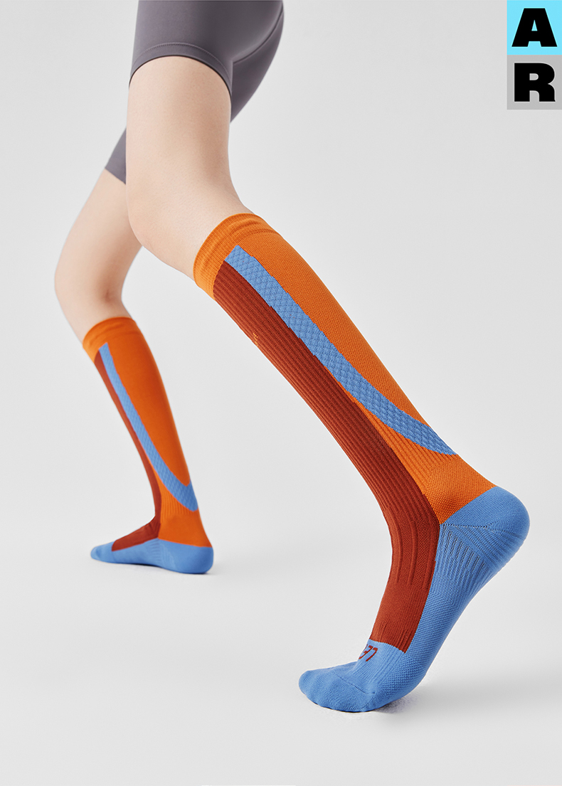 AR萊卡彈力專業運動壓力襪山系戶外徒步登山跑步騎行小腿襪女長襪
