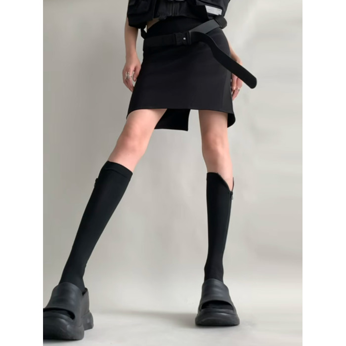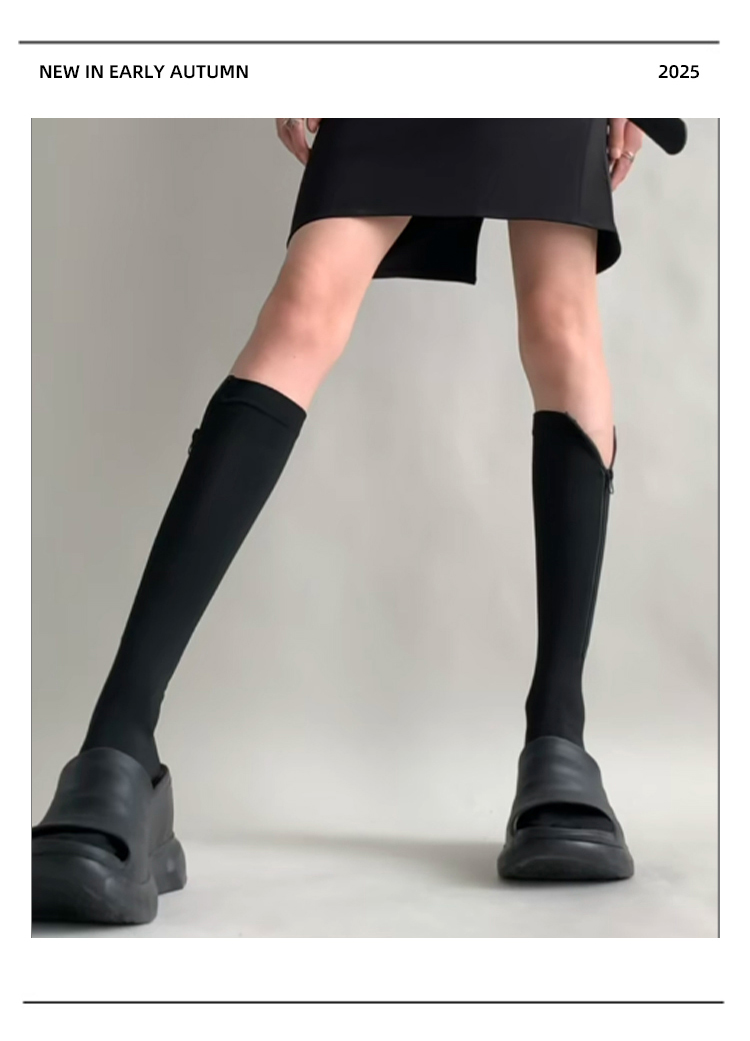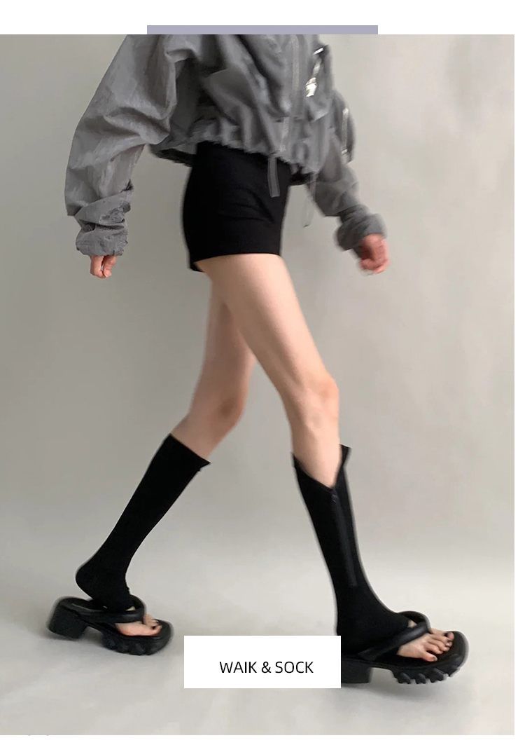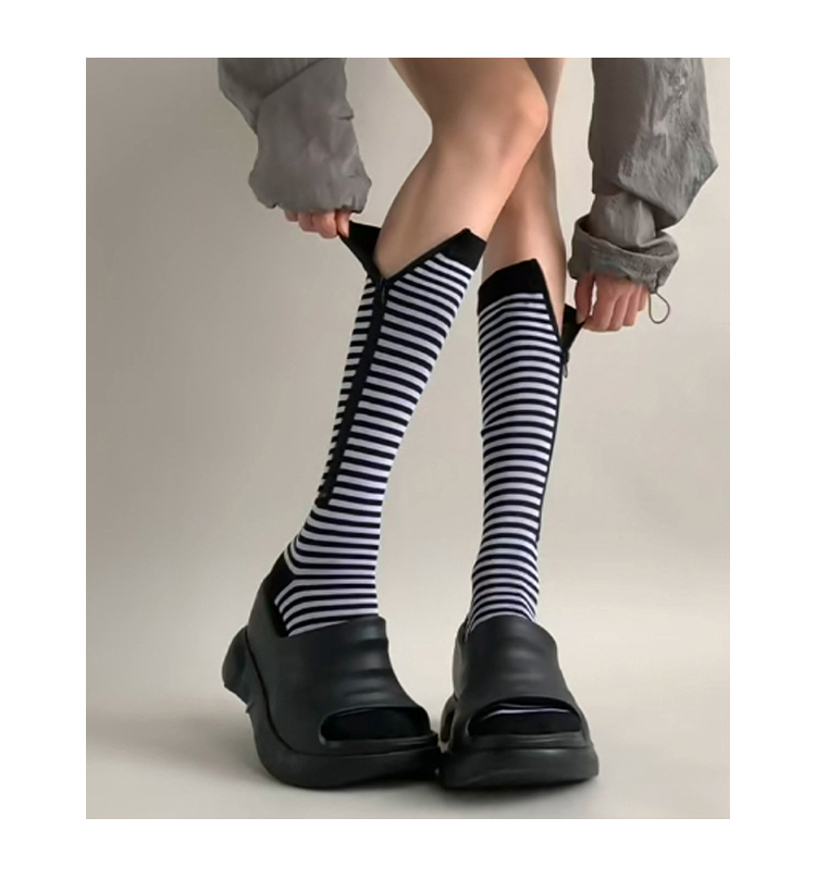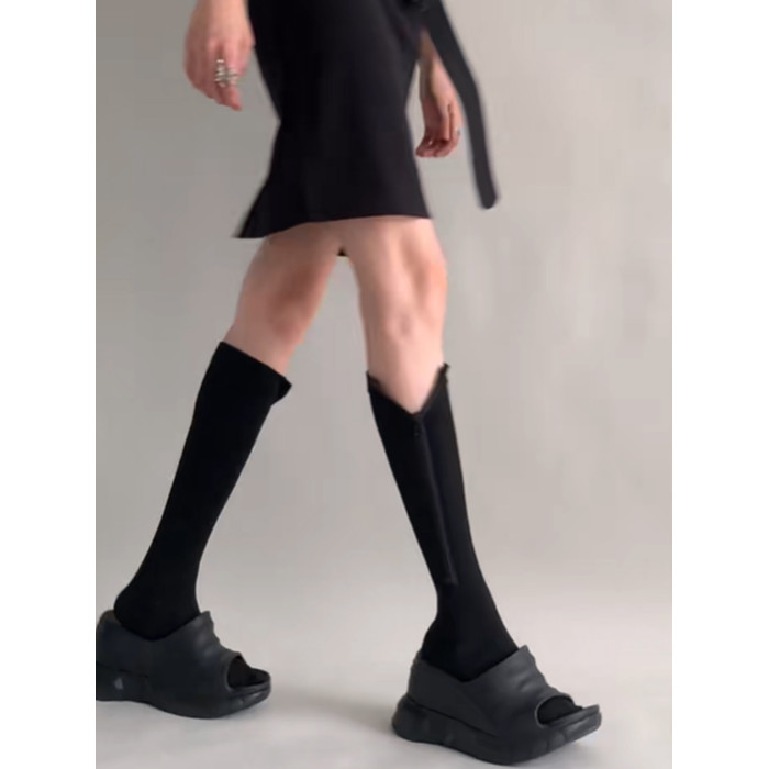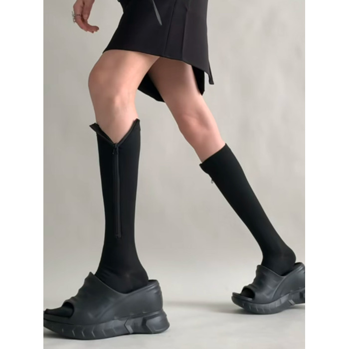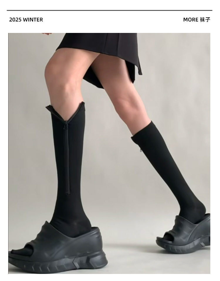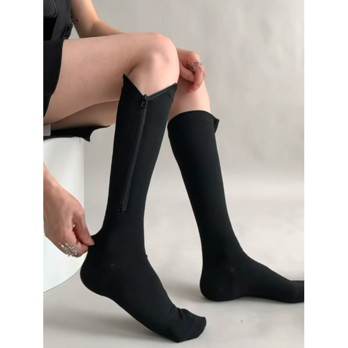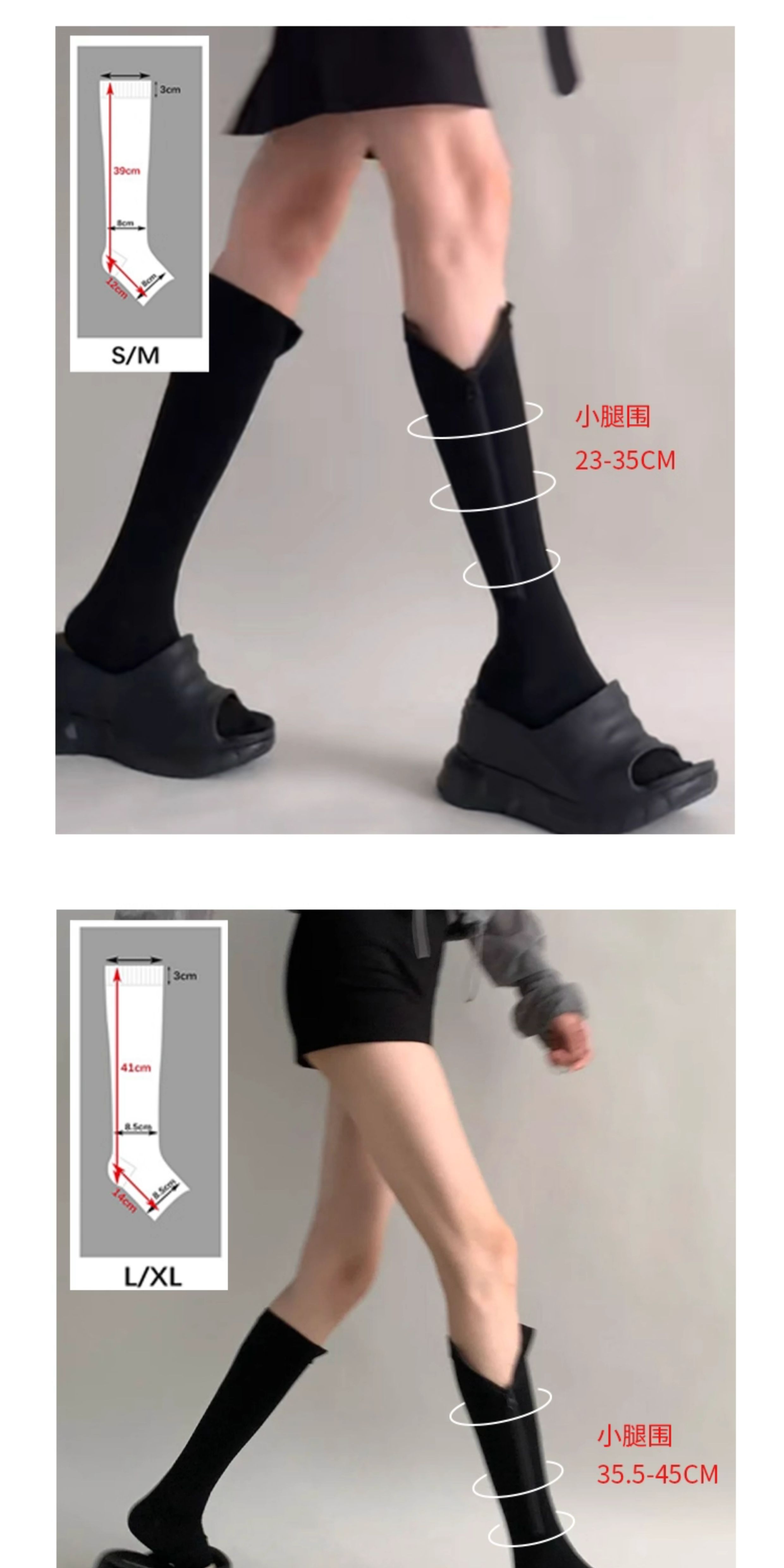 黑色小腿襪子女夏薄款長筒襪騎行壓力襪夏季女士長襪側邊拉鍊襪子