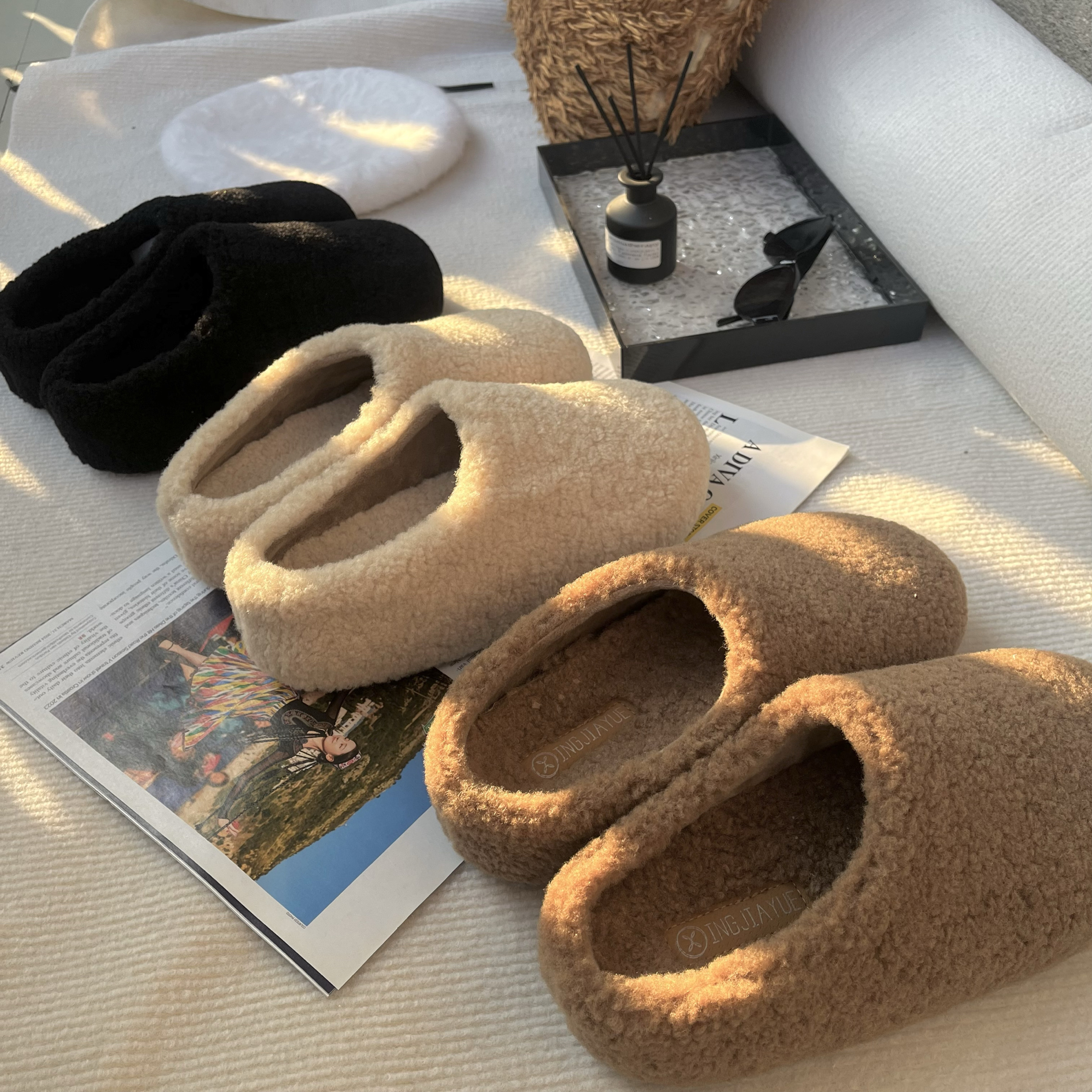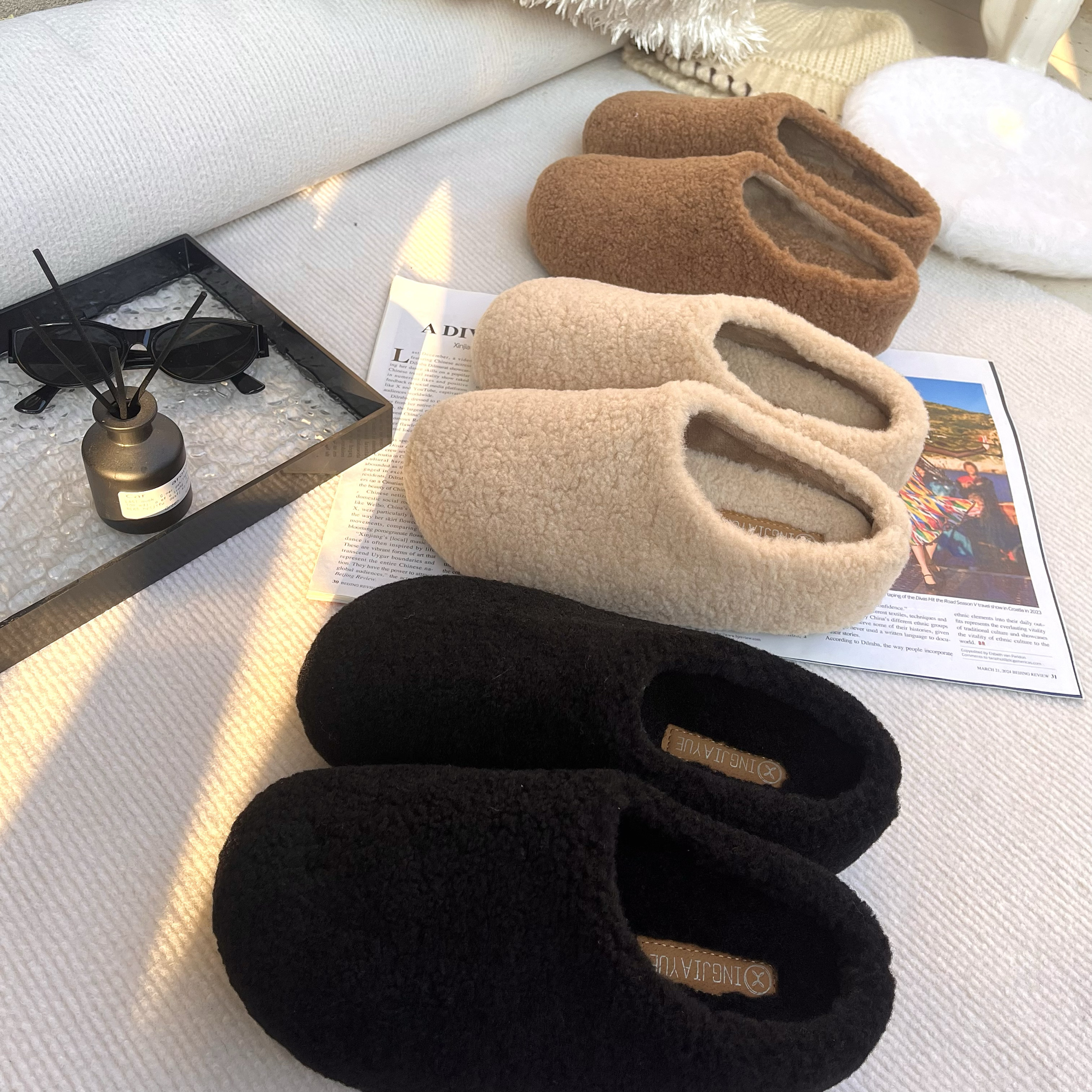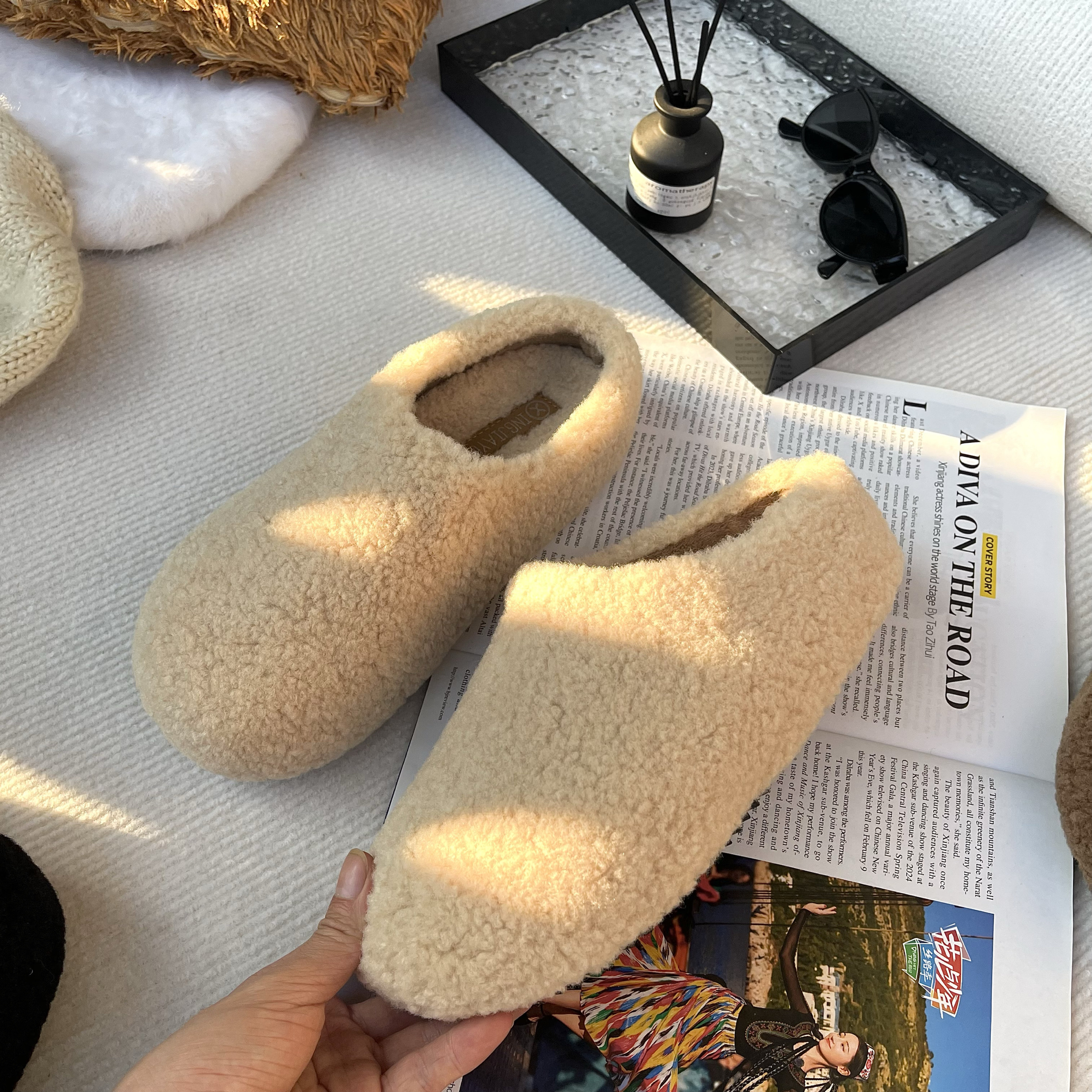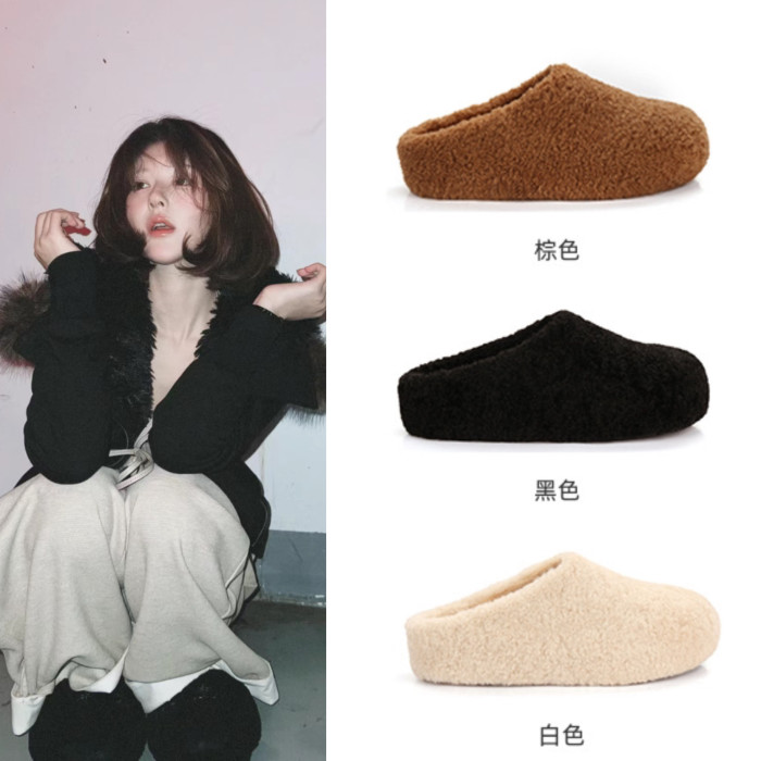 趙露思同款羊羔毛包頭半拖鞋時尚外穿秋冬厚底一腳蹬毛毛鞋勃肯鞋