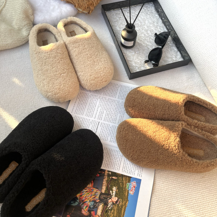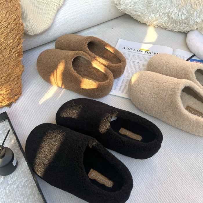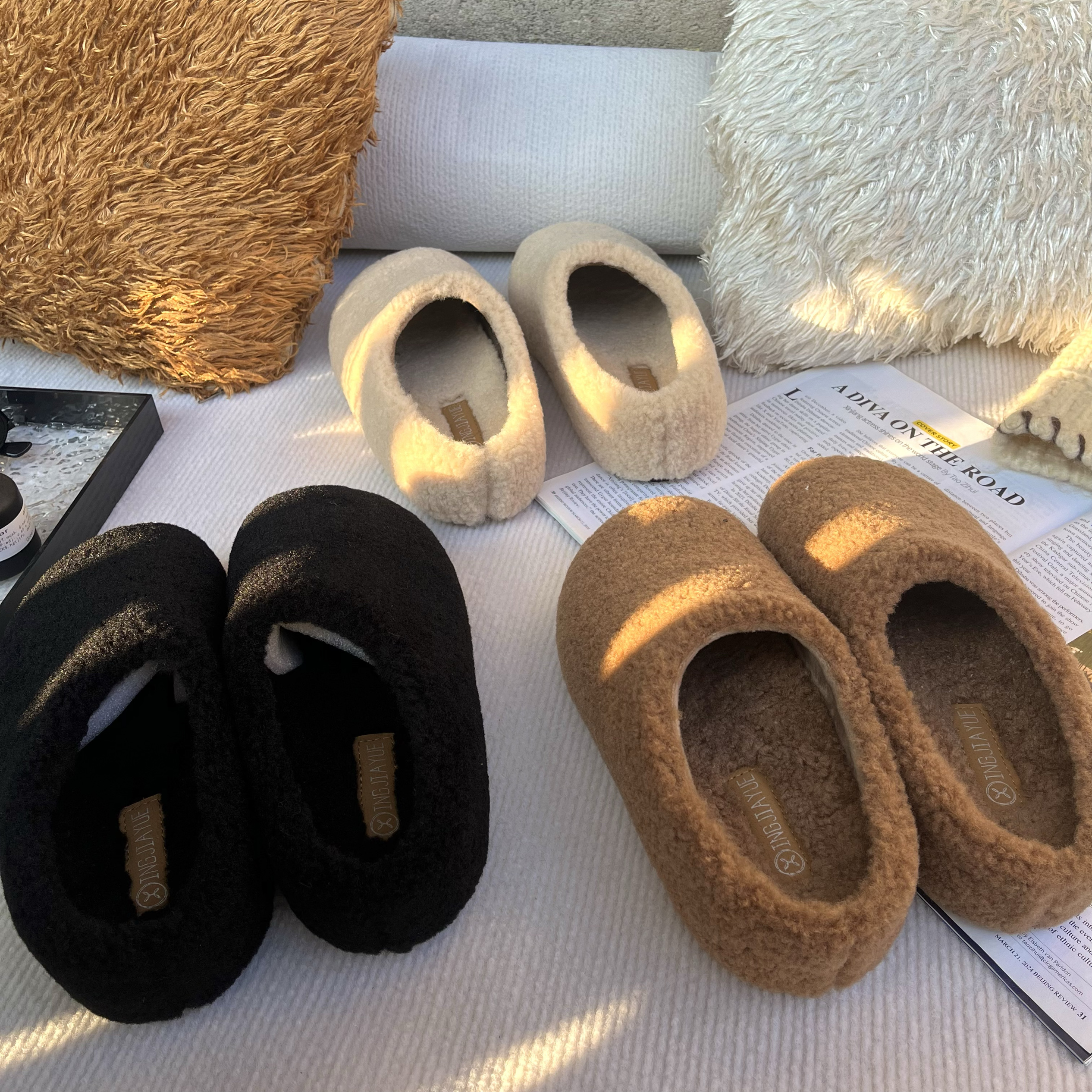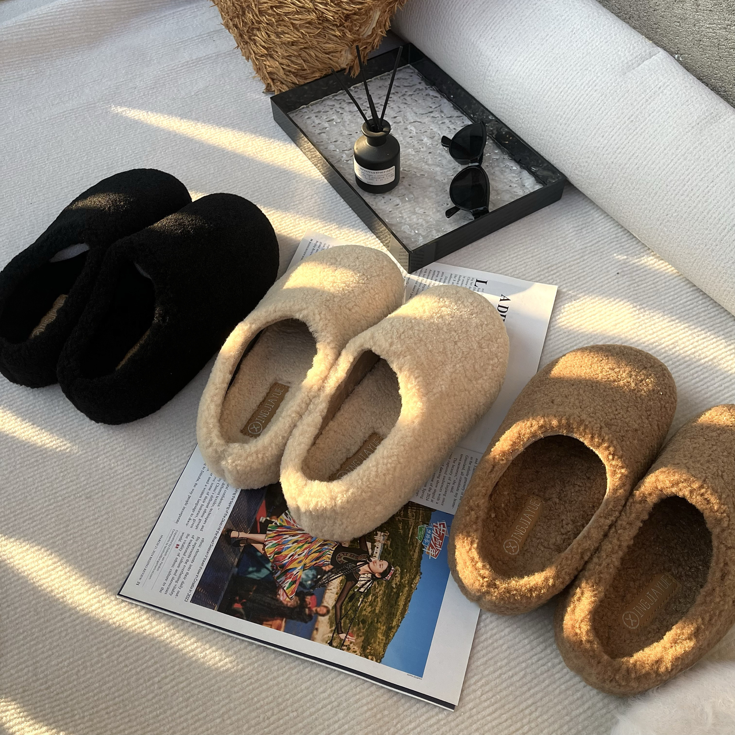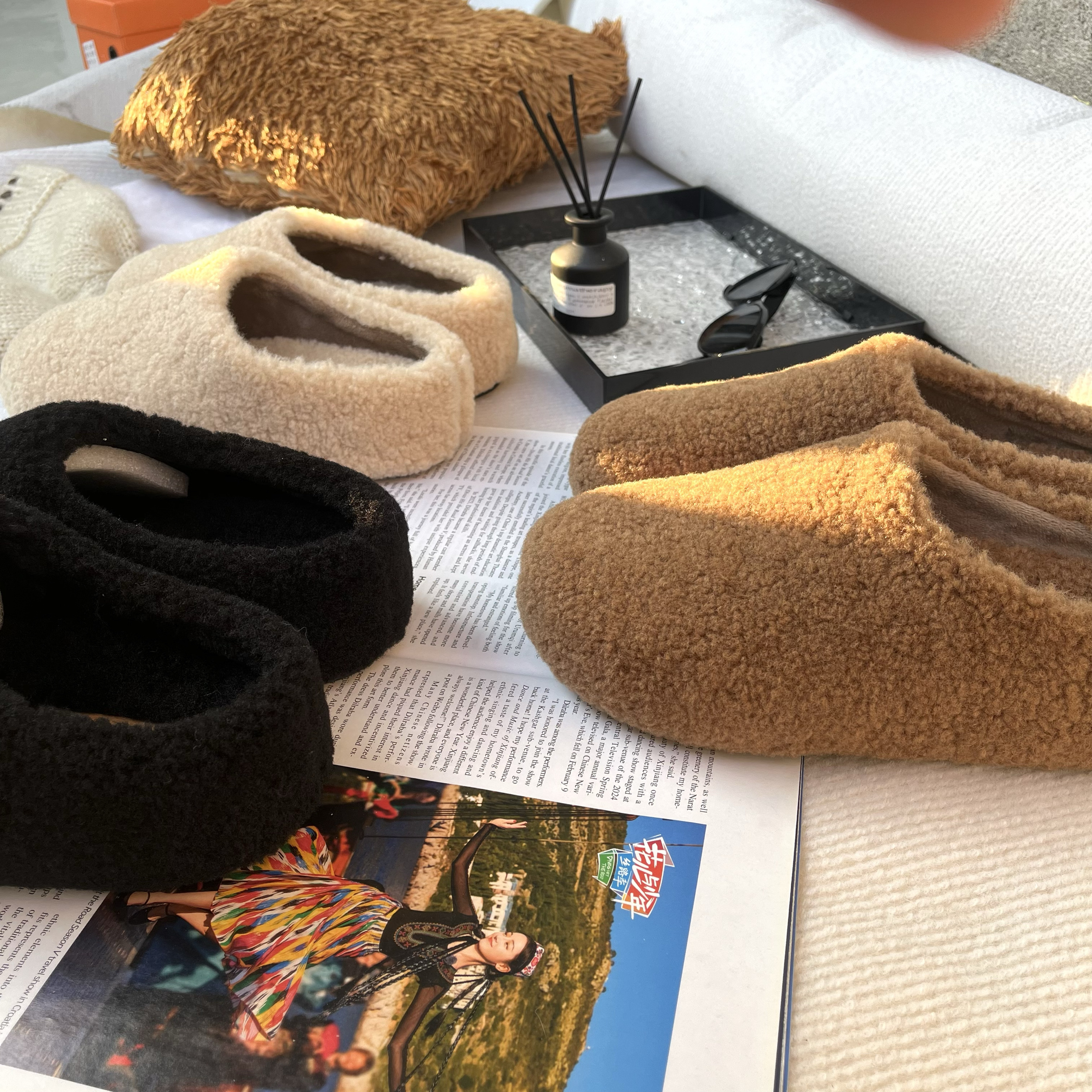 趙露思同款羊羔毛包頭半拖鞋時尚外穿秋冬厚底一腳蹬毛毛鞋勃肯鞋