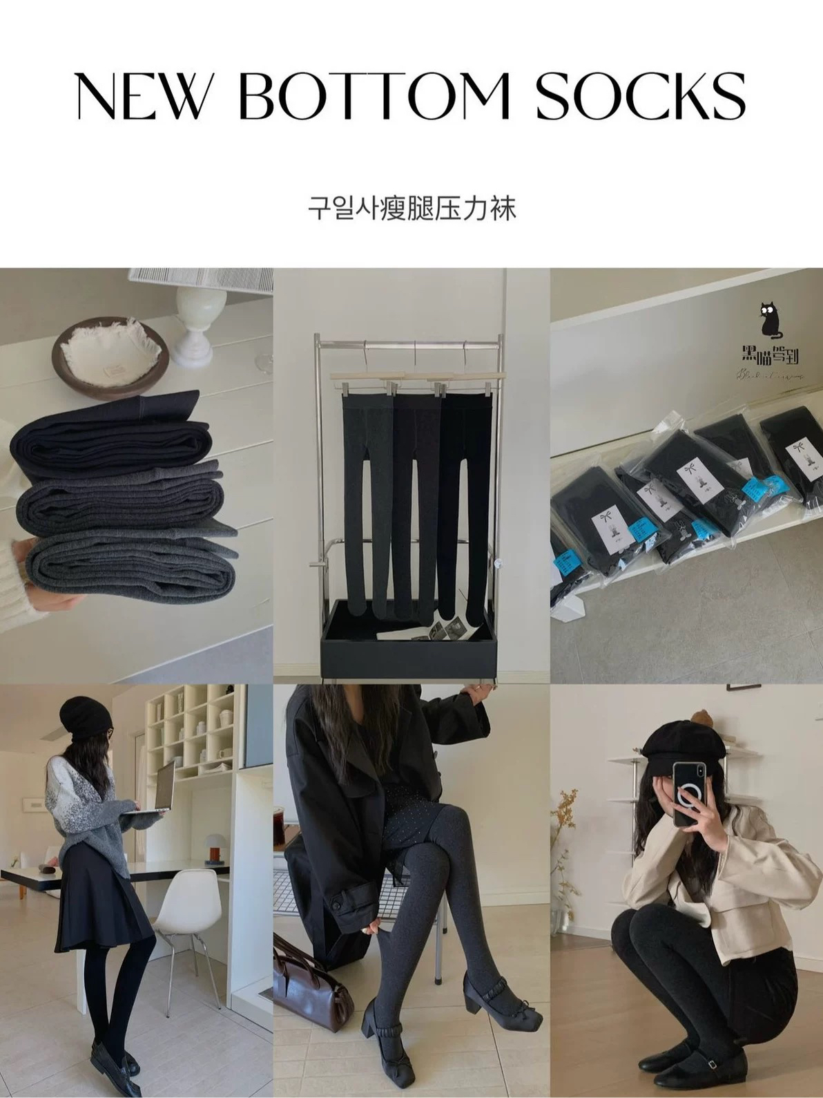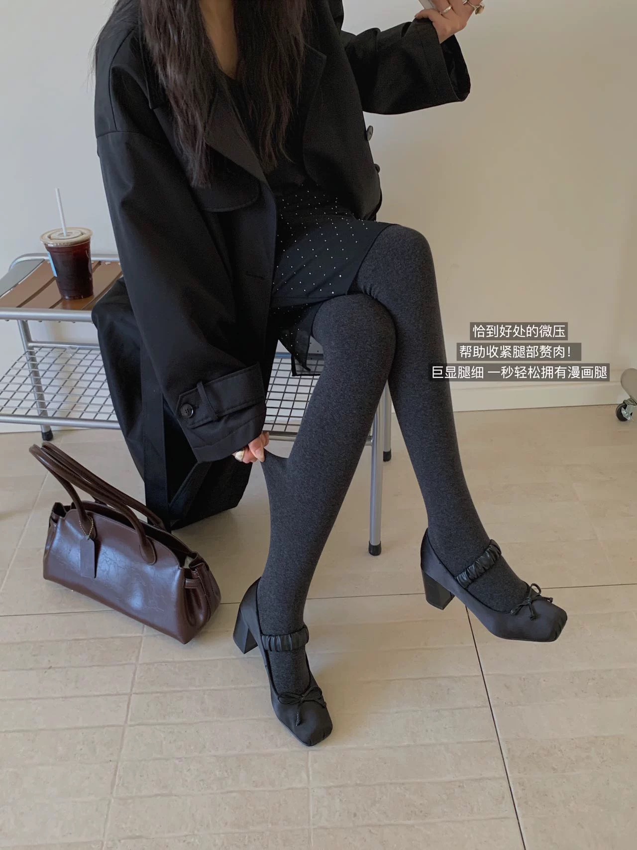 黑喵駕到518顯瘦腿壓力襪系灰色薄絨平板斜紋高腰連褲襪200克