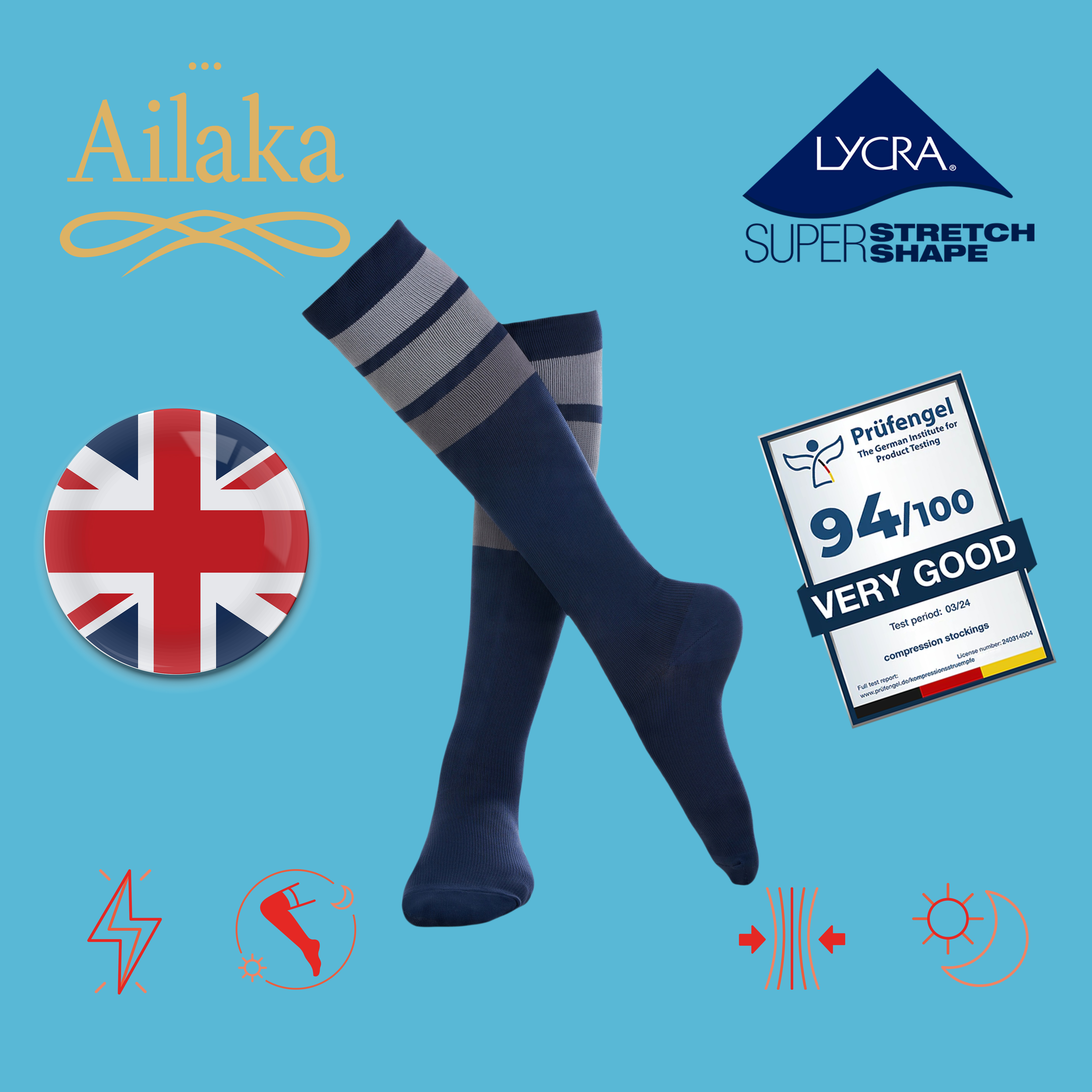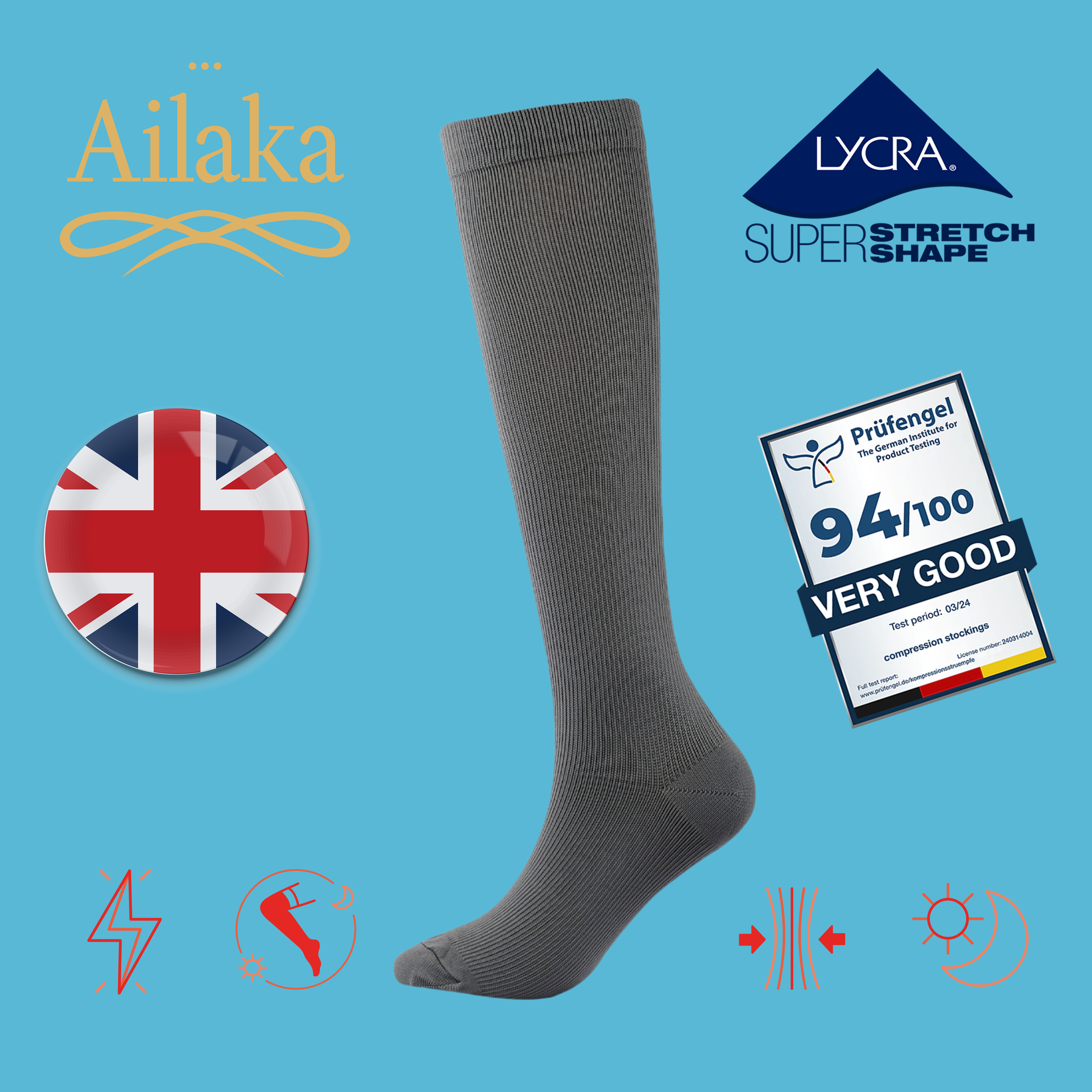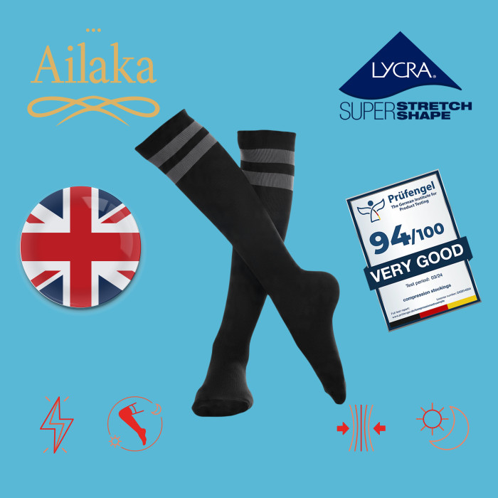 Ailaka英國長途飛行專用梯度壓力襪緩解腿部疲勞彈力襪航空旅行襪