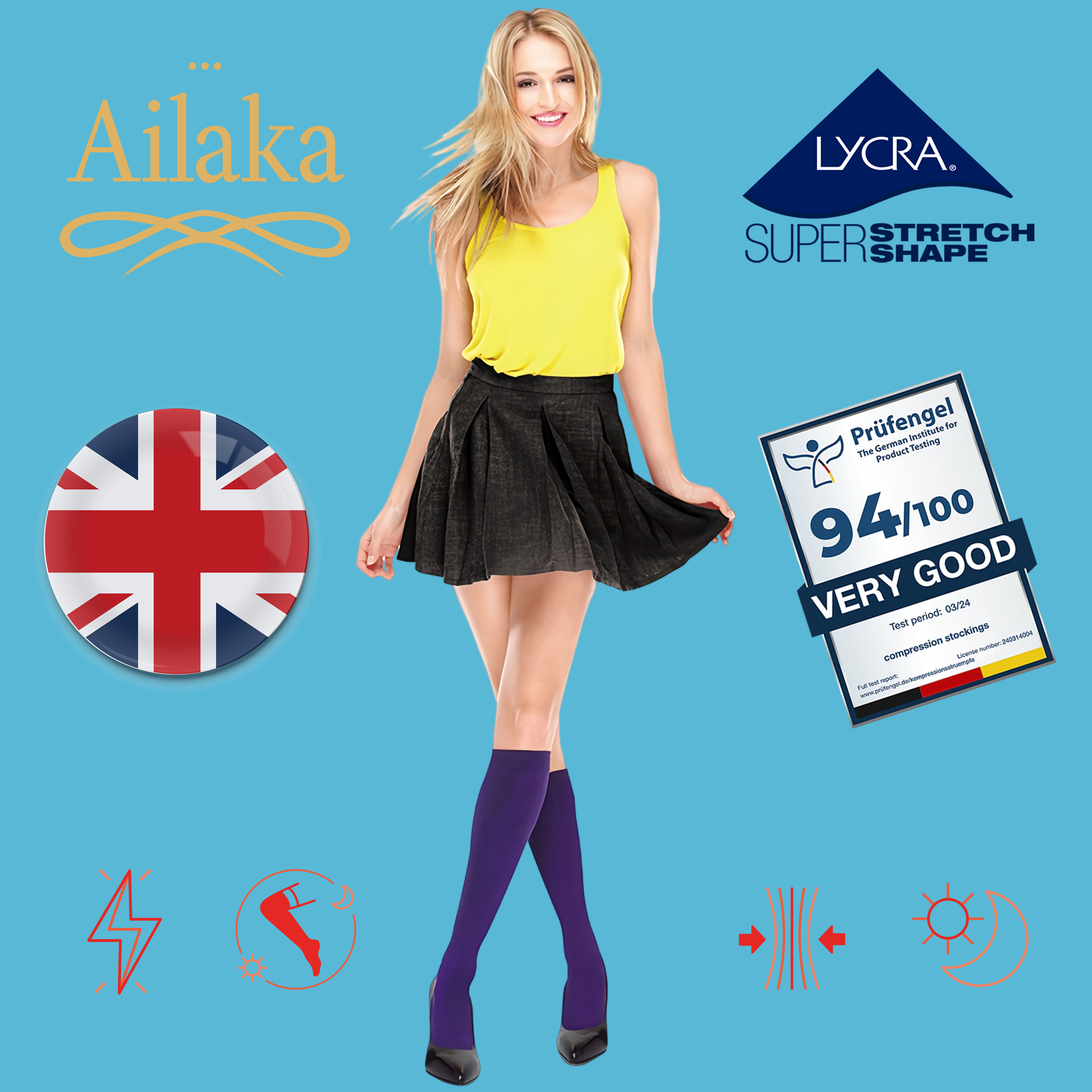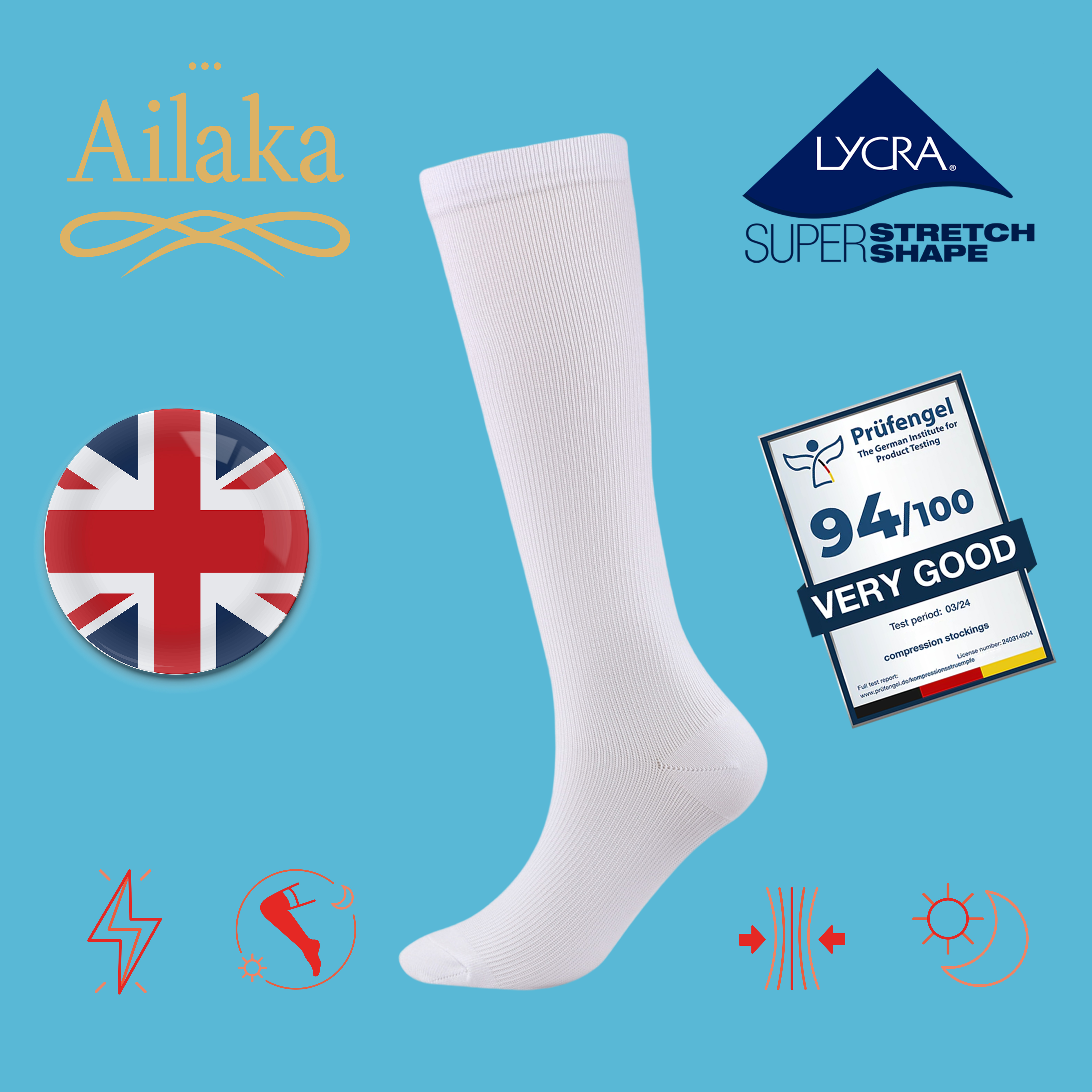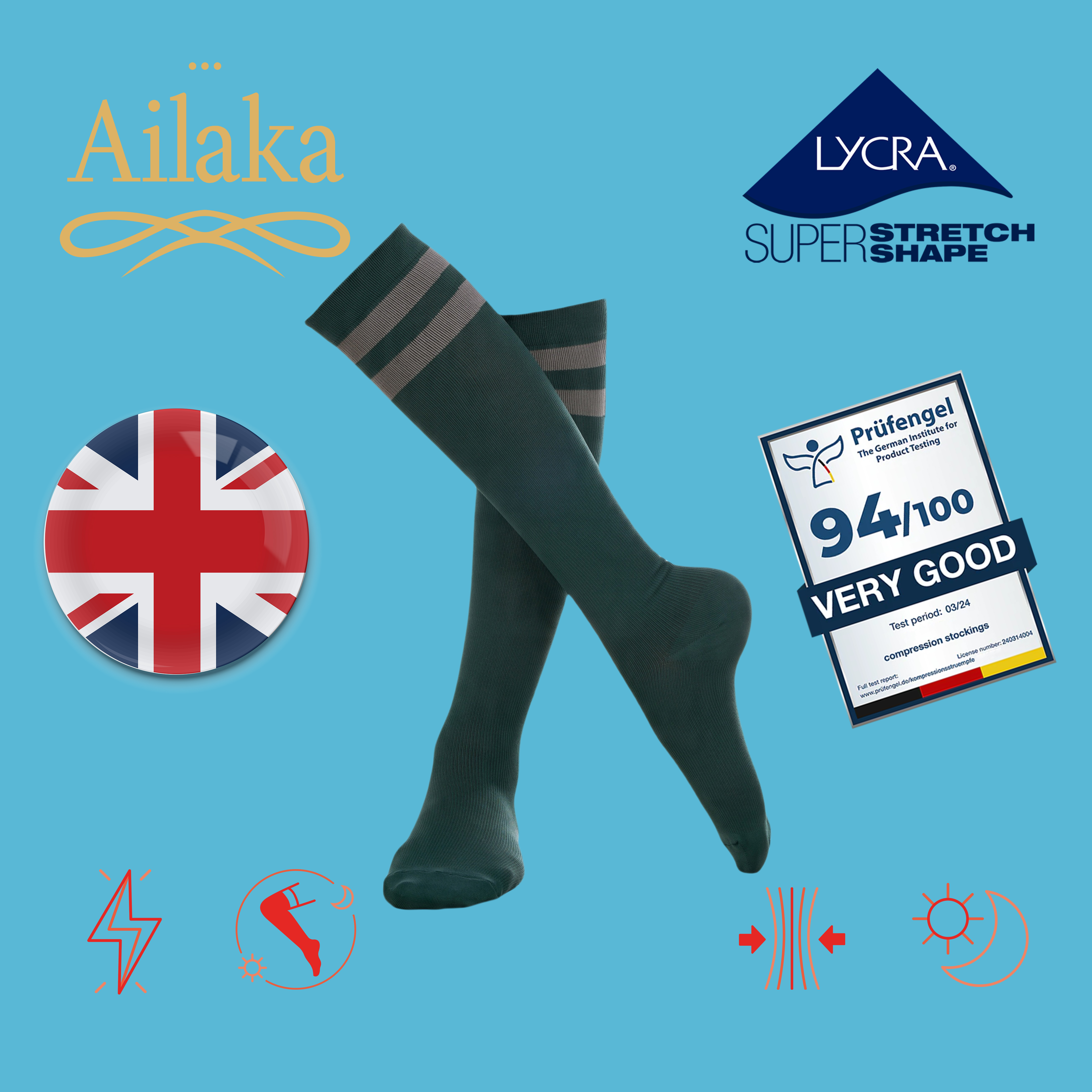 Ailaka英國長途飛行專用梯度壓力襪緩解腿部疲勞彈力襪航空旅行襪