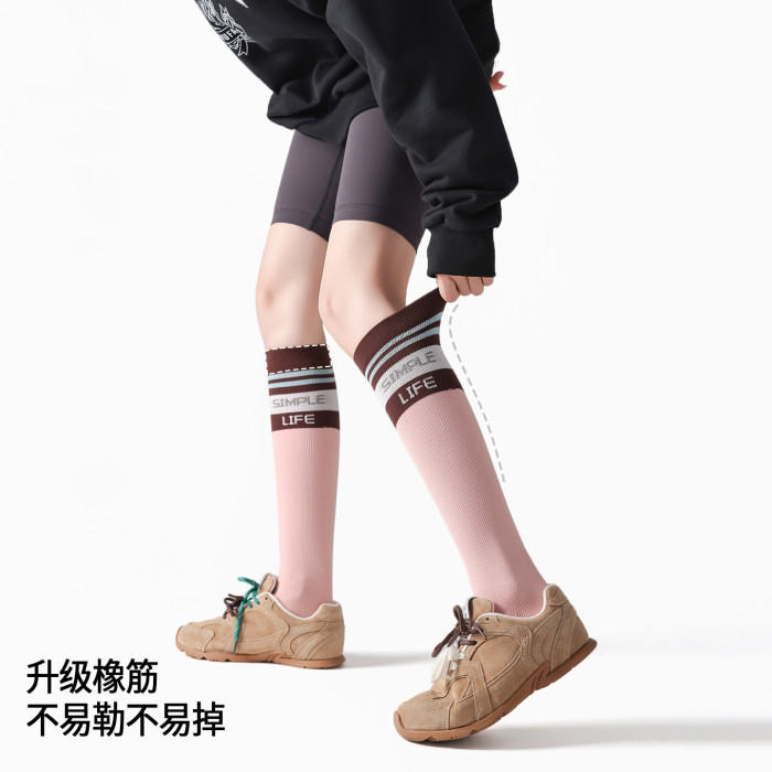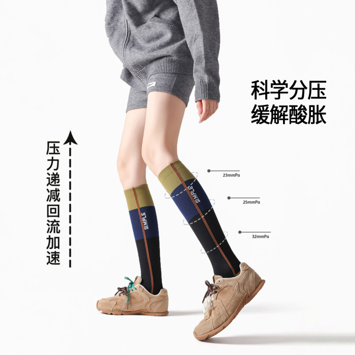 運動壓力襪加壓小腿襪騎行襪跑步壓縮襪登山襪徒步女灰色襪子