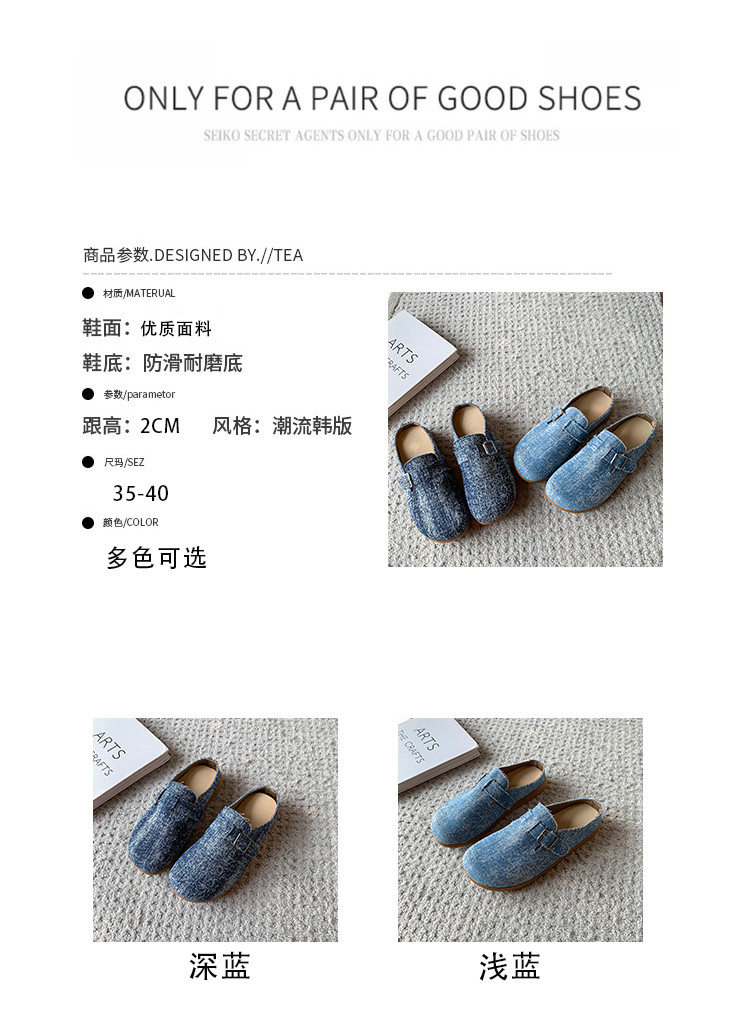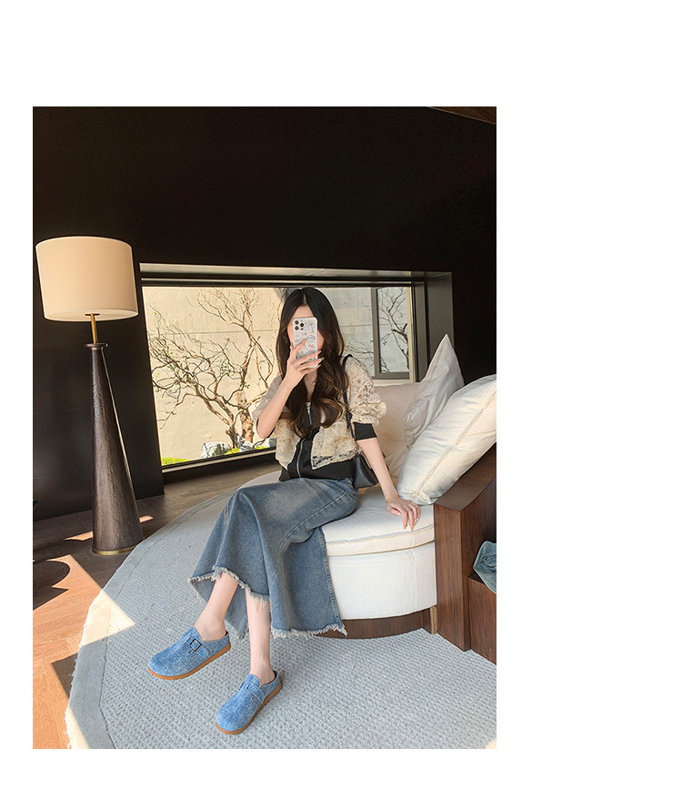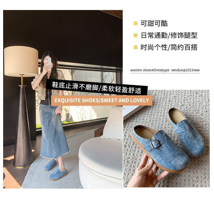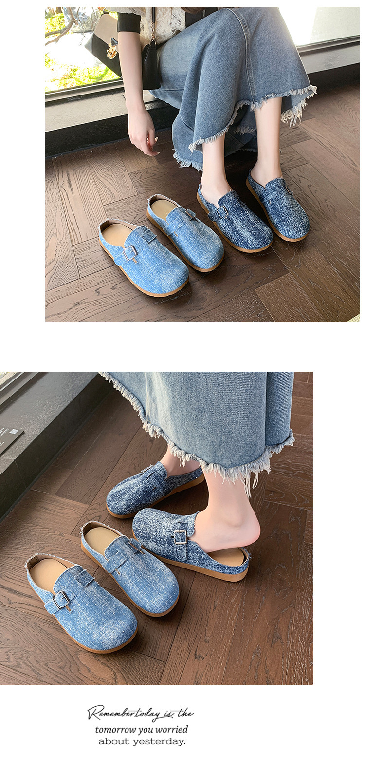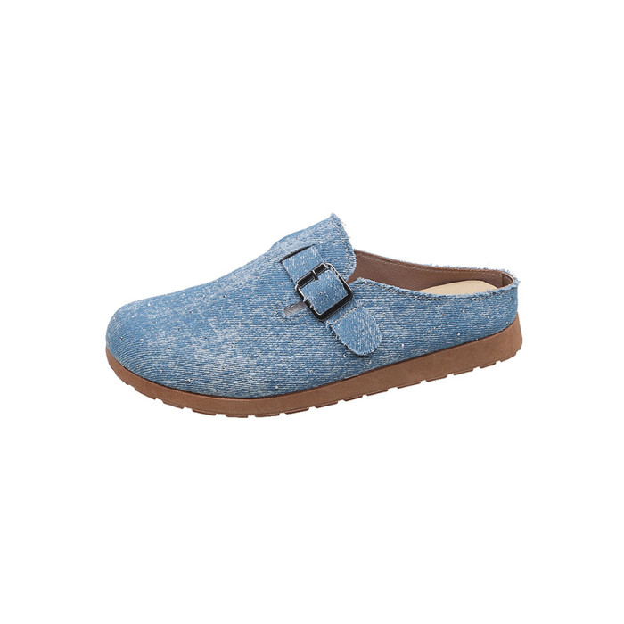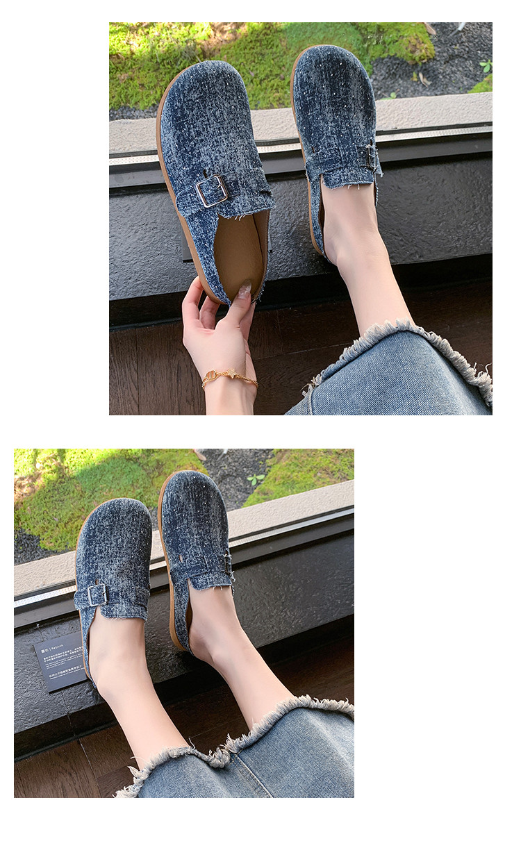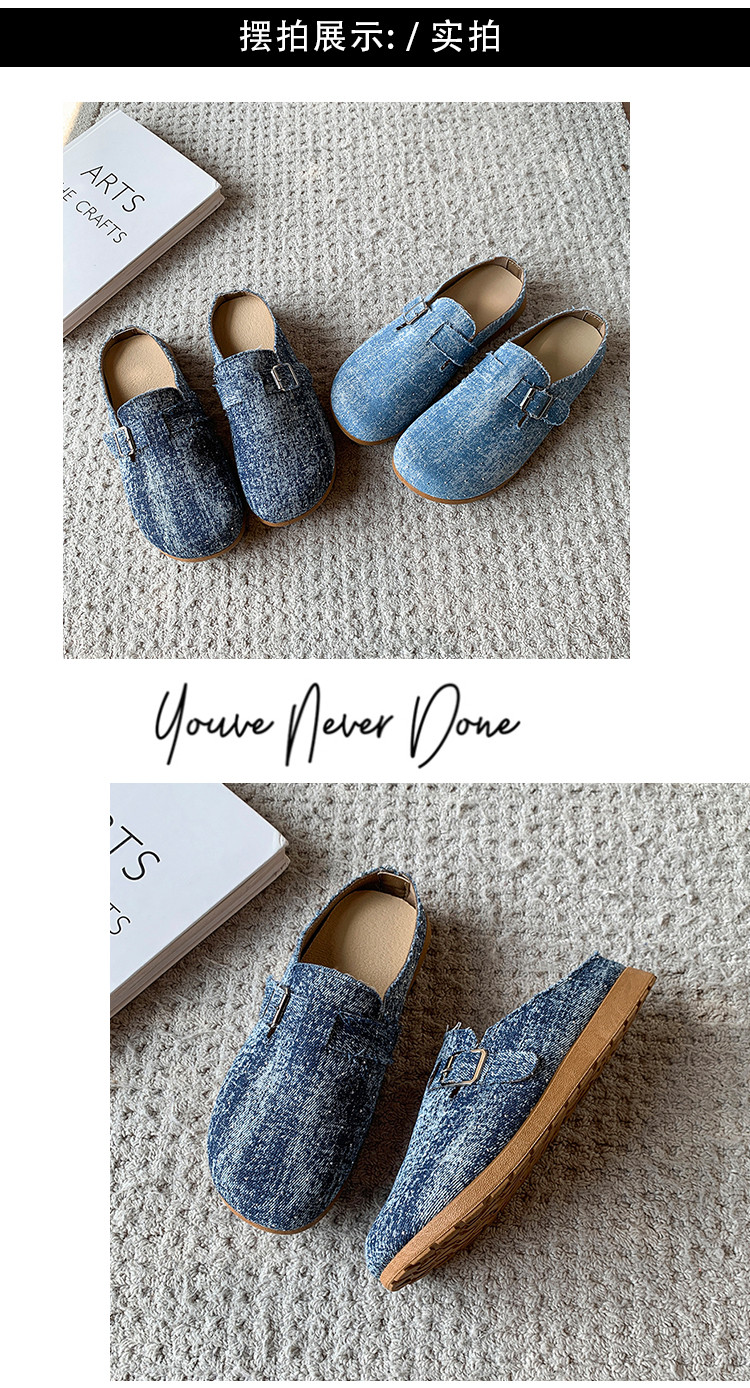 復古森系軟木底勃肯鞋懶人一腳蹬牛仔布包頭半拖鞋女外穿後空涼拖