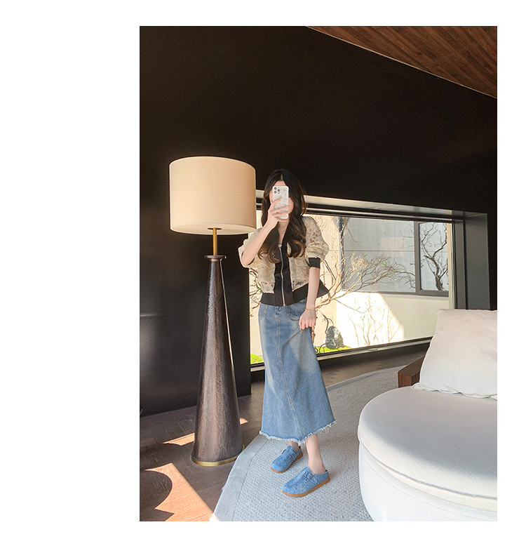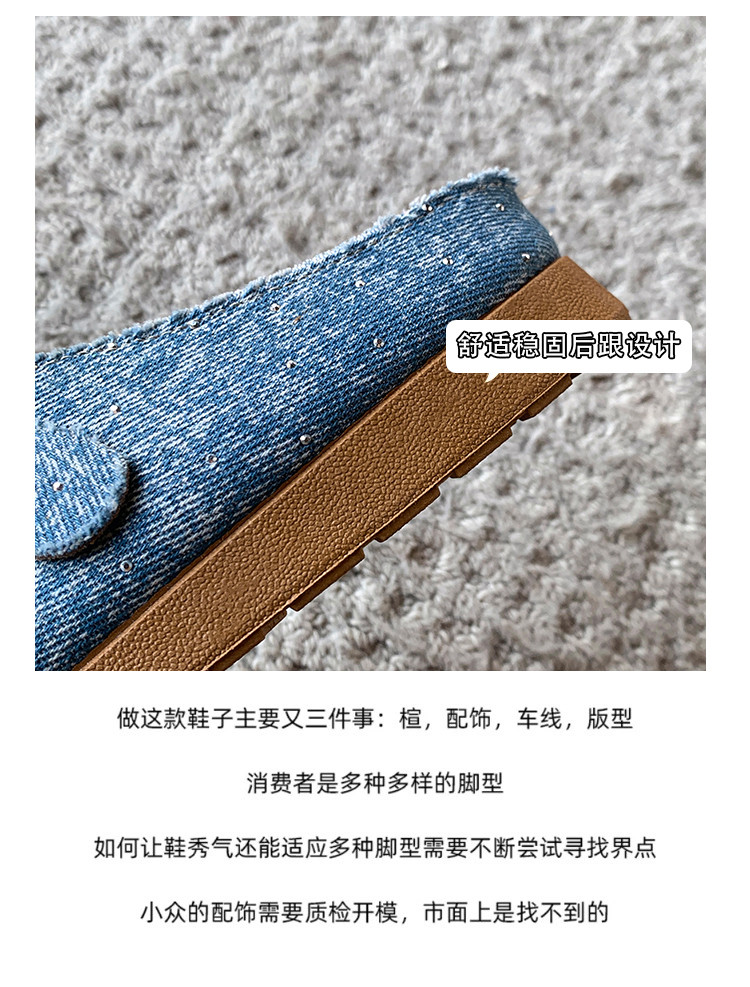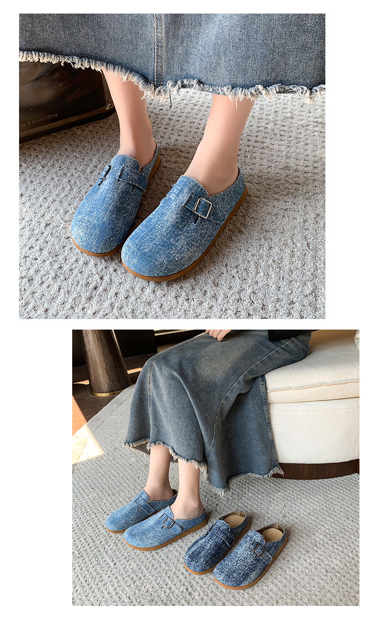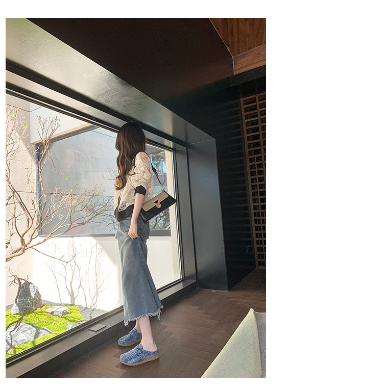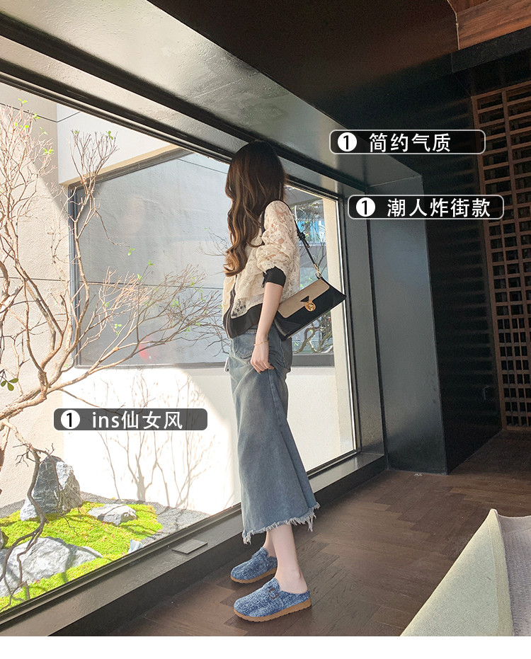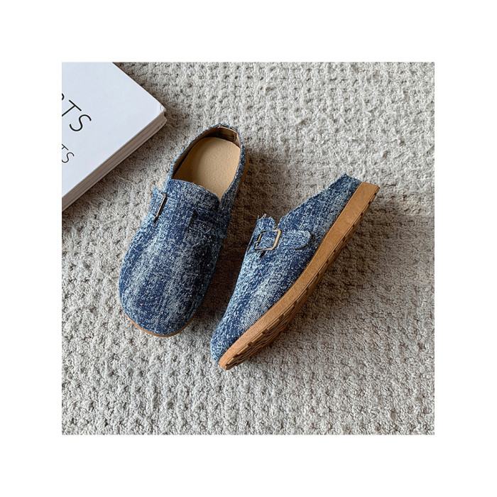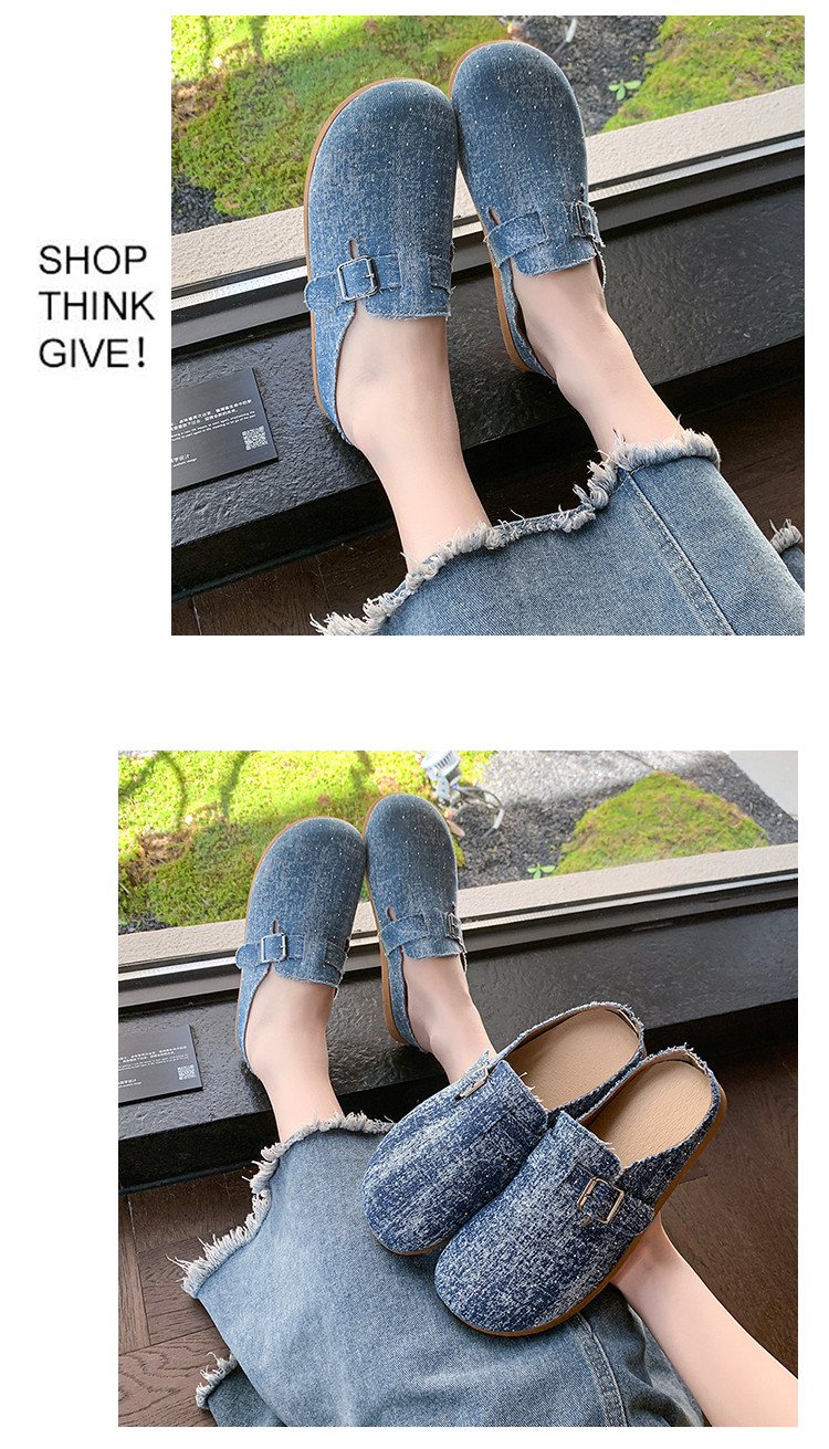 復古森系軟木底勃肯鞋懶人一腳蹬牛仔布包頭半拖鞋女外穿後空涼拖