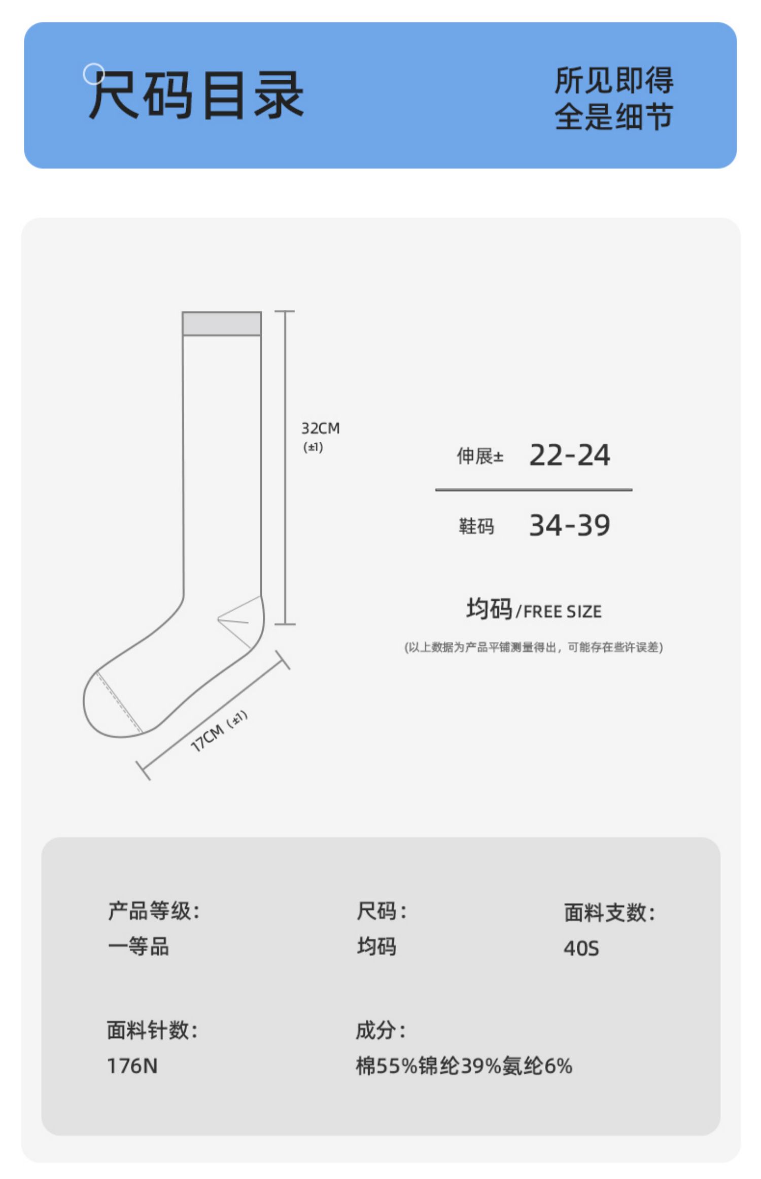 | 面料材質成分 | 棉55% 聚醯胺纖維(錦綸)39% 聚氨酯彈性纖維(氨綸)6% |