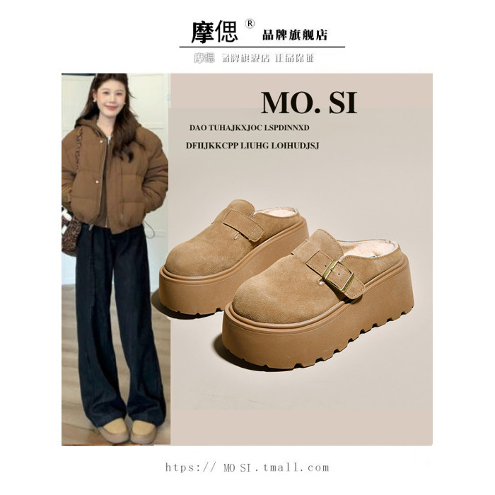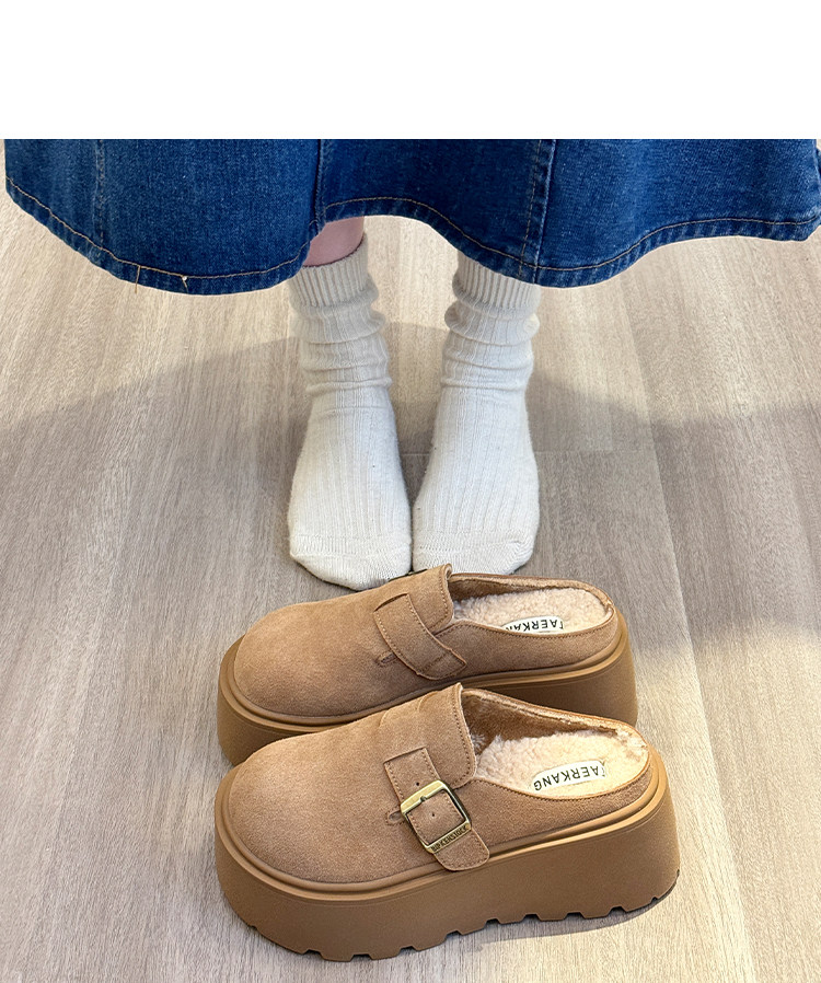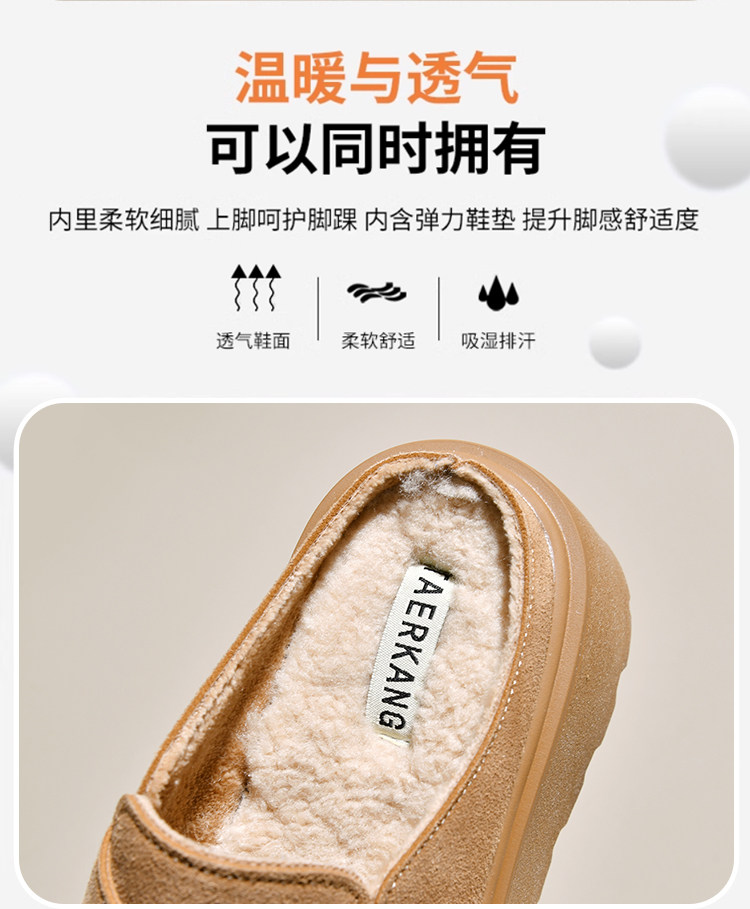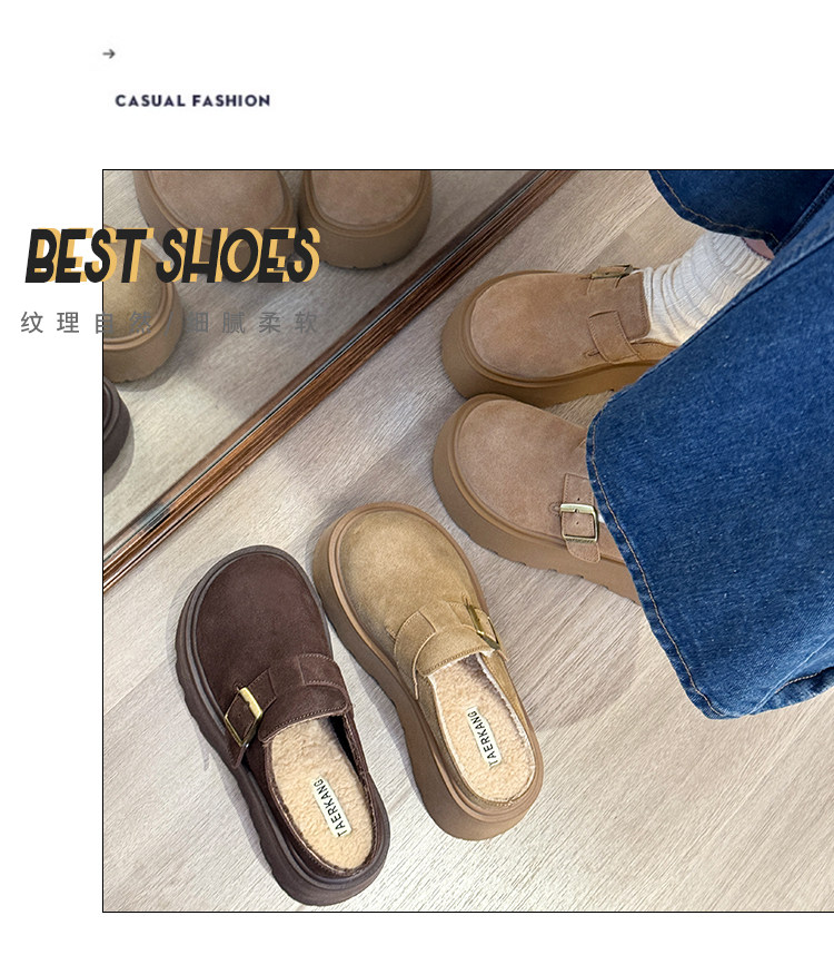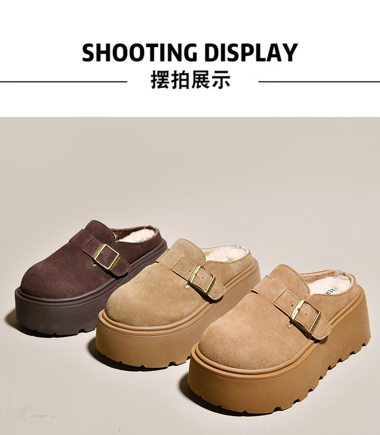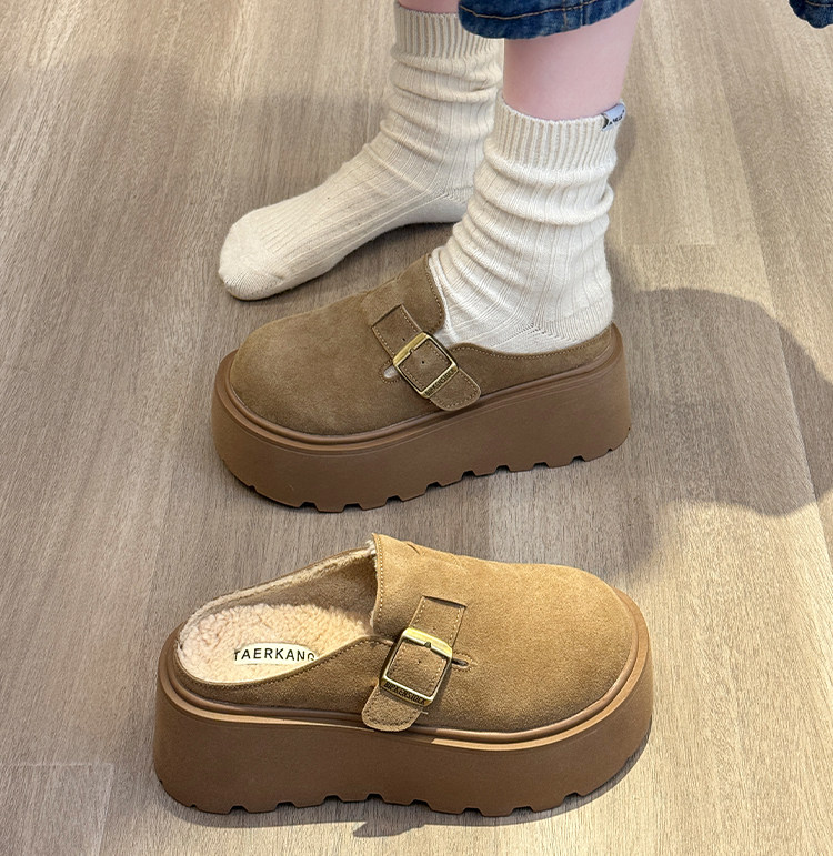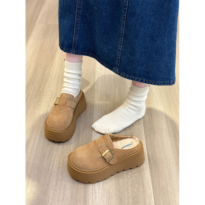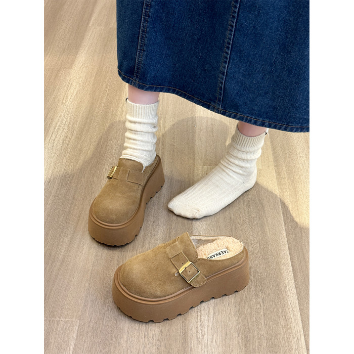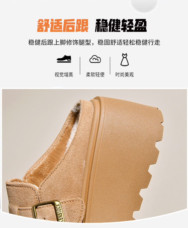 真皮厚底增高勃肯鞋女毛毛棉拖鞋外穿2025新款雪地靴加絨包頭半拖