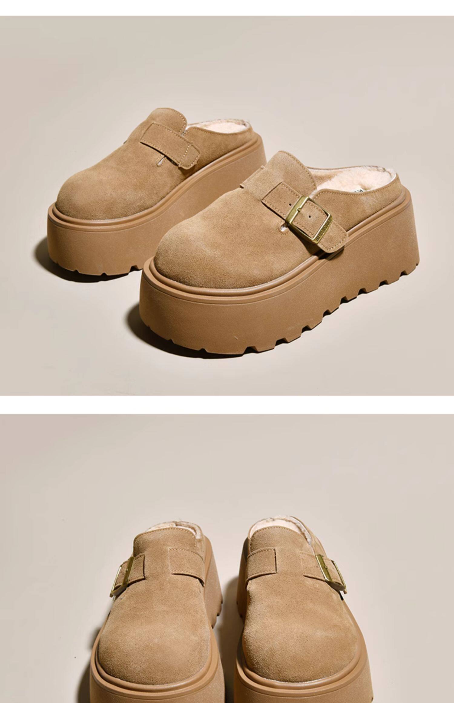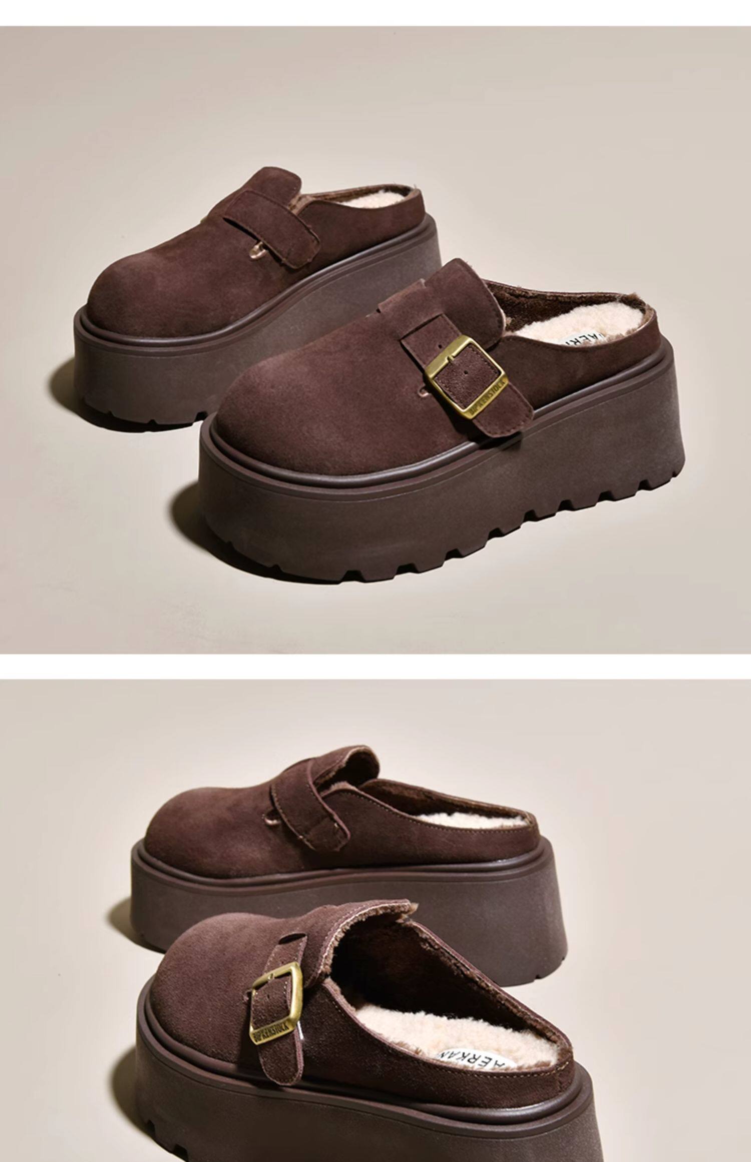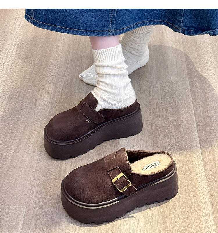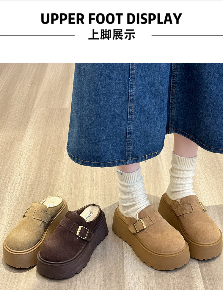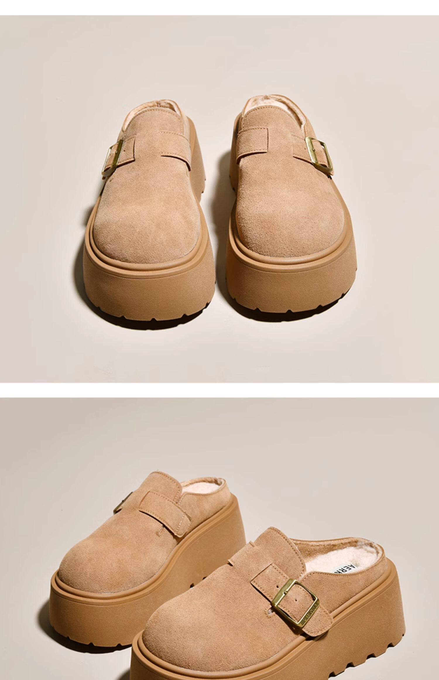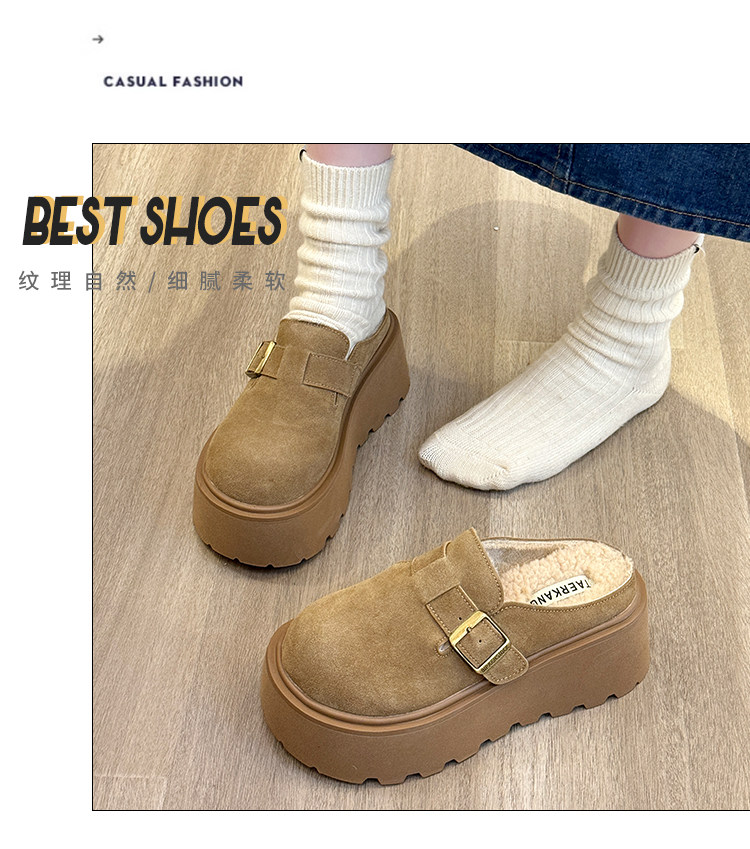 真皮厚底增高勃肯鞋女毛毛棉拖鞋外穿2025新款雪地靴加絨包頭半拖