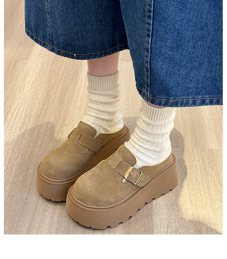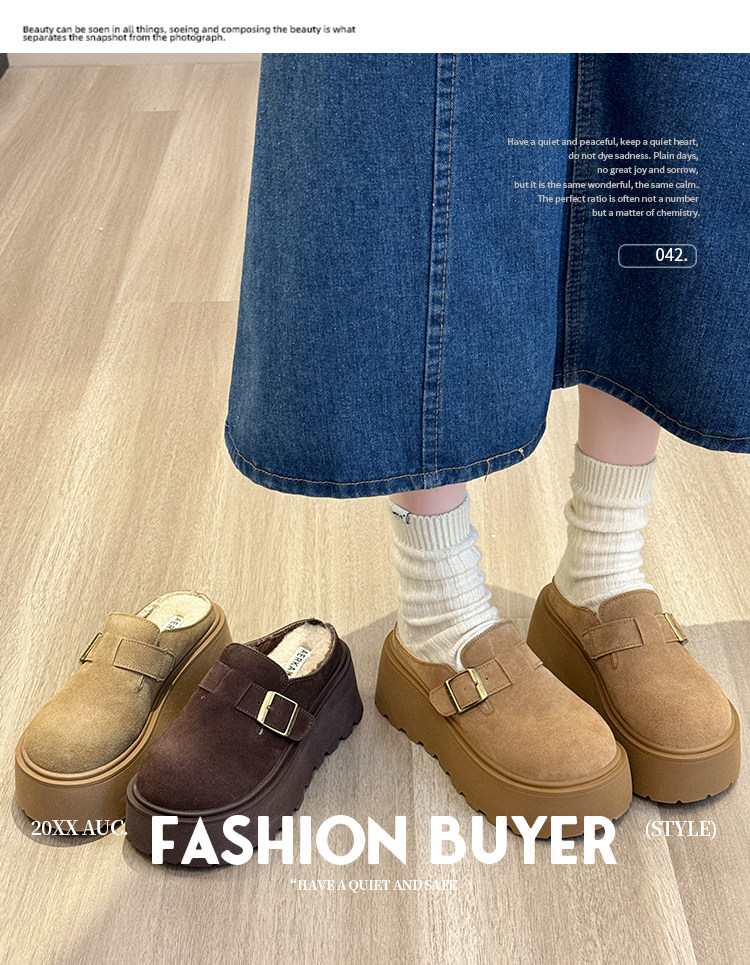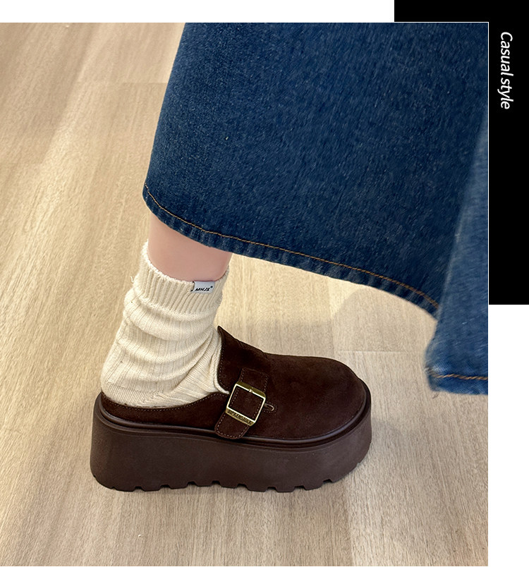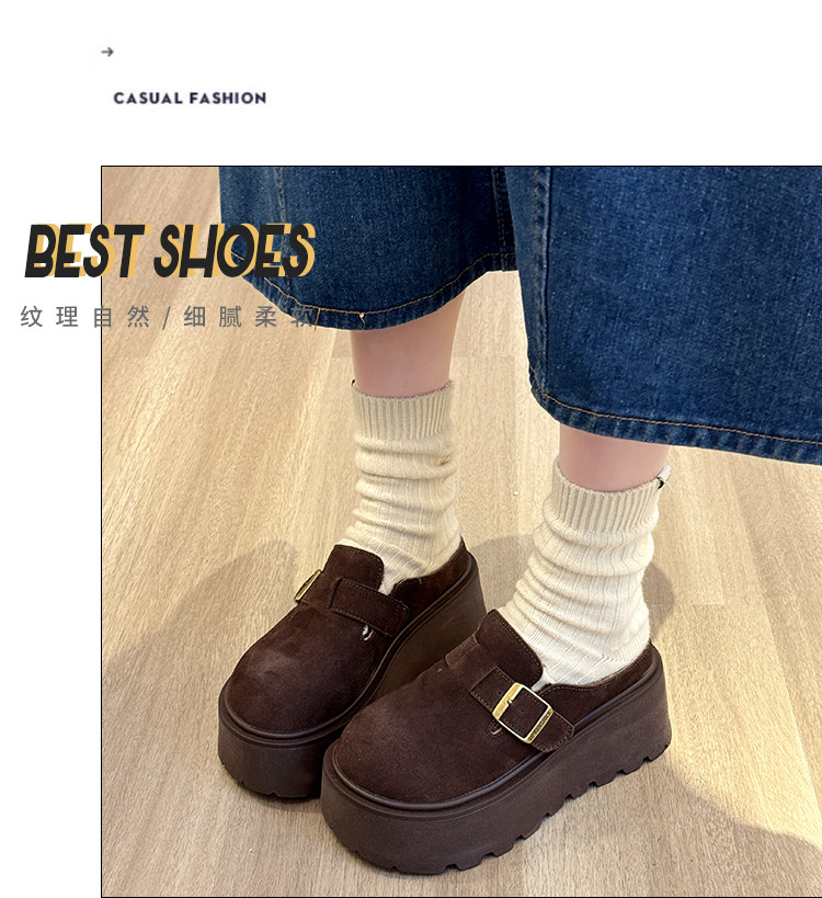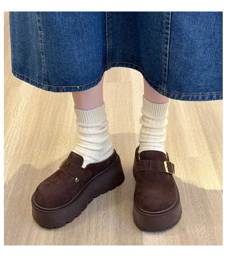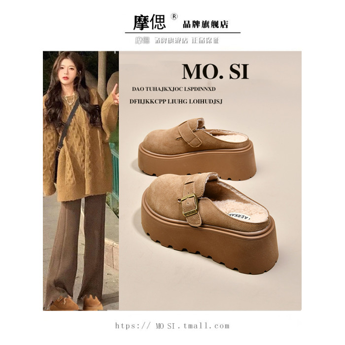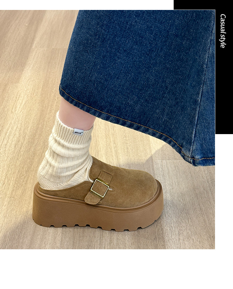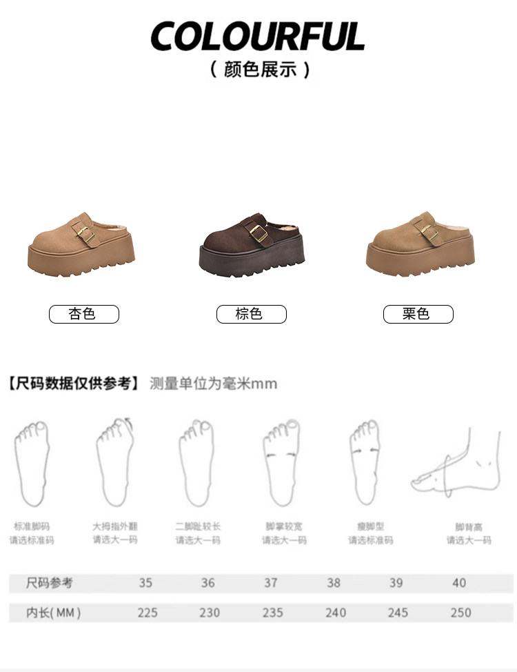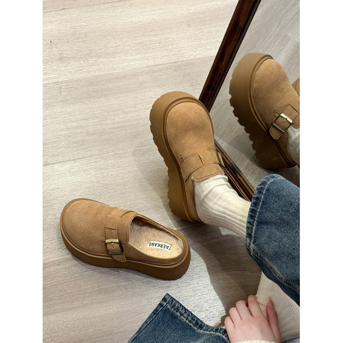 真皮厚底增高勃肯鞋女毛毛棉拖鞋外穿2025新款雪地靴加絨包頭半拖