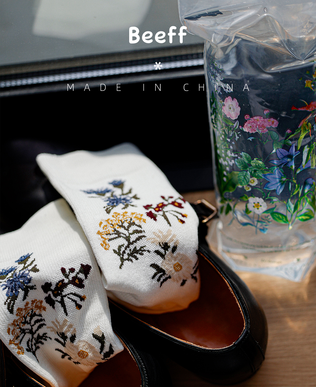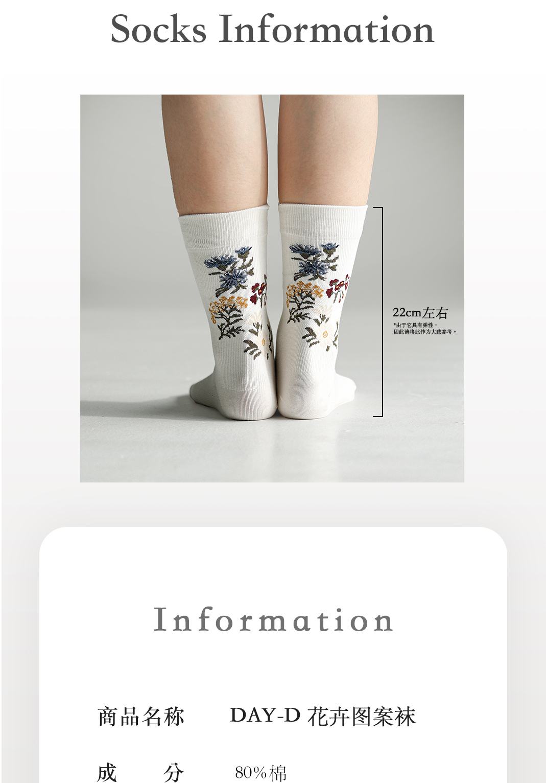 beeff “植物系-花朵” 花卉圖案中筒襪 壓力襪瘦腿 無骨 day設計
