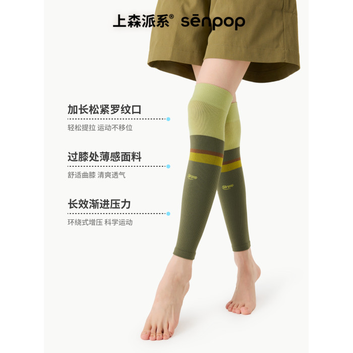 上森白色壓力襪套女春秋款長筒套過膝護膝腿套小腿襪子跑步運動襪