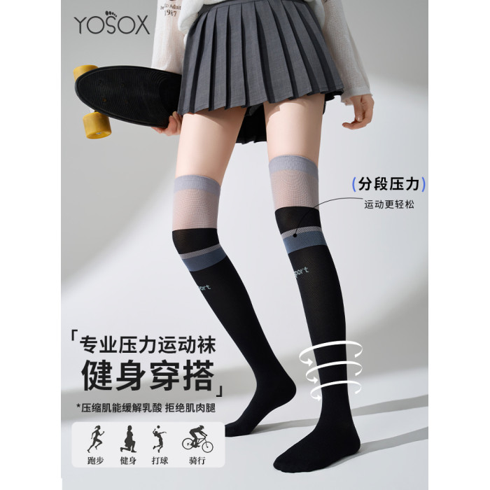 秋冬過膝長筒襪運動壓力襪羽毛球襪騎行襪徒步登山襪馬拉松跑步襪