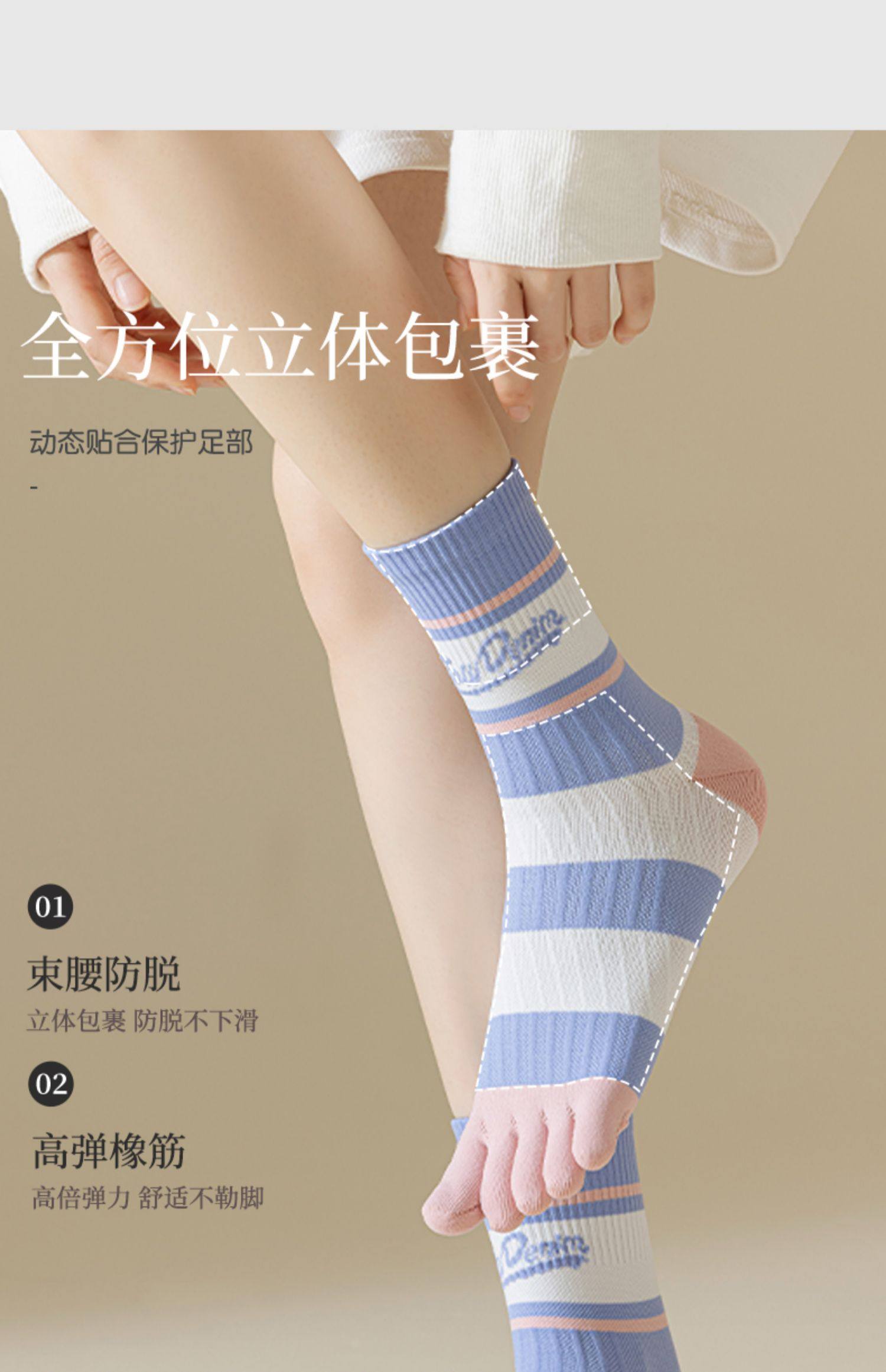 五指襪子女專業運動壓力襪健身跑步中筒襪普拉提瑜珈防滑分趾襪