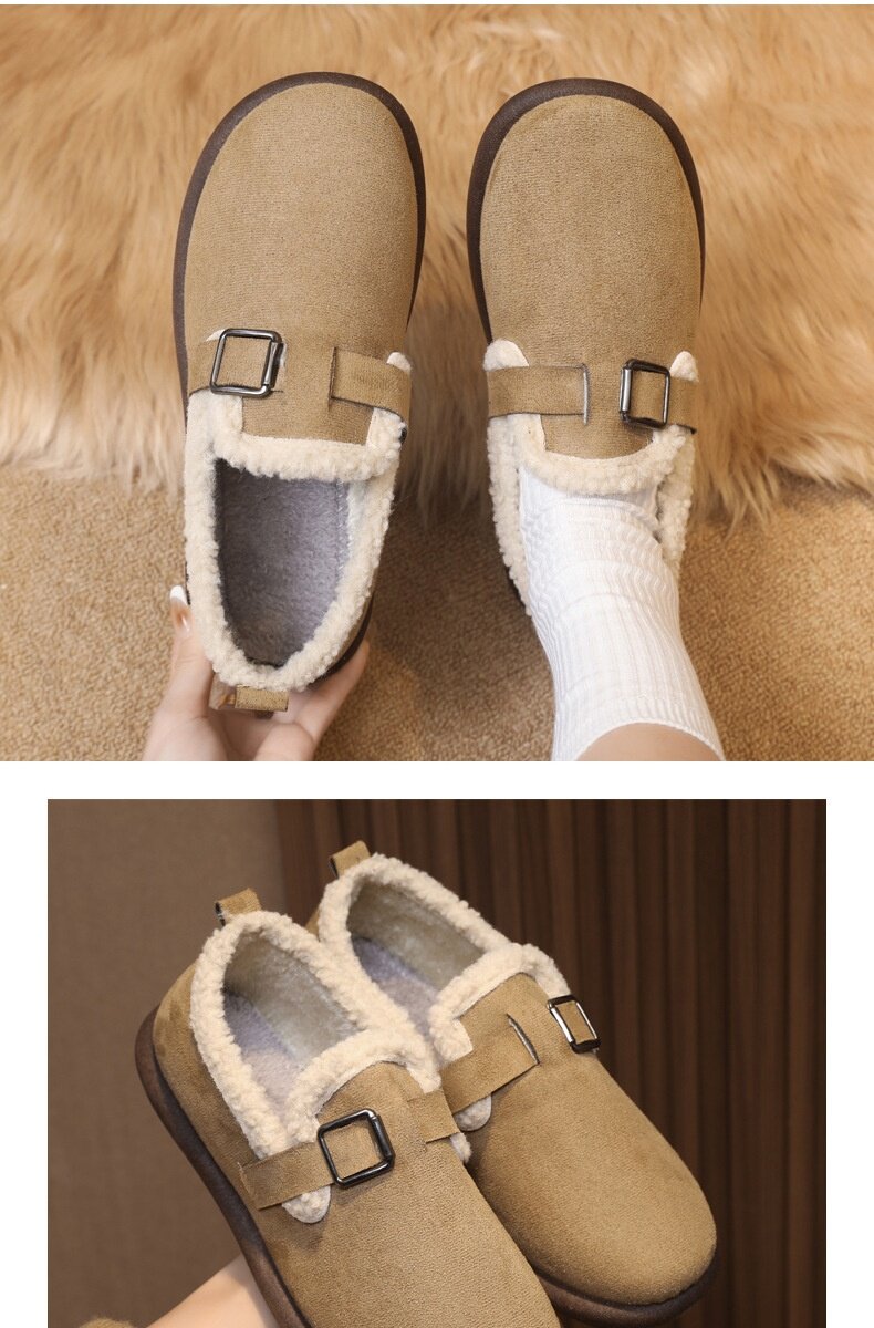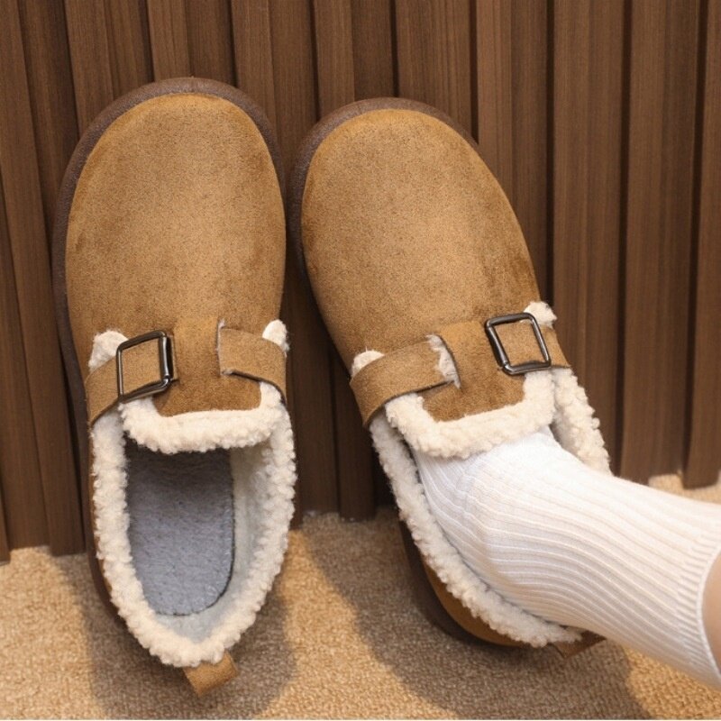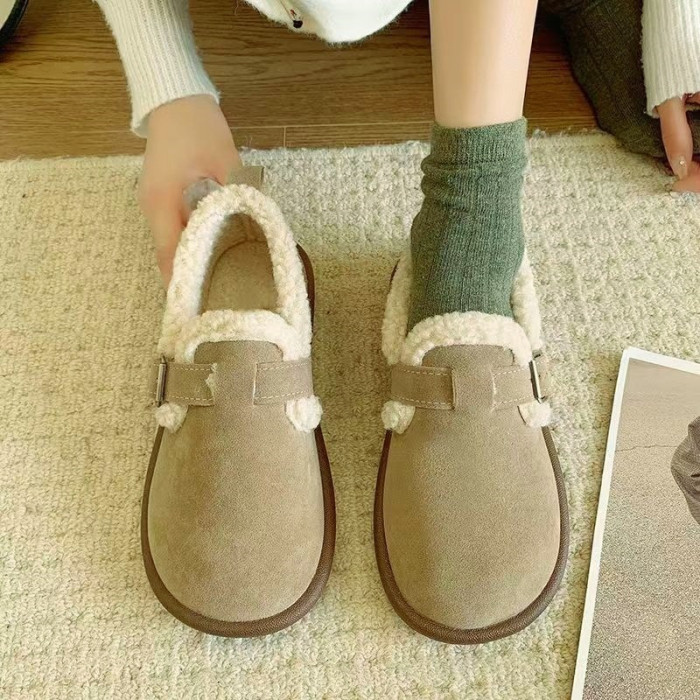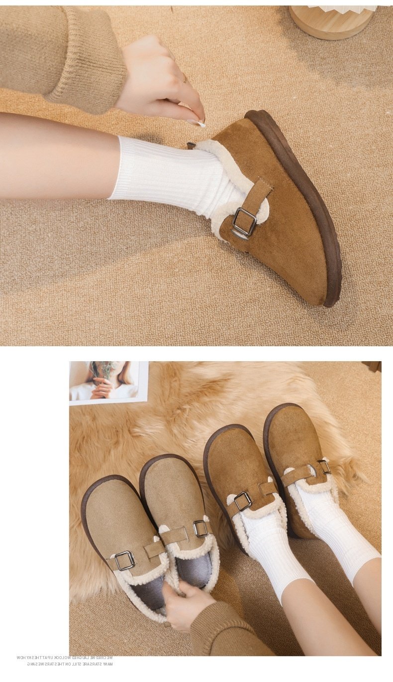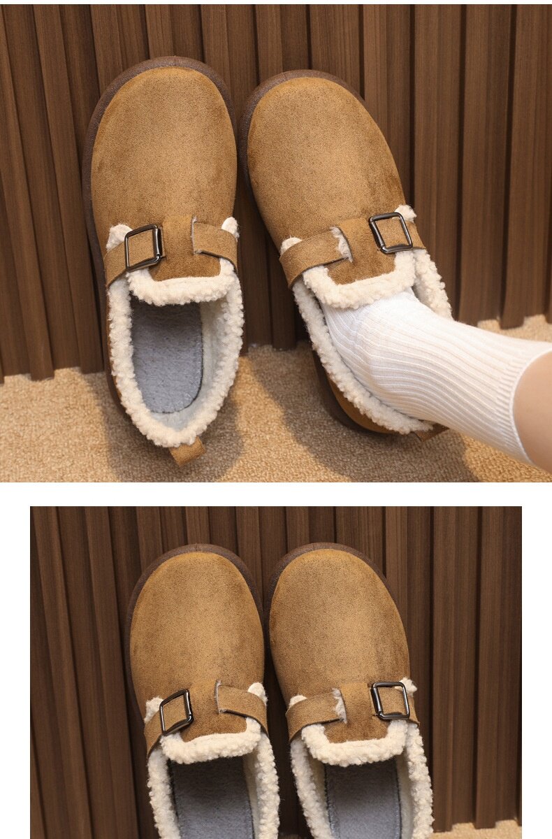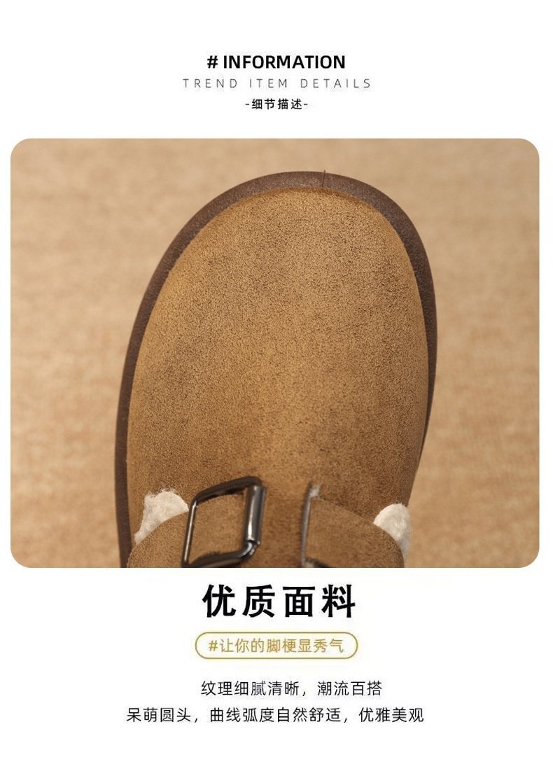 2024秋冬新款時尚毛毛鞋女軟底一腳蹬加絨保暖棉鞋大碼勃肯鞋