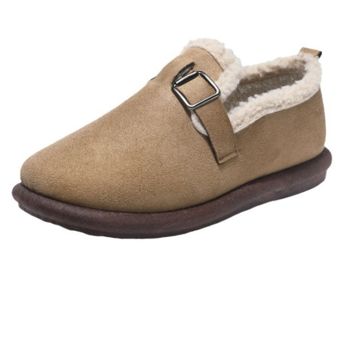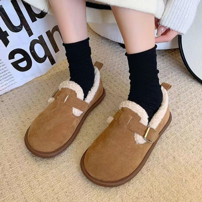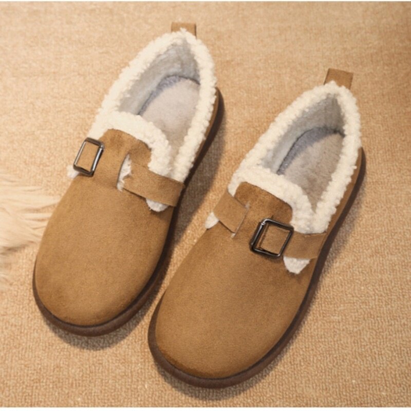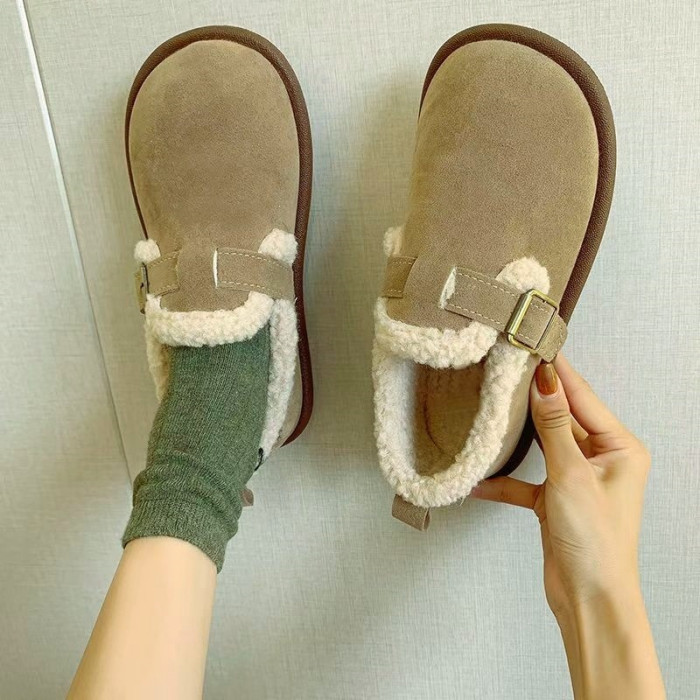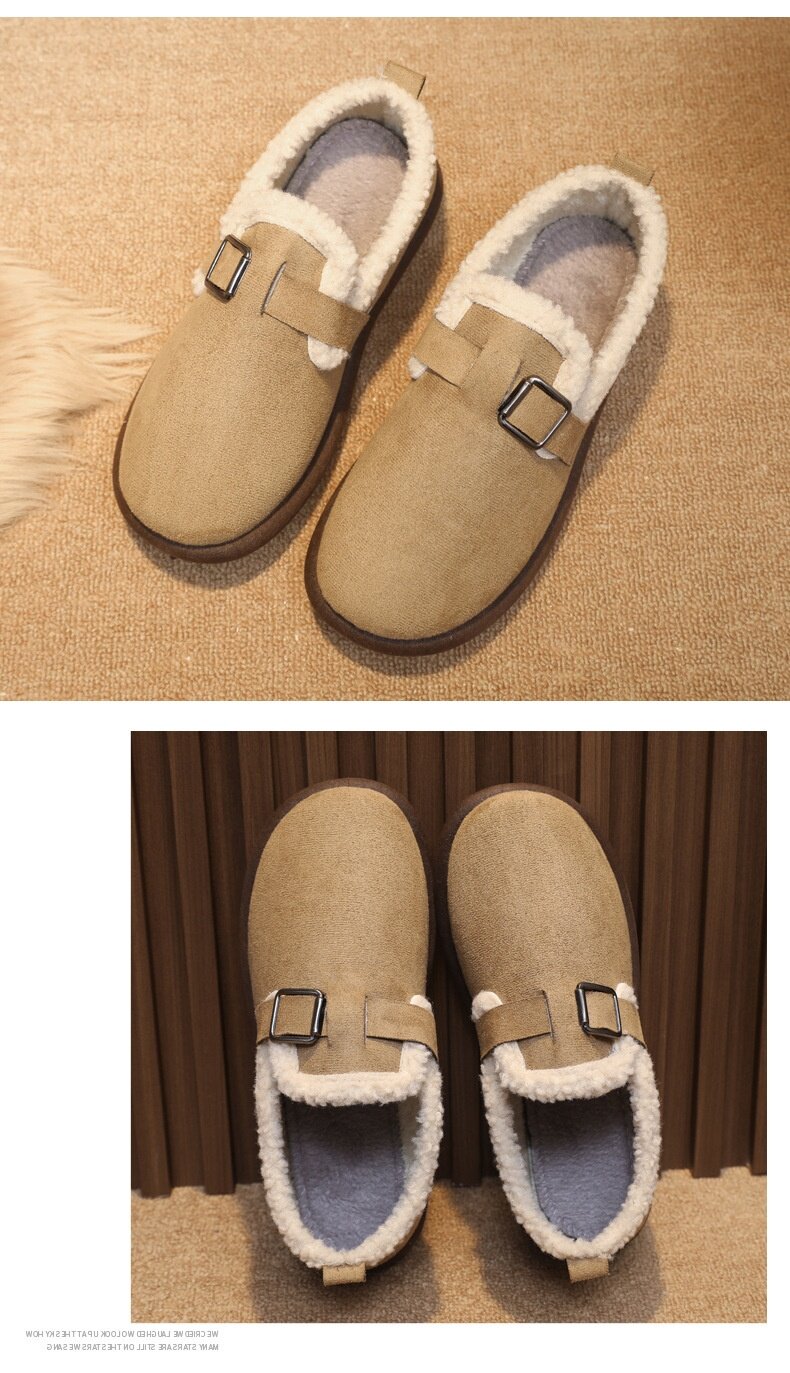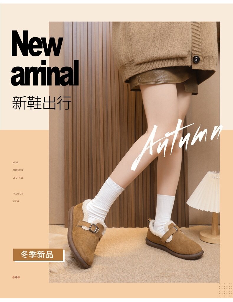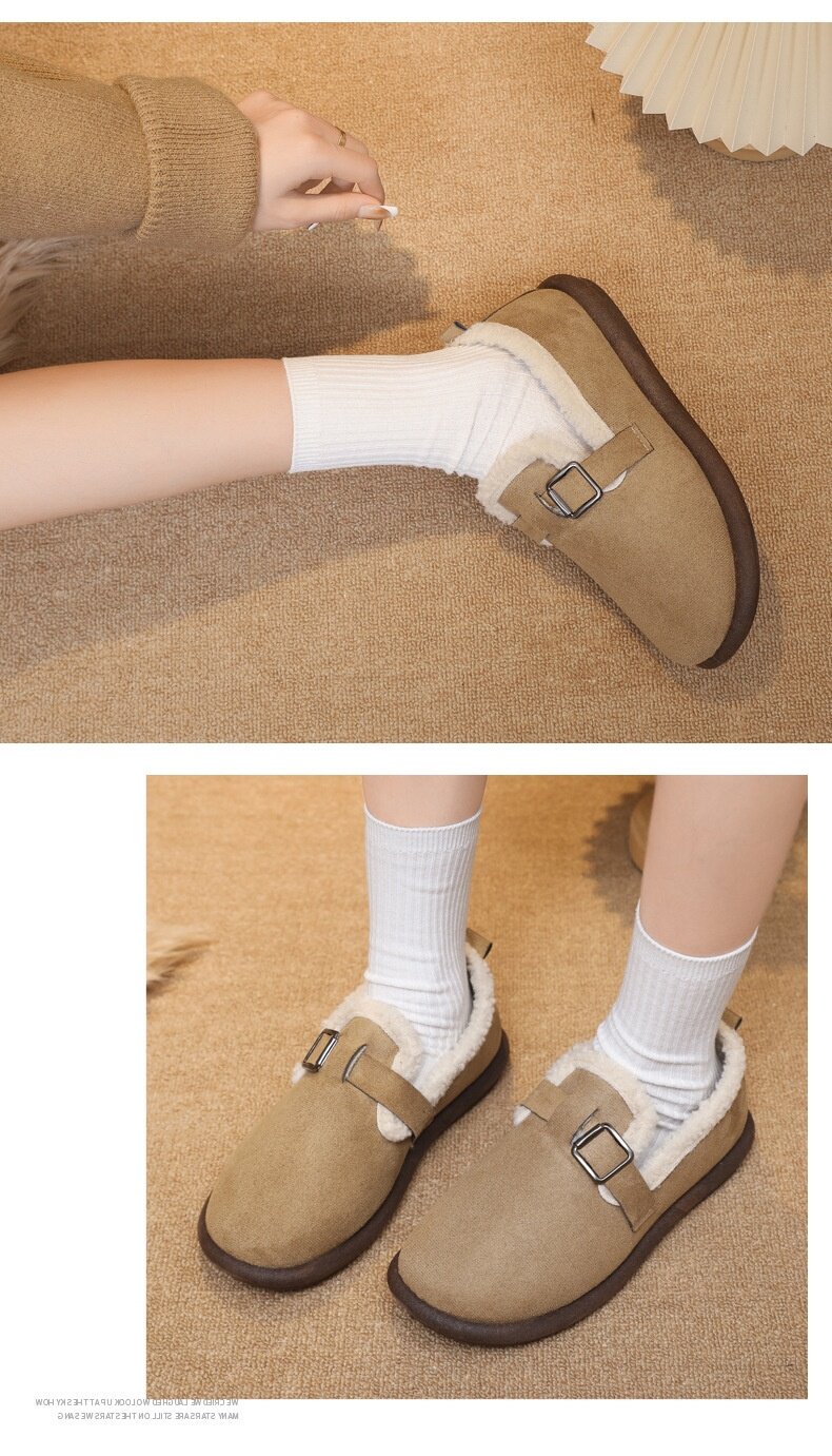 2024秋冬新款時尚毛毛鞋女軟底一腳蹬加絨保暖棉鞋大碼勃肯鞋