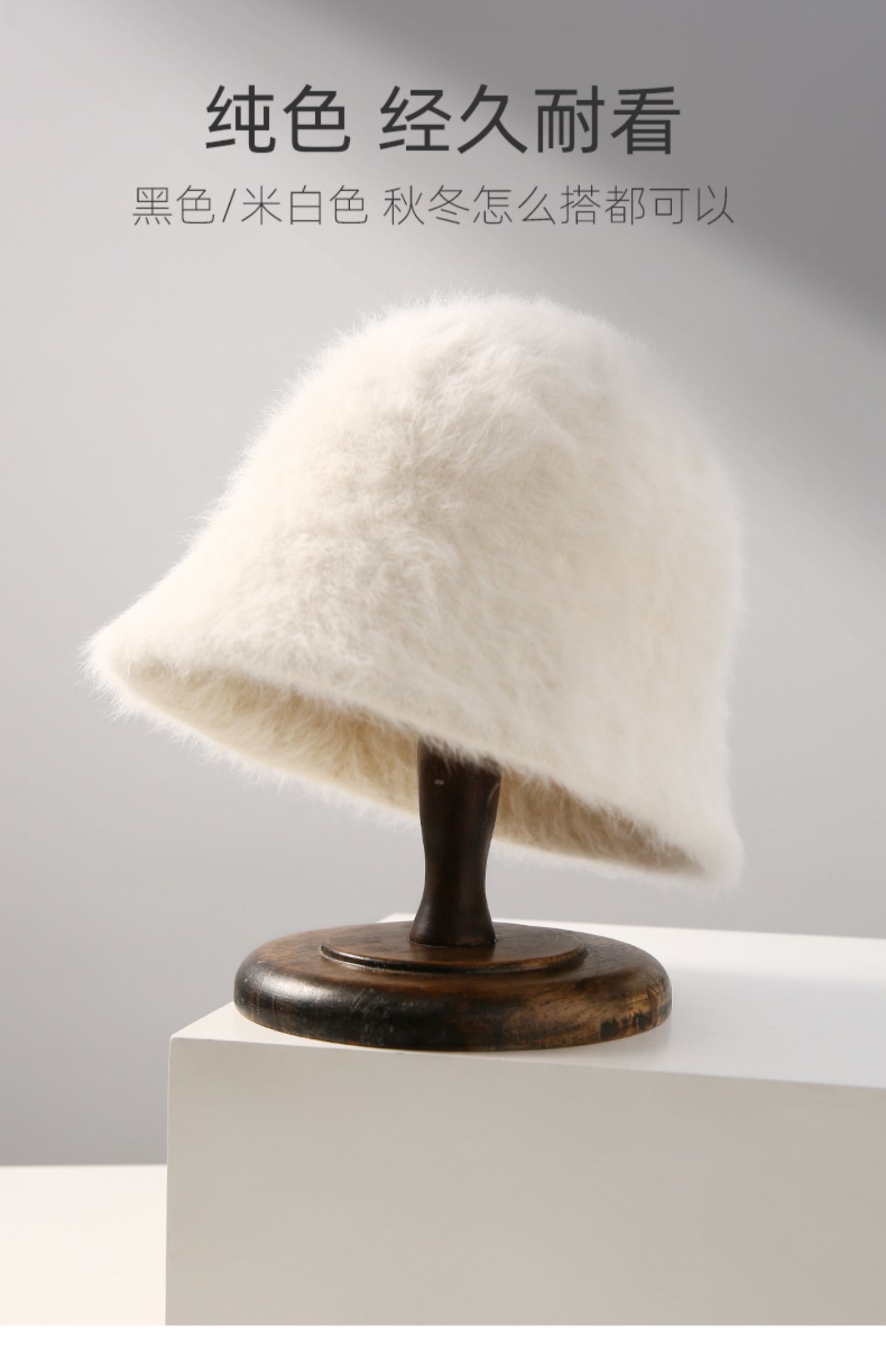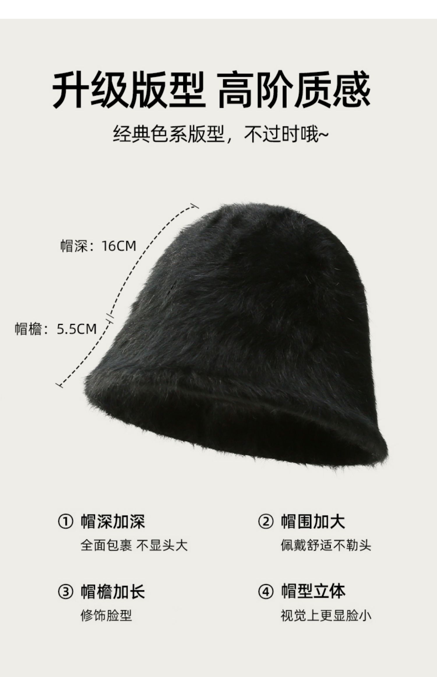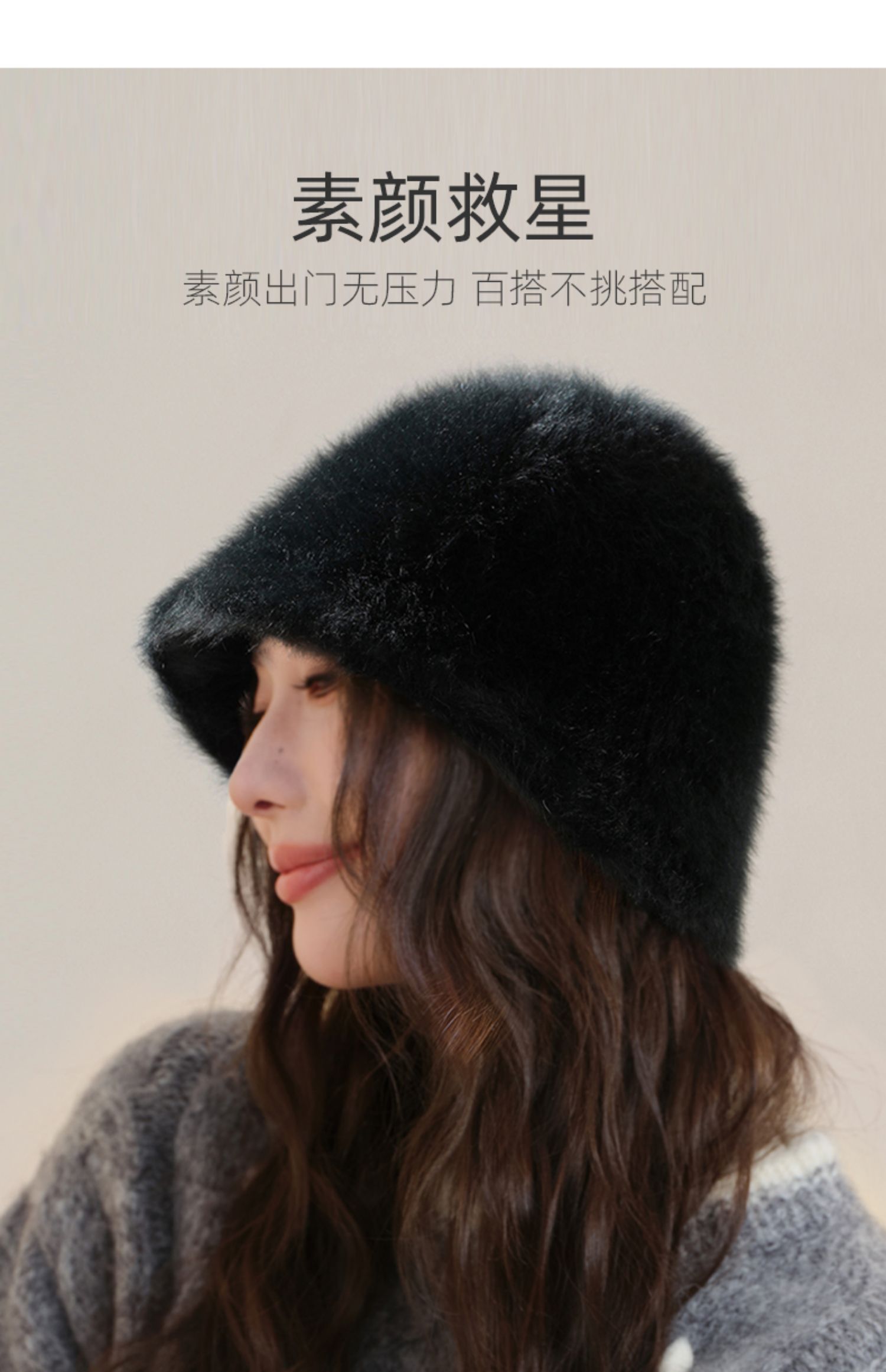 CACUSS毛絨帽子女秋冬季漁夫帽加絨兔毛帽加厚保暖時尚百搭顯臉小
