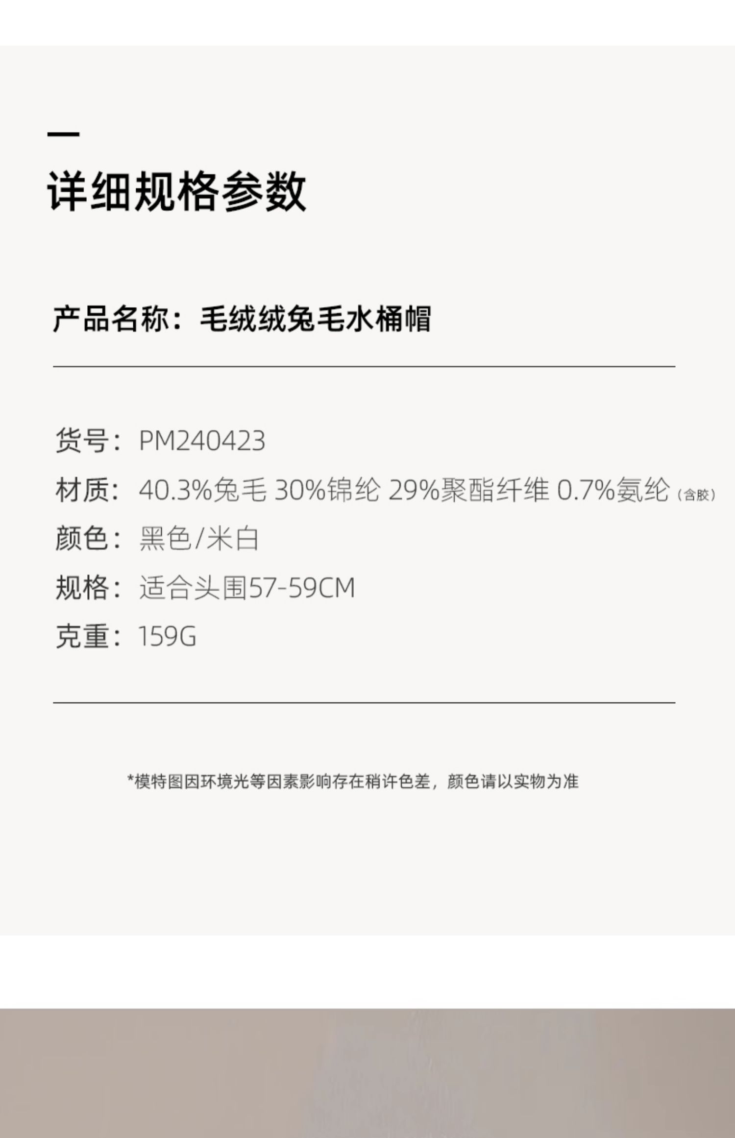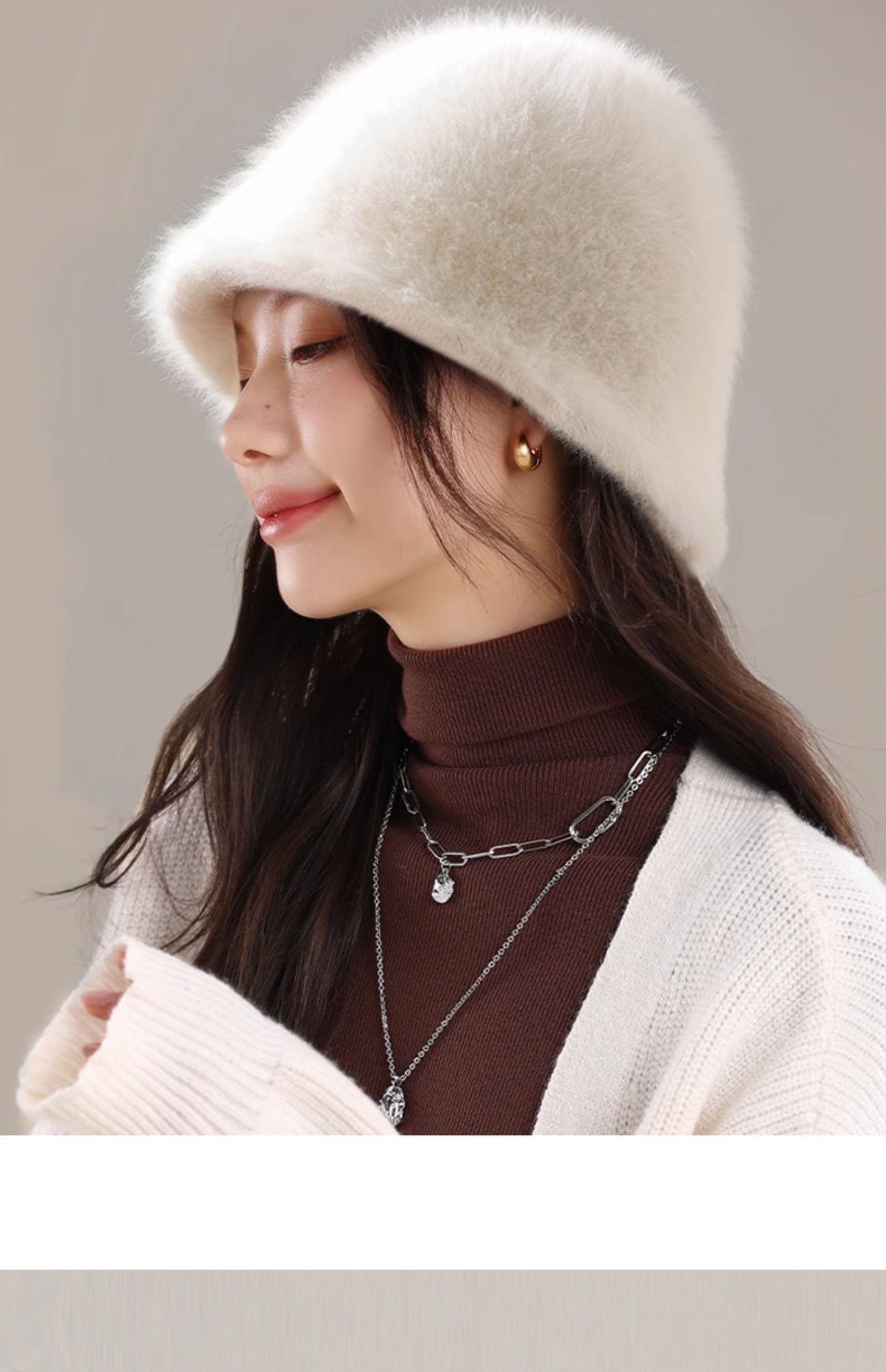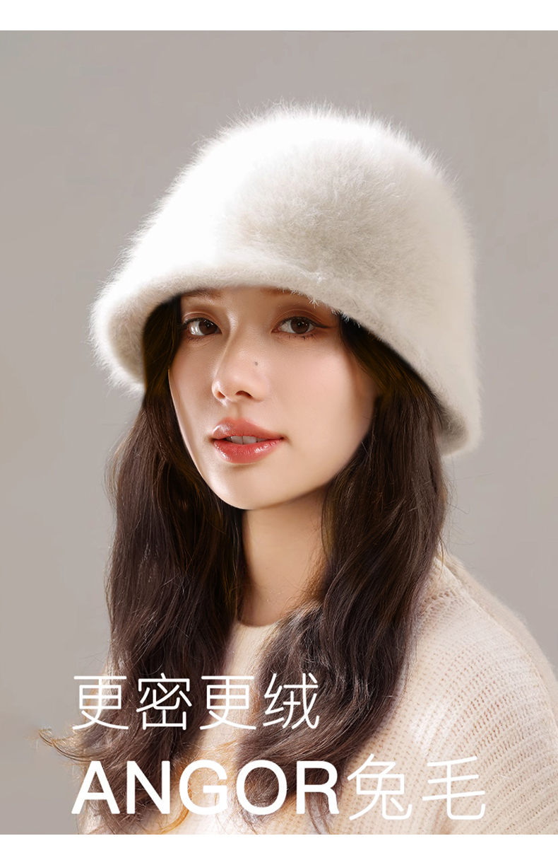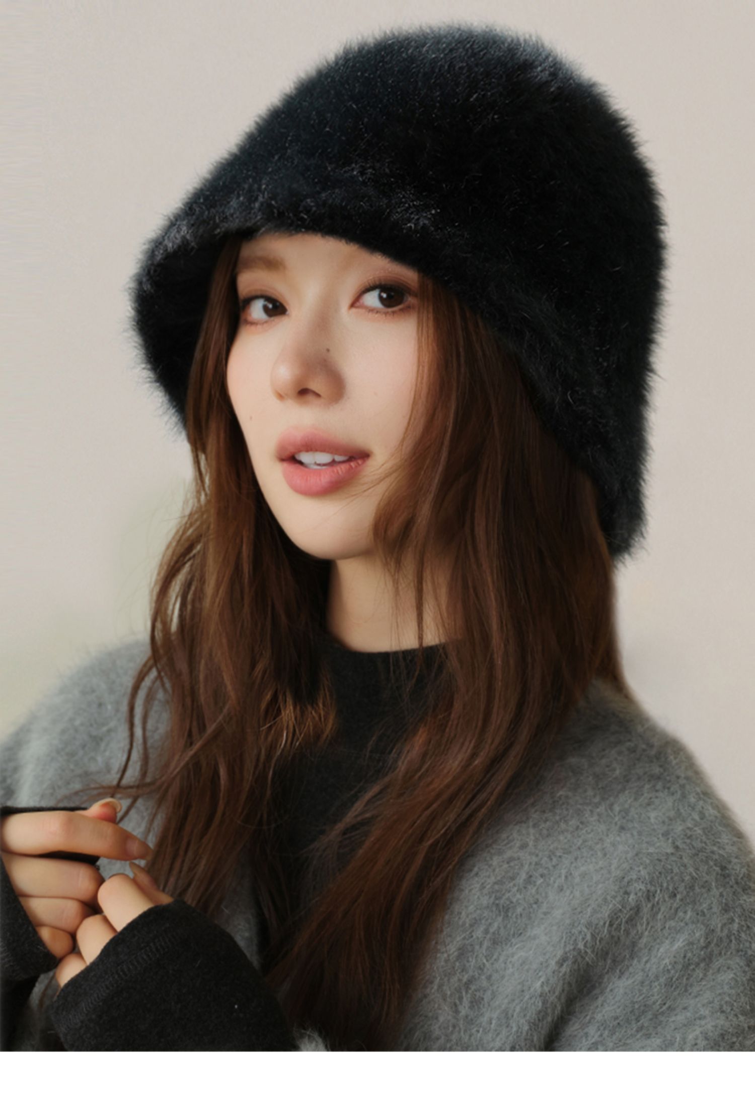 CACUSS毛絨帽子女秋冬季漁夫帽加絨兔毛帽加厚保暖時尚百搭顯臉小